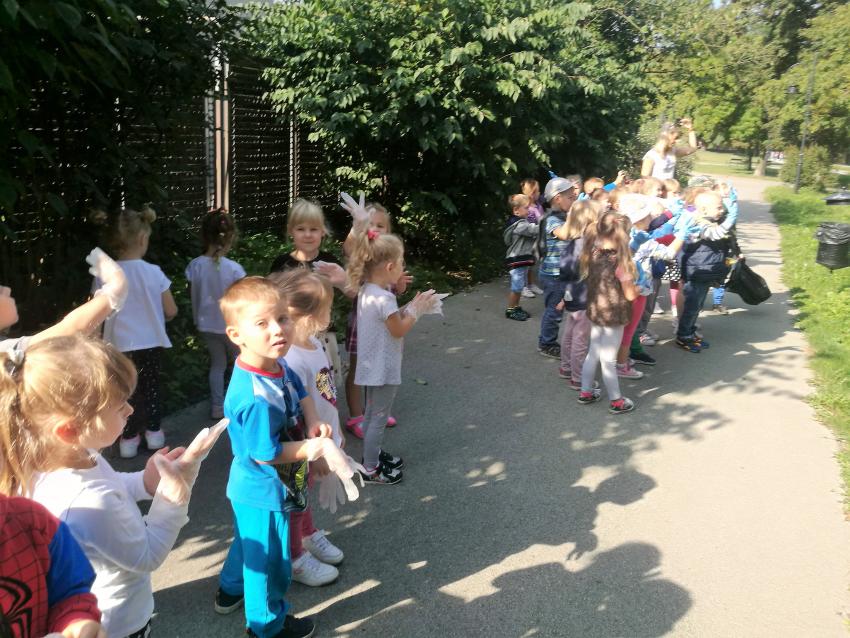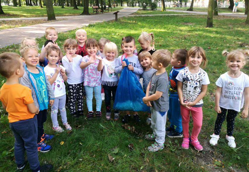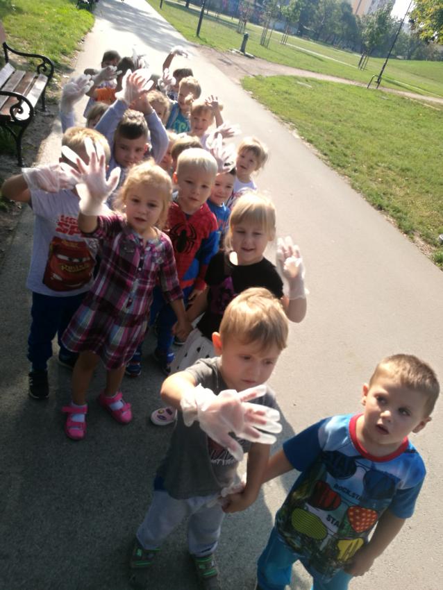 18 września 2018r. przedszkolaki brały udział w akcji "Sprzątanie Świata 2018". Zaopatrzeni w jednorazowe rękawiczki i worki dzielnie i z dużym zaangażowaniem zbieraliśmy śmieci w parku Leśniczówka. Gdy park lśnił czystością wybraliśmy się na plac zabaw.
