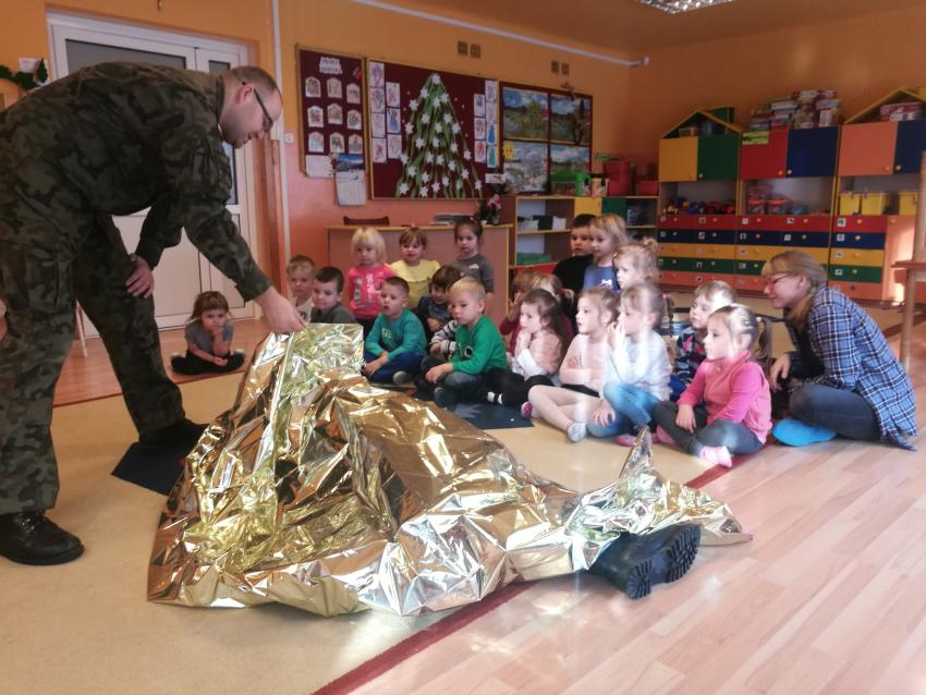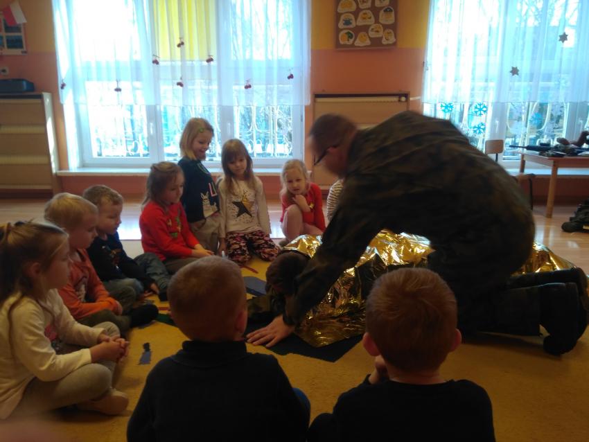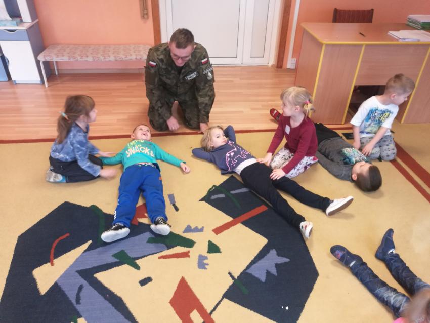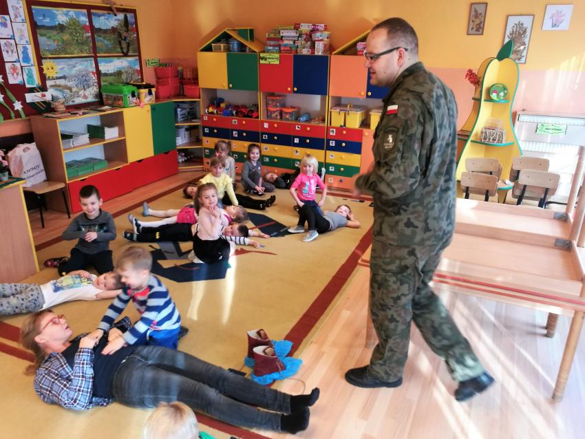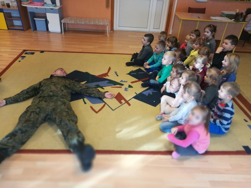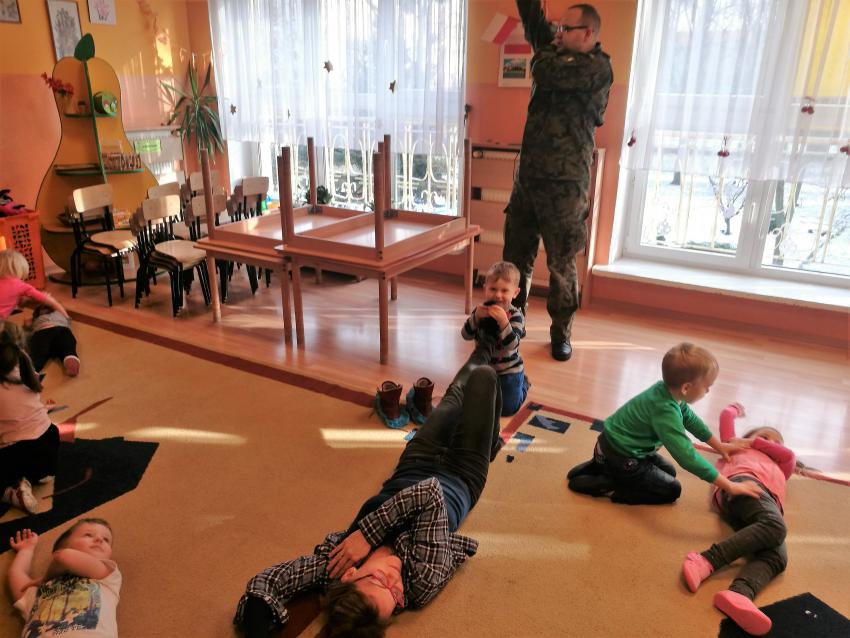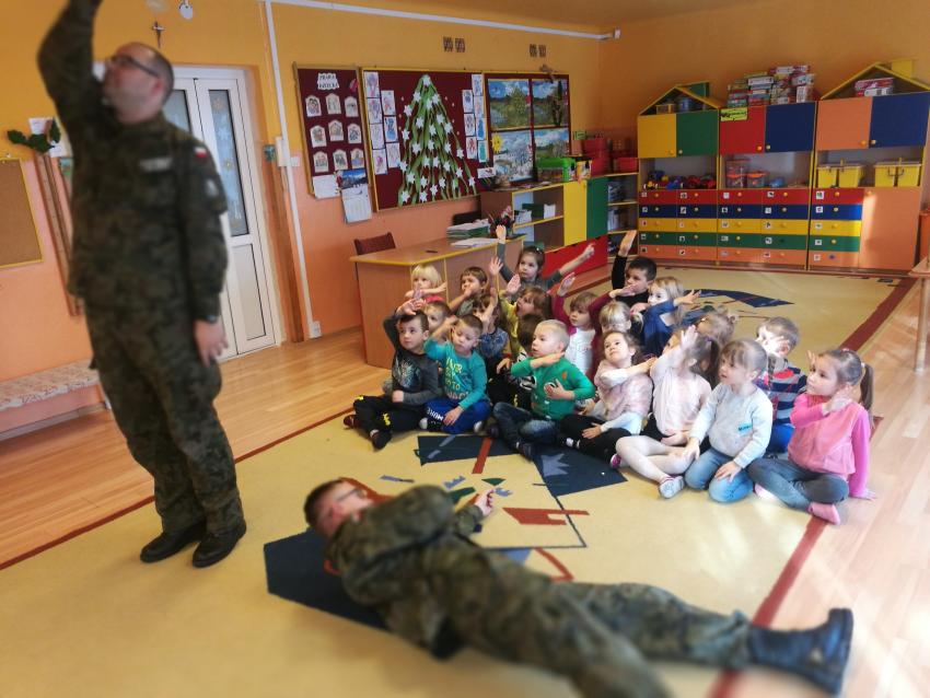 22 i 23 stycznia 2019r. przedszkolaki uczestniczyły w warsztatach na temat udzielania pomocy przedmedycznej. Zajęcia prowadziła kadra Oddziału Terenowego Combat Alert 0704 Radom. Dzieci utrwaliły sobie numery alarmowe, sprawdzały stan poszkodowanego, a także układały siebie nawzajem w pozycji bocznej ustalonej. Warto utrwalać wiedzę na temat pierwszej pomocy, zarówno u dzieci, jak i u dorosłych. Dziękujemy Panom za wizytę i porcję pożytecznych informacji!