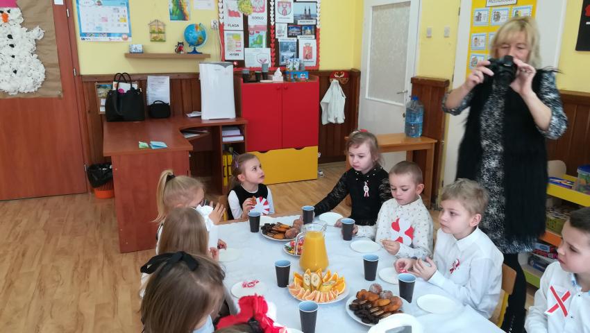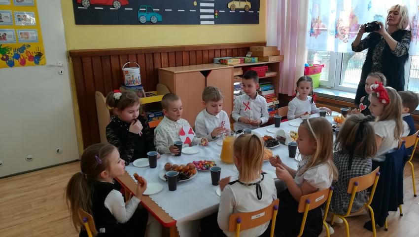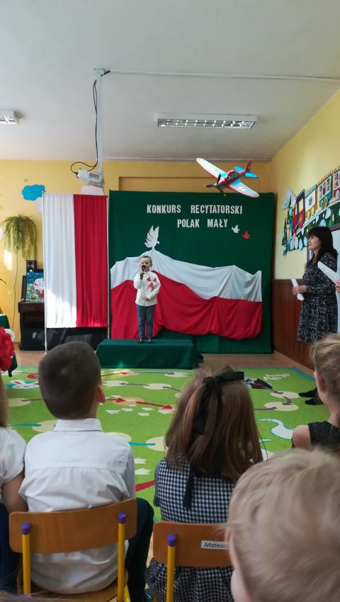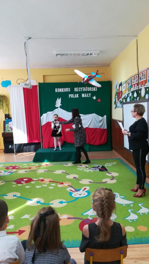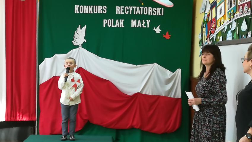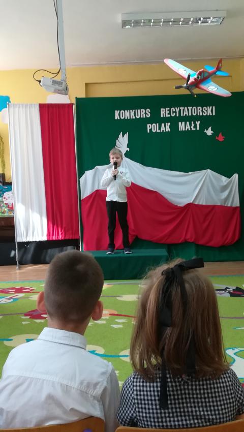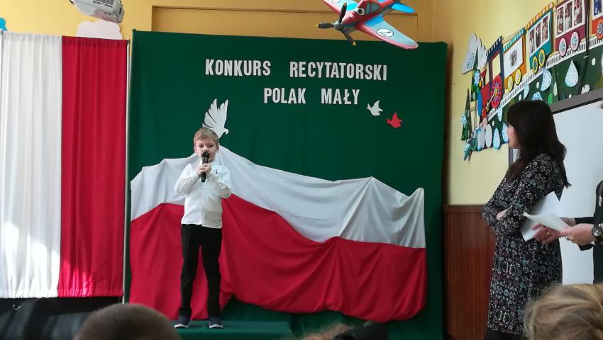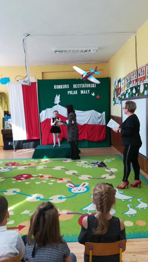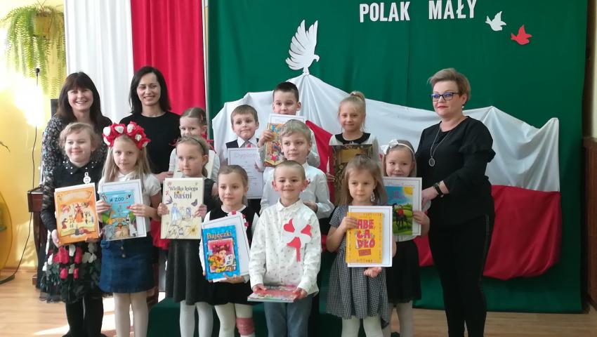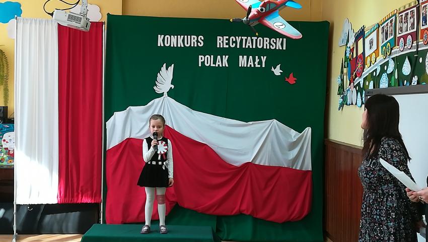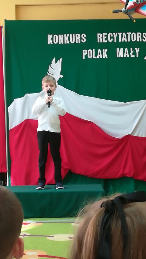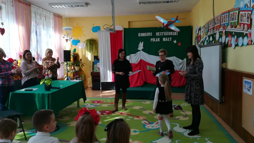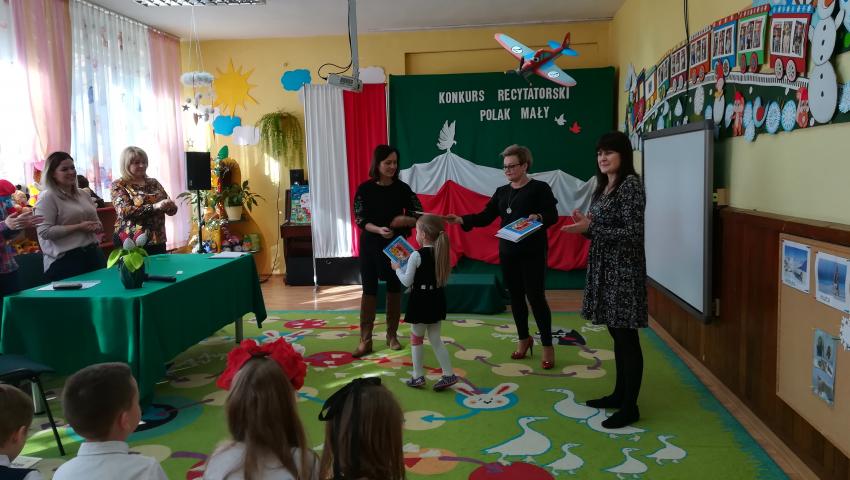 W dniu 26 lutego 2019 roku reprezentanci grup VI-VIII wzięli udział w międzyprzedszkolnym konkursie recytatorskim zorganizowanym przez Przedszkole Publiczne nr 3 w Radomiu. Był to konkurs Patriotyczny pod hasłem „Polak Mały”. Bartosz M. z grupy VI recytował wiersz „Co to jest Polska” autorstwa K. Grochowskiej, Hania Ch. z grupy VII zaprezentowała wiersz pod tytułem „Moja mała Ojczyzna” J. Białobrzeskiej. Najstarszy z naszych przedstawicieli, Jaś O. z grupy VIII przedstawił wiersz Cz. Janczarskiego „Co to jest Polska”. Podczas obrad komisji dzieci zostały zaproszone na poczęstunek. Rozstrzygnięcie konkursu nastąpiło w dwóch kategoriach wiekowych: 5 i 6-latki. Bartek M. zdobył 3 miejsce w grupie dzieci 5-letnich. Każdy uczestnik rywalizacji otrzymał dyplom oraz nagrodę - książkę.