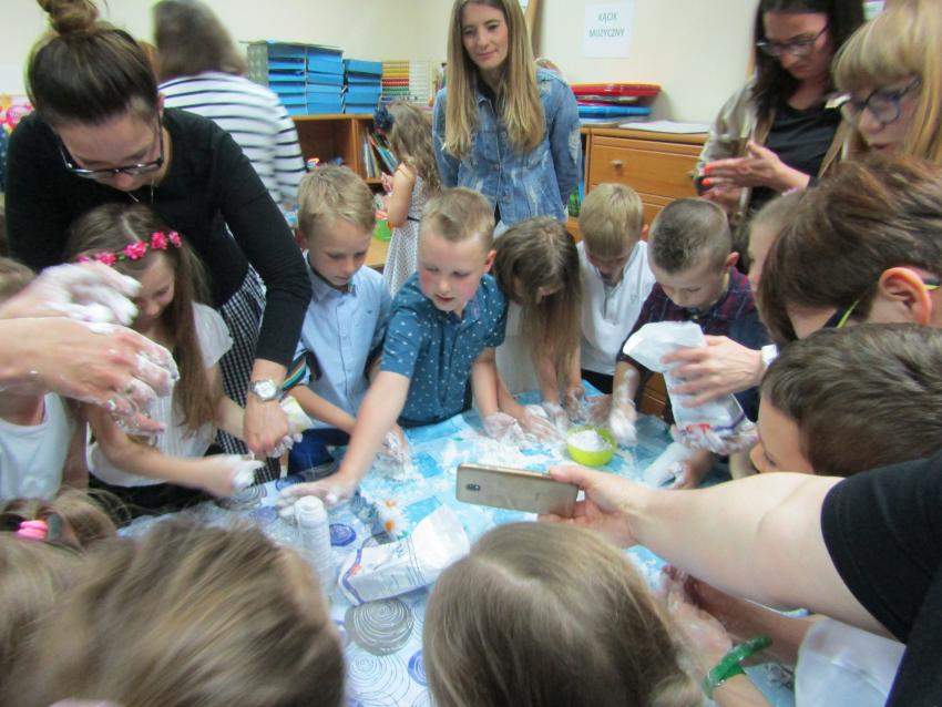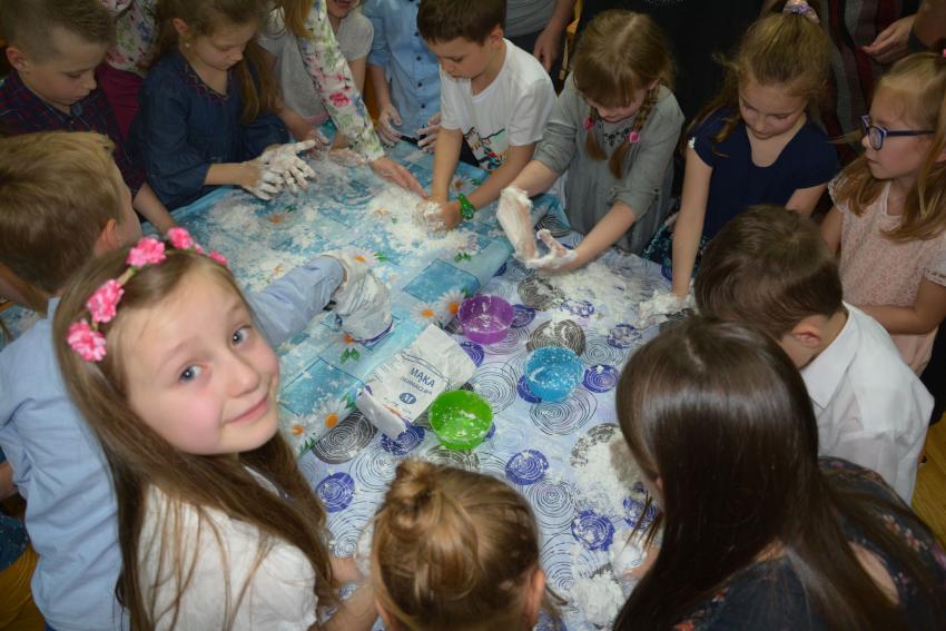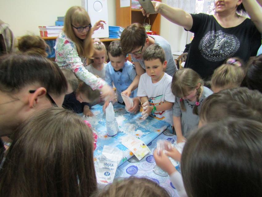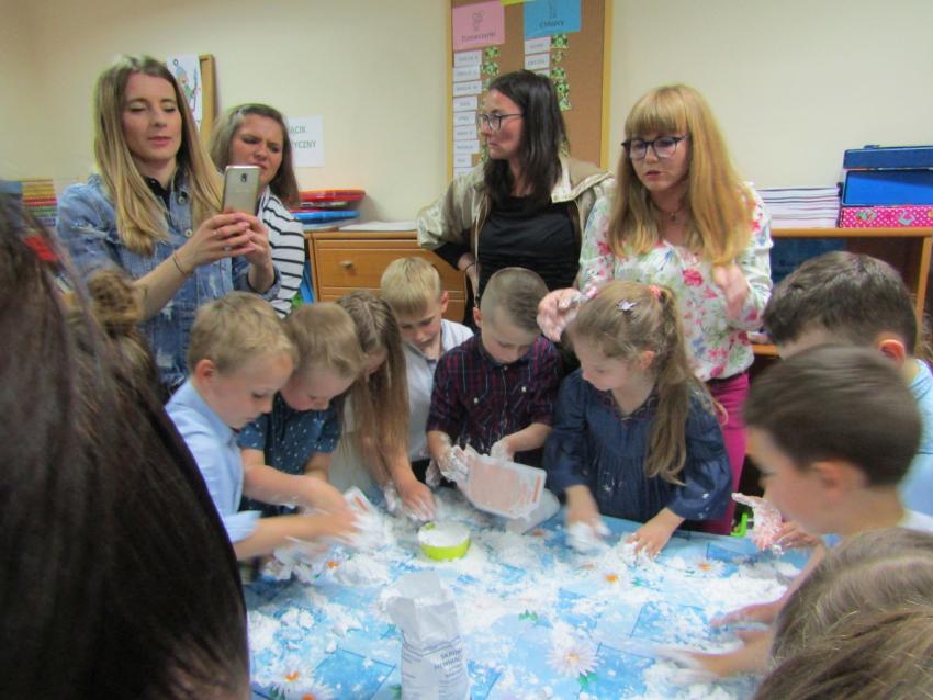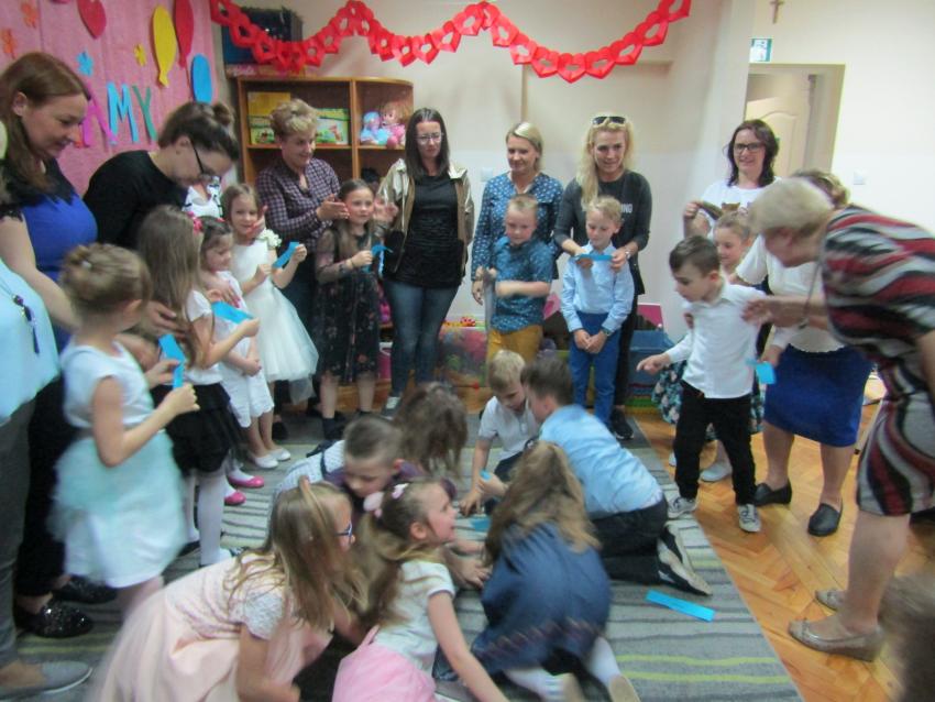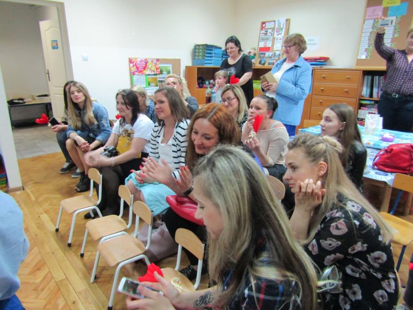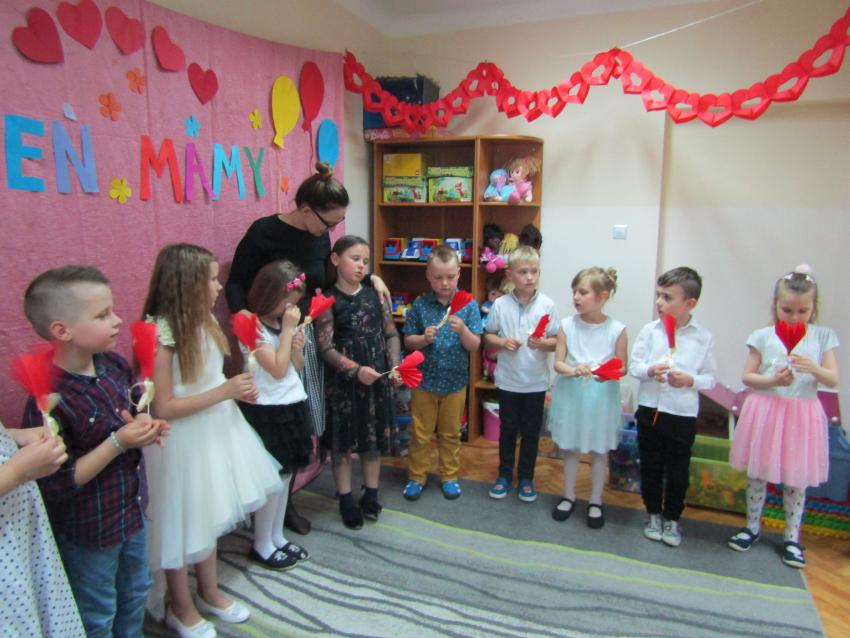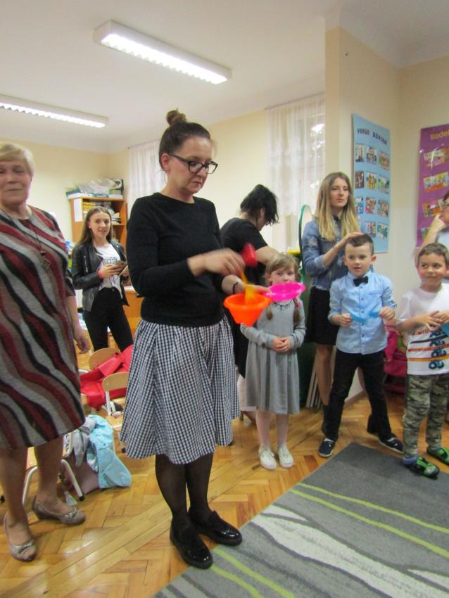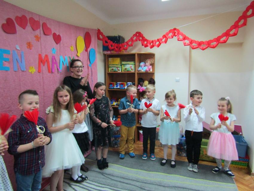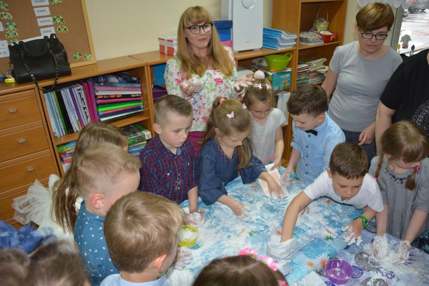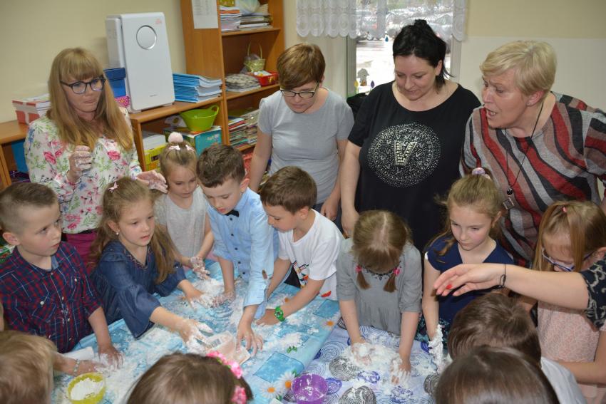 W dniu 23 maja 2019 roku gościliśmy w naszej grupie najcudowniejsze, najpiękniejsze mamy świata. Po krótkim artystycznym repertuarze bawiliśmy się przy muzyce, wykonując wspólnie różnorodne zadania i eksperymenty z mąką. Było dużo śmiechu, świetnej rozrywki i wspaniałej zabawy. Dzieci złożyły swoim mamom przepiękne zyczenia i wręczyły samodzielnie wykonane upominki.