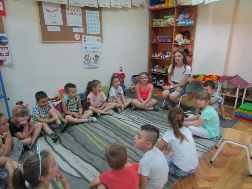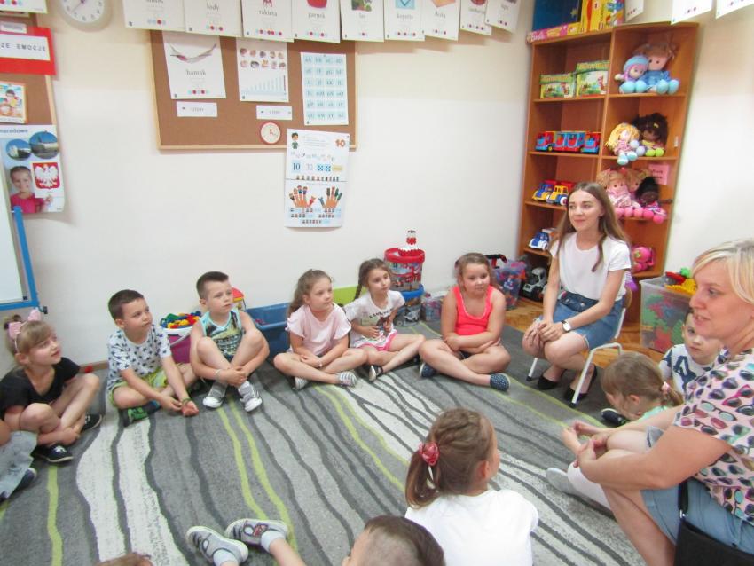 Wspaniale było gościć absolwentkę naszego przedszkola. Karolina w tym roku kończy naukę w szkole podstawowej i rozpocznię naukę w liceum. Dla nas zgodziła się powspominać dawne dzieje, kiedy była jeszcze przedszkolakiem. Co prawda przyznała, że mało pamięta z tego okresu, ale na szczęście jej mama zechciała nam zdradzić jak sobie wtedy radziła. Dzisiaj jest dobrą uczennicą, zdobywającą wiele nagród za swoje osiągnięcia artystyczne, ale jako przedszkolak była nieśmiała i bardzo grzecza. Nie lubiła spać na leżakach, płakała, kiedy mama odchodziła. W przedszkolu jej wychowawczyniami były: pani Basia W. I pani Bożenka M. Minęło kilka lat, ale Karolina nadal nas odwiedzai i utrzymuje z nami kontakt. Dzieci chętnie słuchały opowieści o tym, co czeka je w szkole. I wspólnie z Karoliną zastanawialiśmy się, czym różni się szkoła od przedszkola i dlaczego w przedszkolu jest super. Czekamy na kolejnych absolwentów. Dziękujemy za odwiedziny Karolinko!