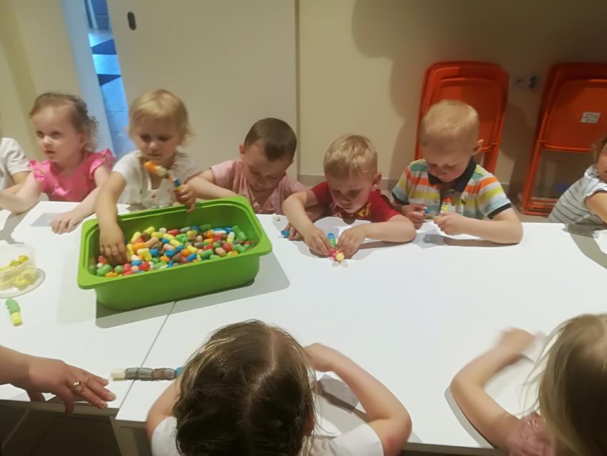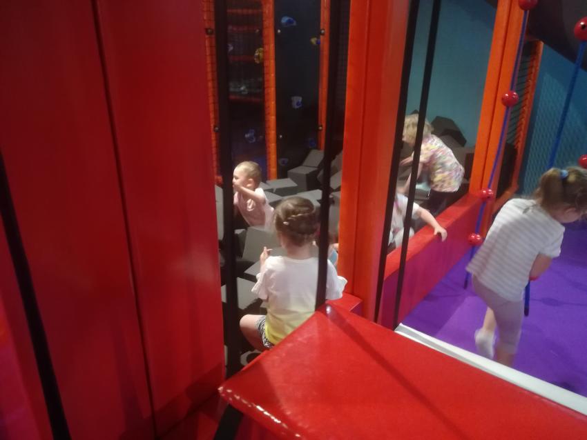 W ramach obchodów Dnia Dziecka „Kotki” i "Biedronki" wybrały do sali zabaw CZTERY SŁONIE. To były dwie godziny cudownej zabawy. Dzieci skakały na trampolinach, wspinały się po linach, pokonywały przeszkody, kąpały się w kulkach, zjeżdżały z rury na miękkie gąbeczki. Na koniec przyszedł czas na warsztaty plastyczne "Kreatywny maluch", które sprawiły dużo radości i pozwalały rozwijać umiejętności manualne i wyobraźnię. Przedszkolaki robiły babki z piasku kinetycznego i wspaniałe ozdoby z kolorowych chrupek oraz ciastoliny. Dziecięcej radości i śmiechu nie było końca, aż żal było wracać.