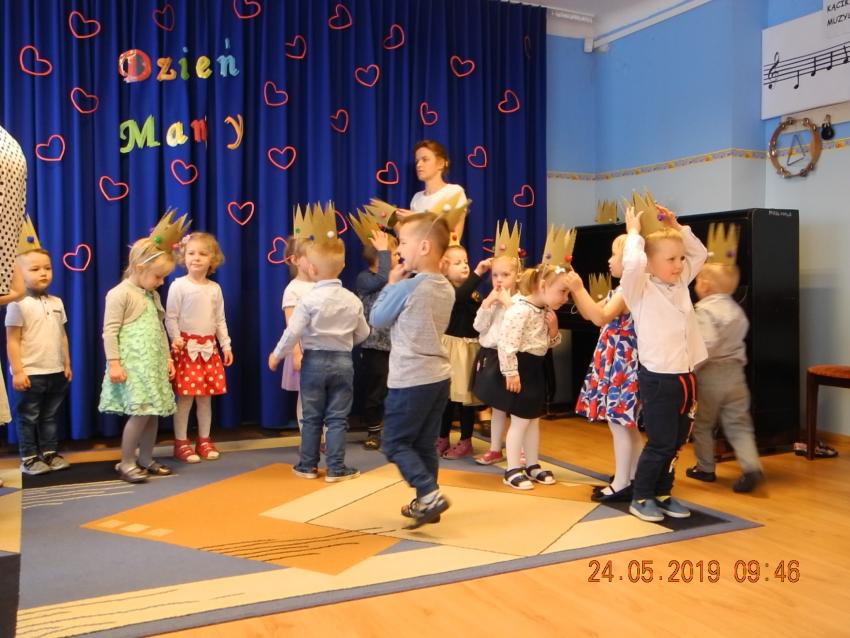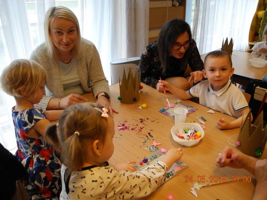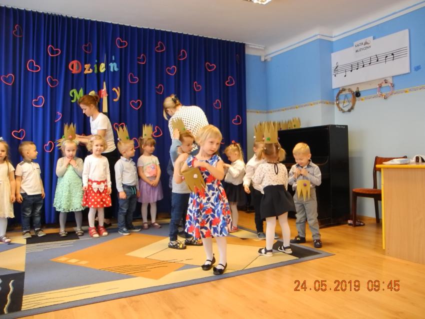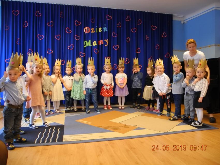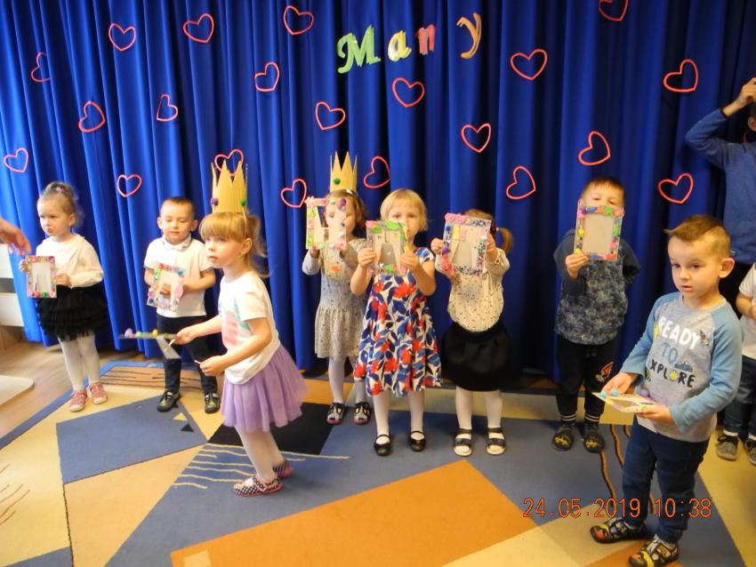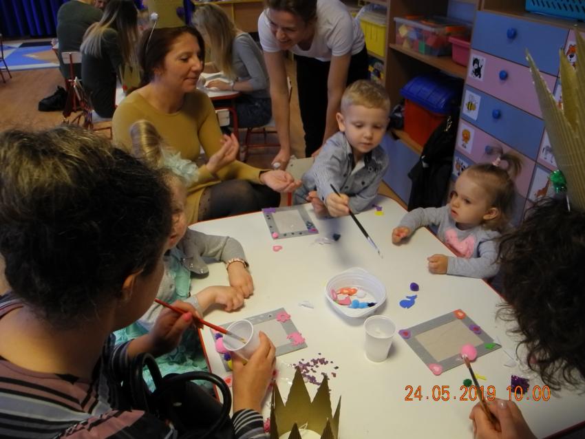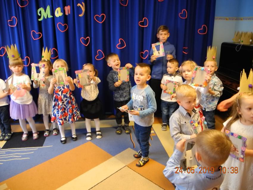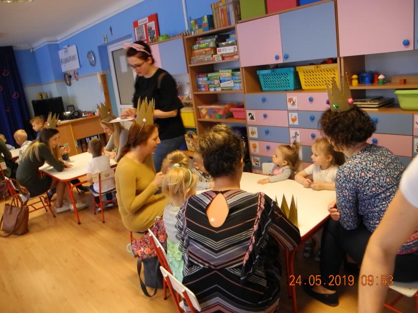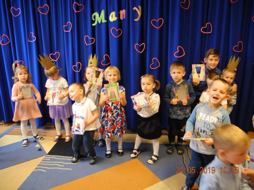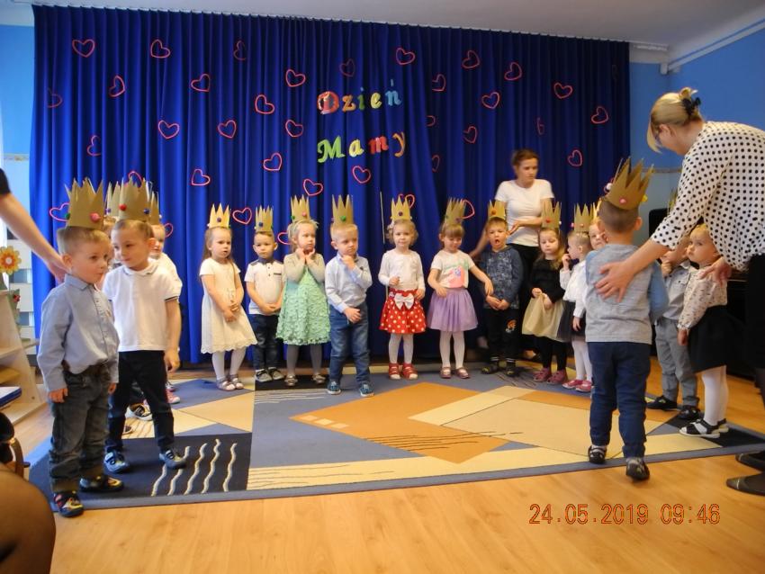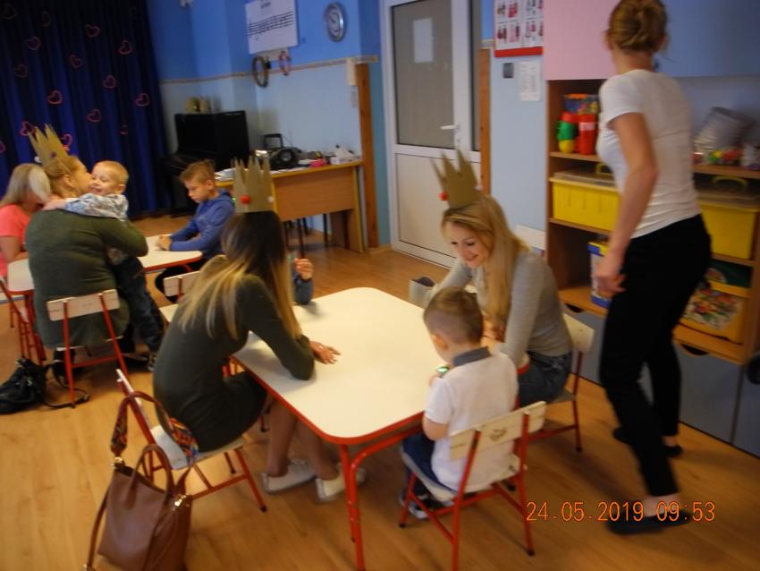 W piątek 24 maja grupa I- „Kotki” świętowała Dzień Mamy. Z tej okazji dzieci zaprosiły swoje mamy na uroczystość, która składała się z dwóch części - artystycznej oraz warsztatów plastycznych. Kotki śpiewały, tańczyły oraz wspólnie bawiły się ze swoimi mamusiami. Na zakończenie występów artystycznych dzieci zaśpiewały piosenkę pt. „Mama królowa” zespołu Arka Noego, podczas której każda mama dostała swoją koronę i została królową. Po części artystycznej dzieci ze swoimi mamami ozdobiły papierowe rameczki na zdjęcia. Spotkanie dostarczyło wszystkim wiele wzruszeń i radości.