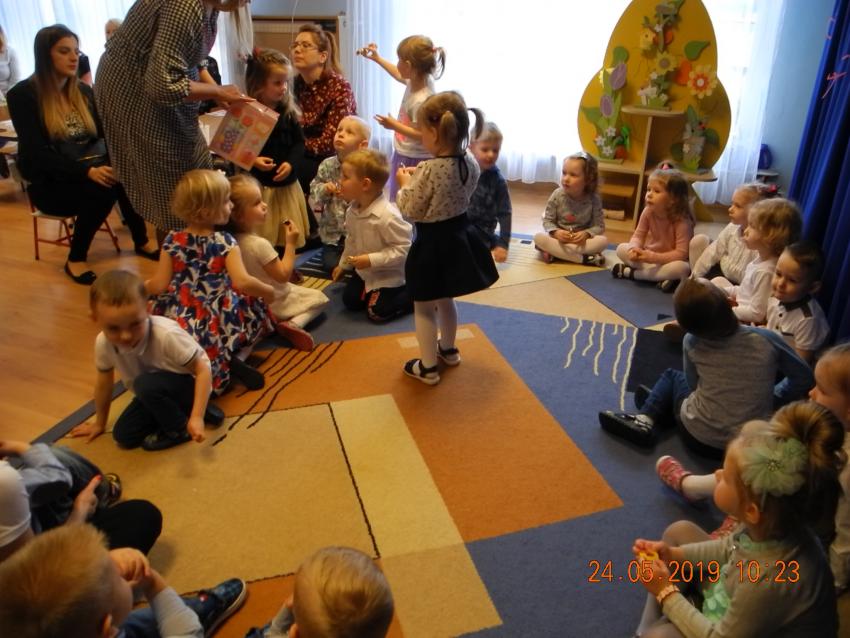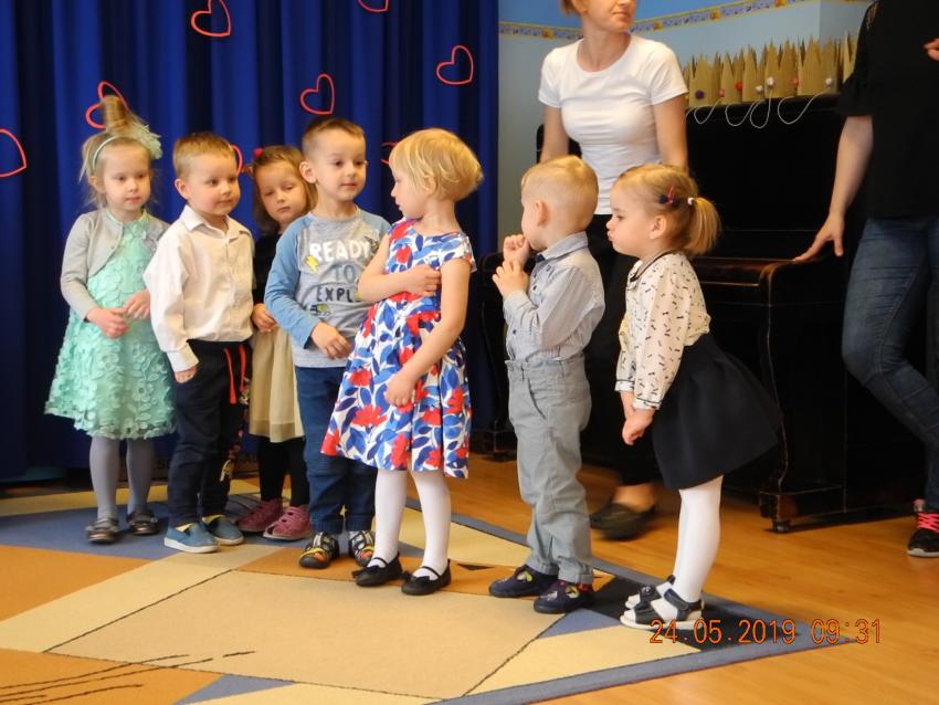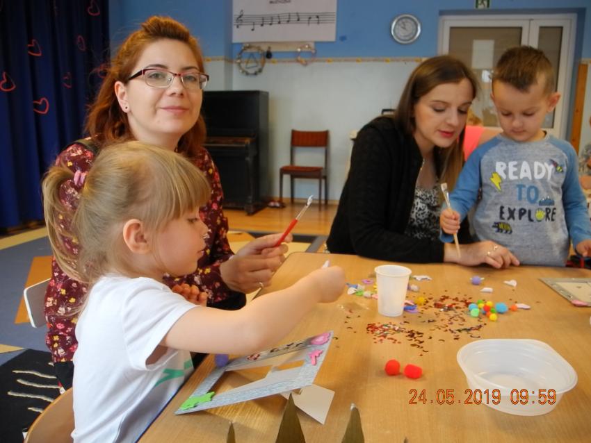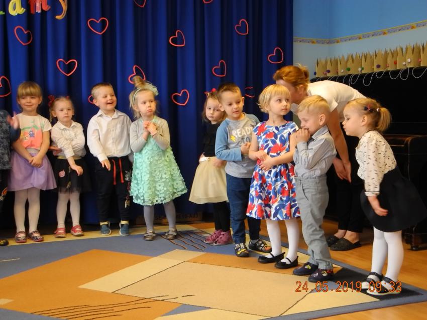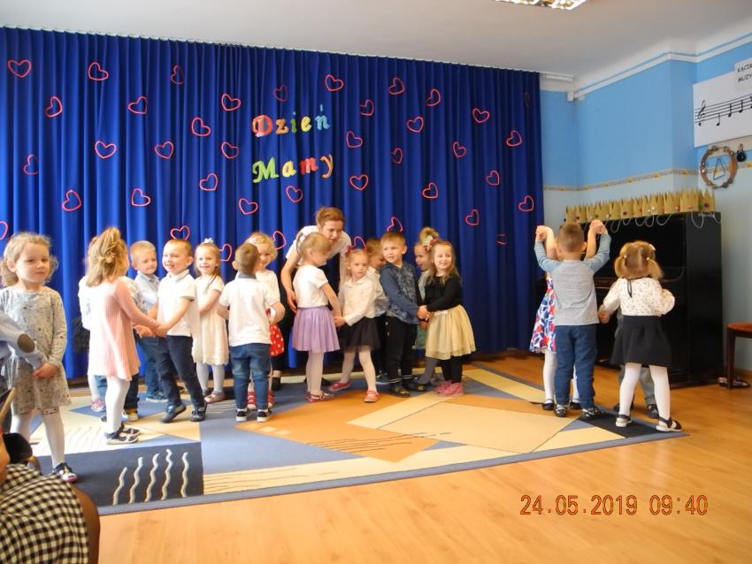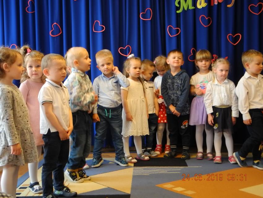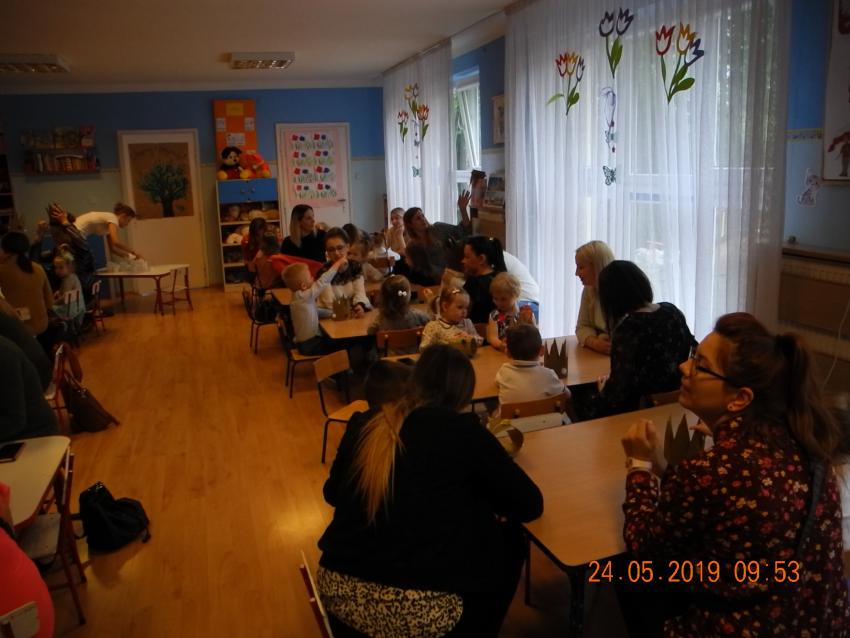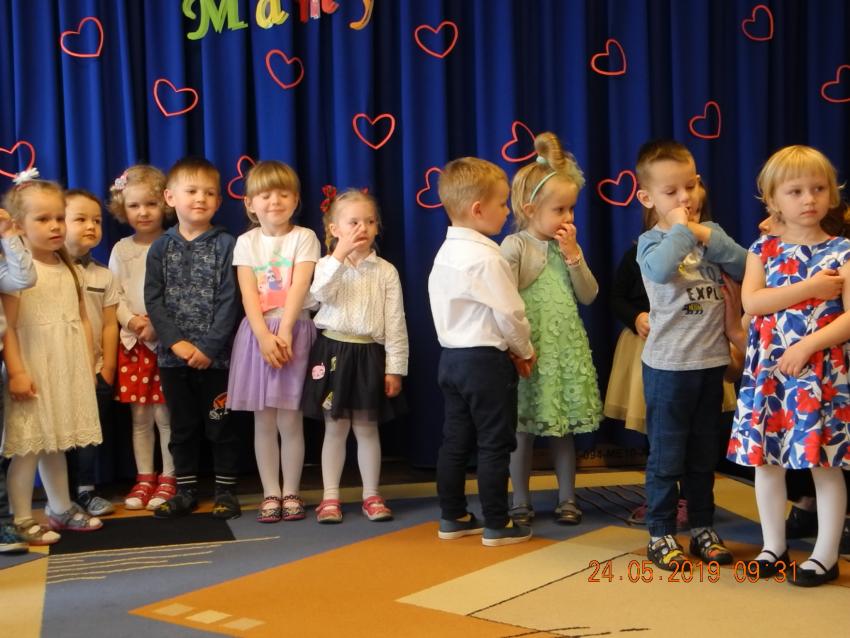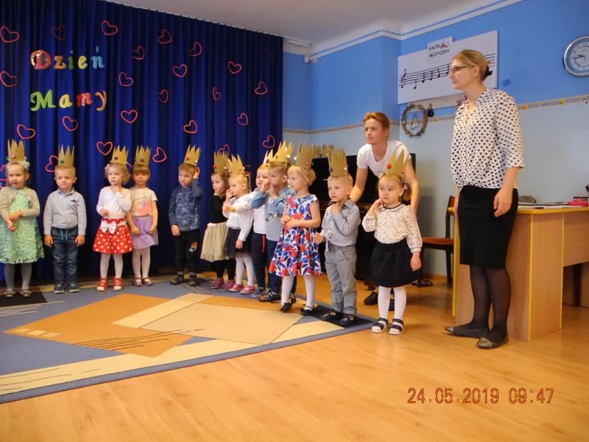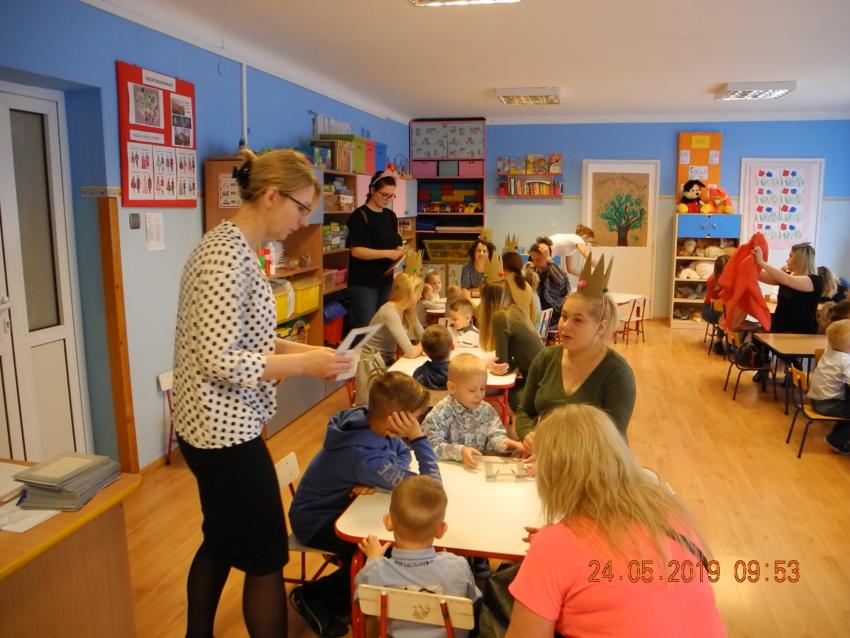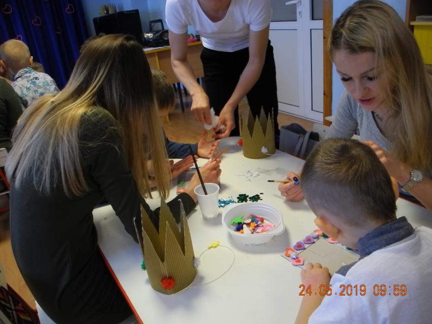 W piątek 24 maja grupa I- „Kotki” świętowała Dzień Mamy. Z tej okazji dzieci zaprosiły swoje mamy na uroczystość, która składała się z dwóch części - artystycznej oraz warsztatów plastycznych. Kotki śpiewały, tańczyły oraz wspólnie bawiły się ze swoimi mamusiami. Na zakończenie występów artystycznych dzieci zaśpiewały piosenkę pt. „Mama królowa” zespołu Arka Noego, podczas której każda mama dostała swoją koronę i została królową. Po części artystycznej dzieci ze swoimi mamami ozdobiły papierowe rameczki na zdjęcia. Spotkanie dostarczyło wszystkim wiele wzruszeń i radości.