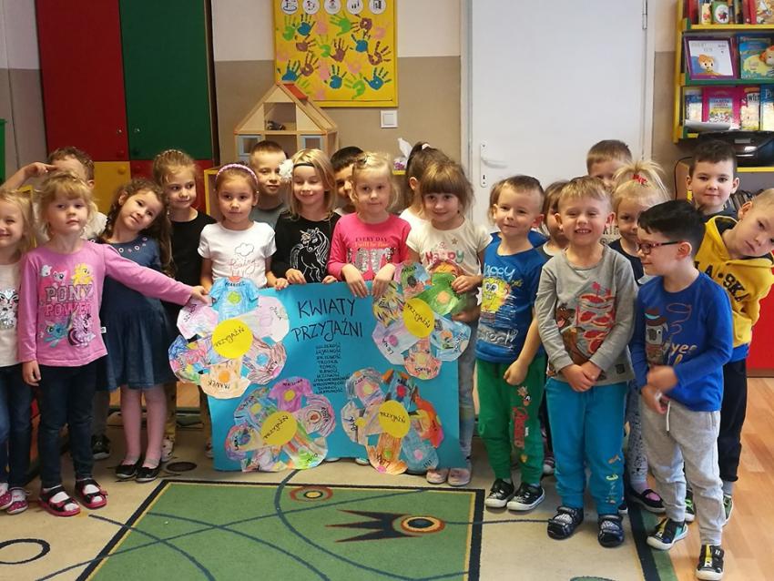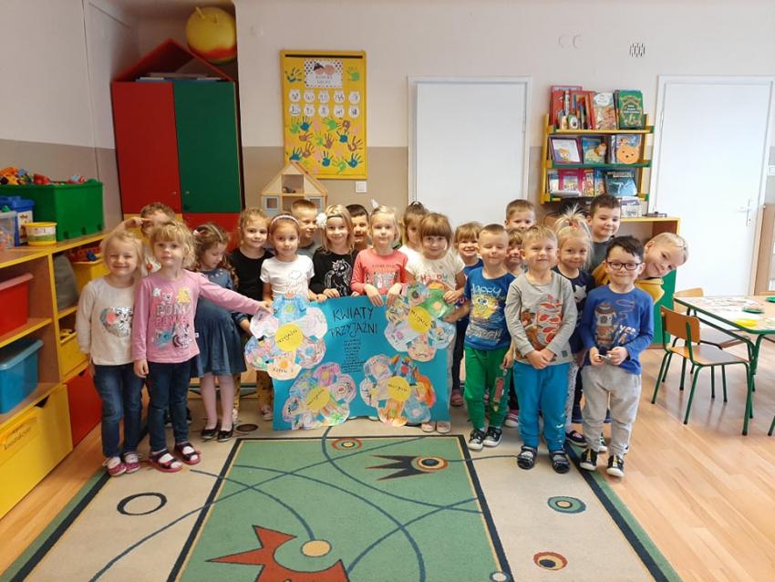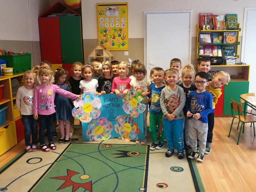W listopadzie, realizując Międzynarodowy Projekt Czytelniczy "Magiczna Moc bajek", czytaliśmy dzieciom fragmenty książki A. A. Milne’a „Kubuś Puchatek”, rozmawialiśmy na temat „Kto to jest przyjaciel?”, określaliśmy cechy prawdziwego przyjaciela oraz wykonaliśmy grupową pracę plastyczną „Kwiaty przyjaźni”.