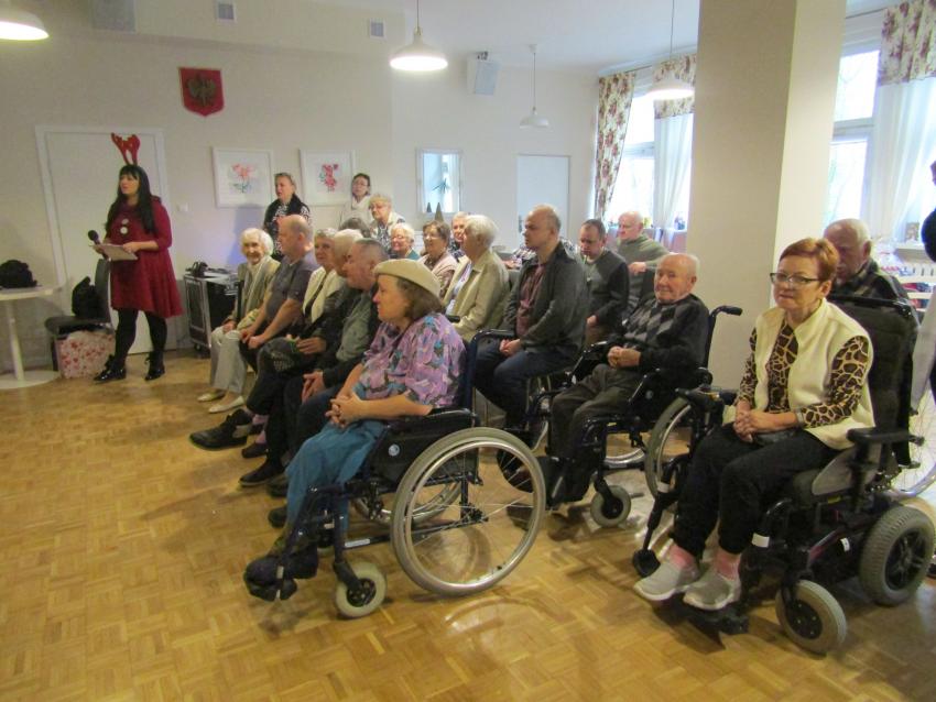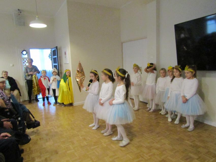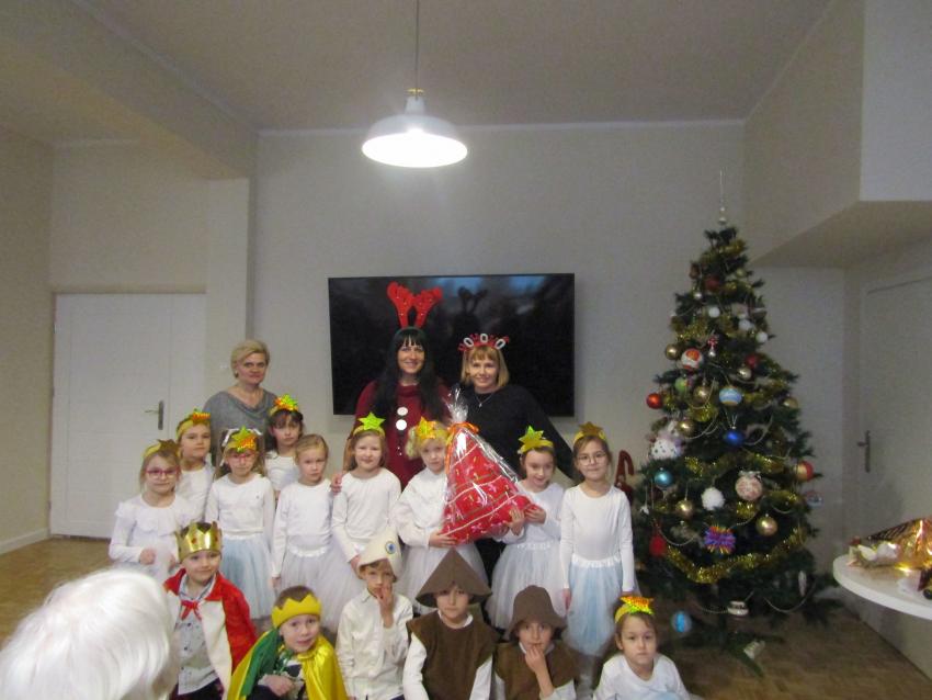 W dniu 19 grudnia 2019 roku dzieci z grupy IX - Misie- pod opieką wychowawców pojechały do Domu Pomocy Społecznej "Weterana Walki i Pracy" przy ul. Wyścigowej w Radomiu. Była to bardzo wzruszająca wizyta. Mieszkańcy wspólnie z dziećmi śpiewali kolędy i składali sobie świąteczne życzenia. Dzieci zaprezentowały krótki program artystyczny, który bardzo spodobał się naszej publiczności. Dzieci otrzymały głośne brawa i słodkie podziękowania od Dyrekcji Domu Pomocy Społecznej. Zawsze będziemy pamietać o osobach starszych i chorych. Cieszymy się, że mogliśmy umilić im pobyt i przypomnieć o nadchodzących świętach Bożego Narodzenia.
