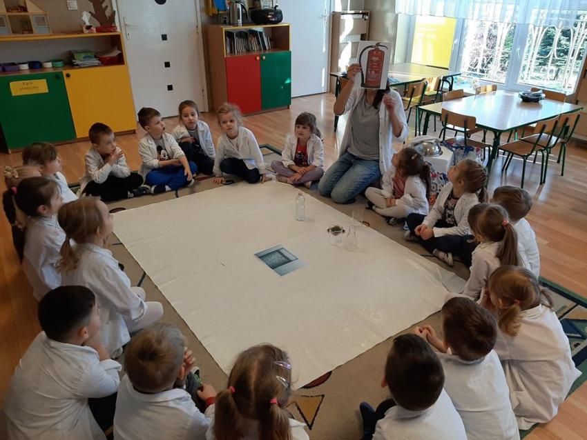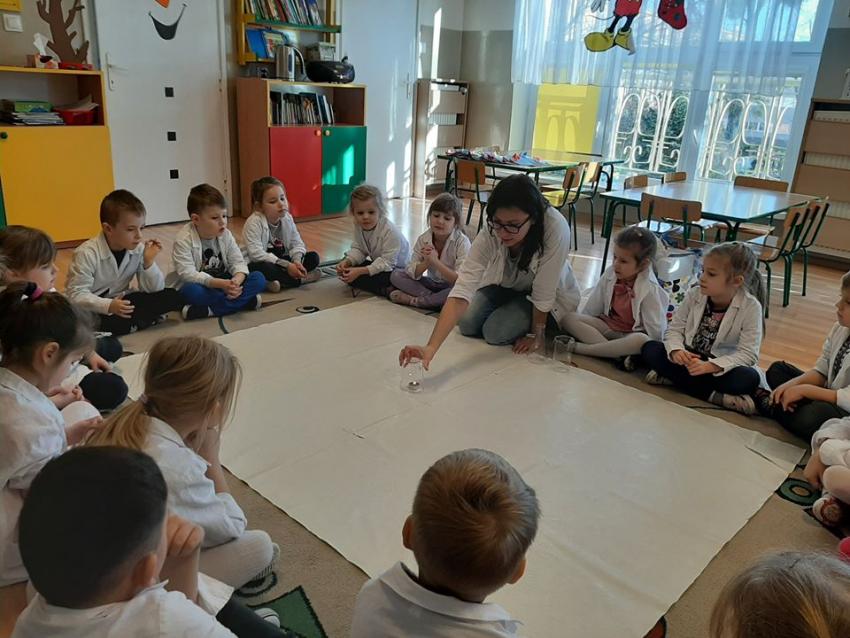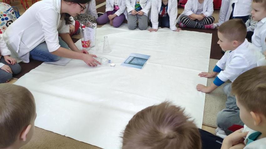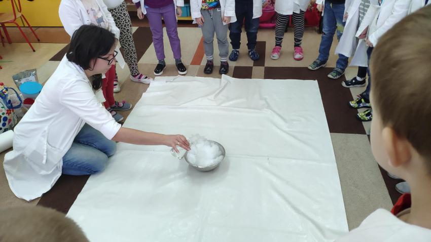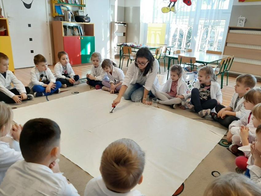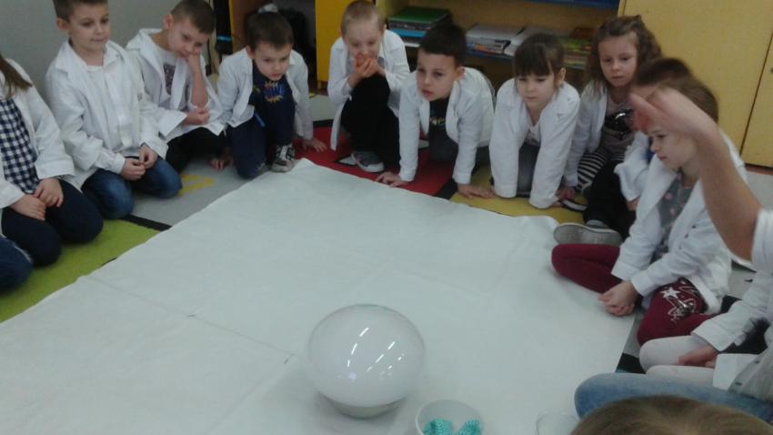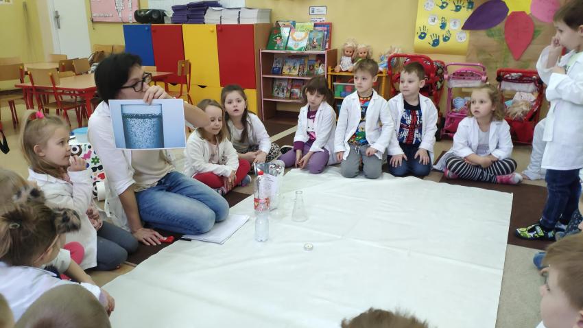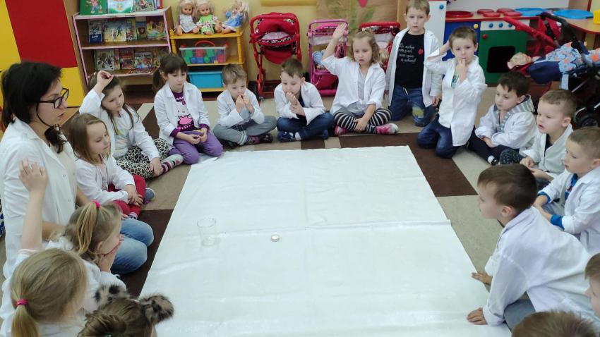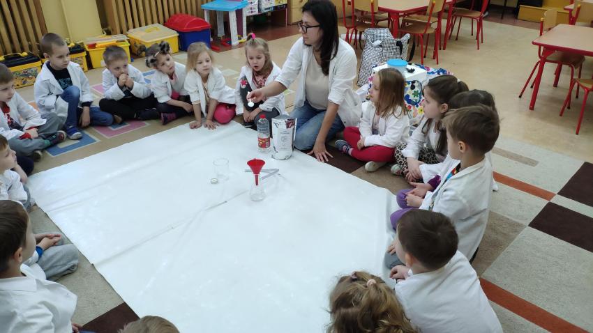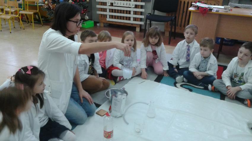 W dniach 21 i 22 stycznia odbyły się kolejne spotkania z eksperymentami z cyklu "Mania poznawania". Tym razem dzieci ze wszystkich grup miały okazję poznania gazu występującego w powietrzu „dwutlenku węgla”. Dzieci podczas obserwacji doświadczeń ze świeczką oraz sodą i octem poznały właściwości tego gazu. Wielkie wrażenie wywarła na przedszkolakach prezentacja suchego lodu oraz magicznych sztuczek, które miały okazje oglądać m.in. powstawanie bańki. Śmiało można zatem stwierdzić, że było to kolejne udane spotkanie z nauką.