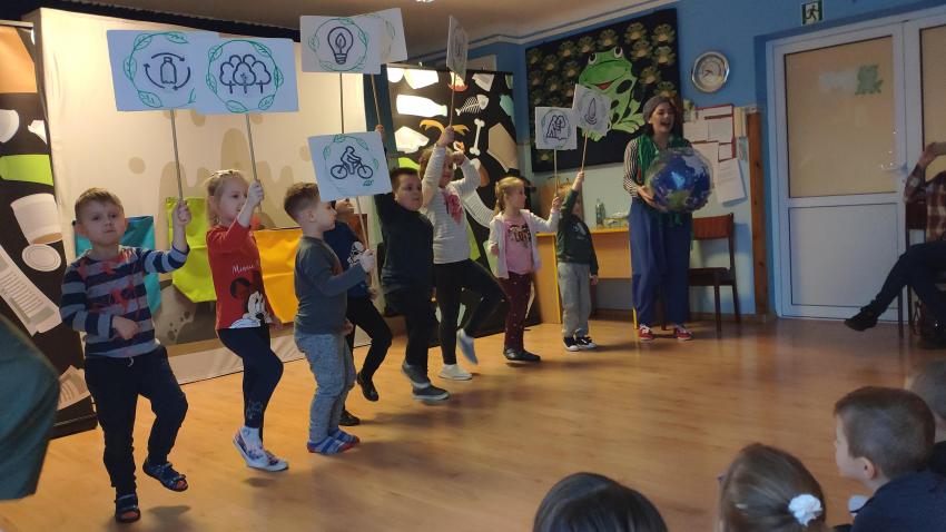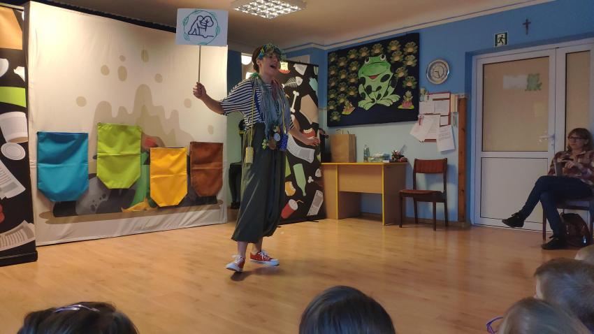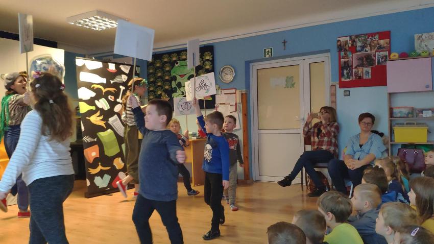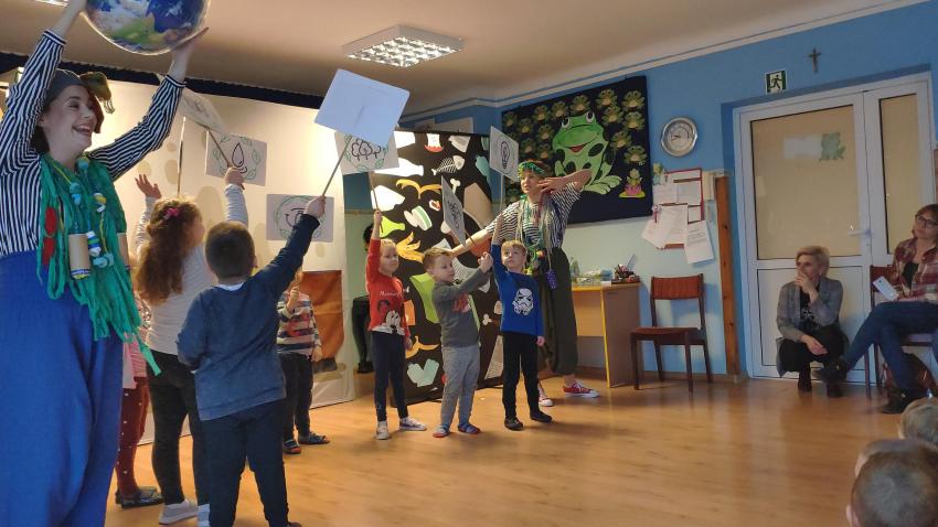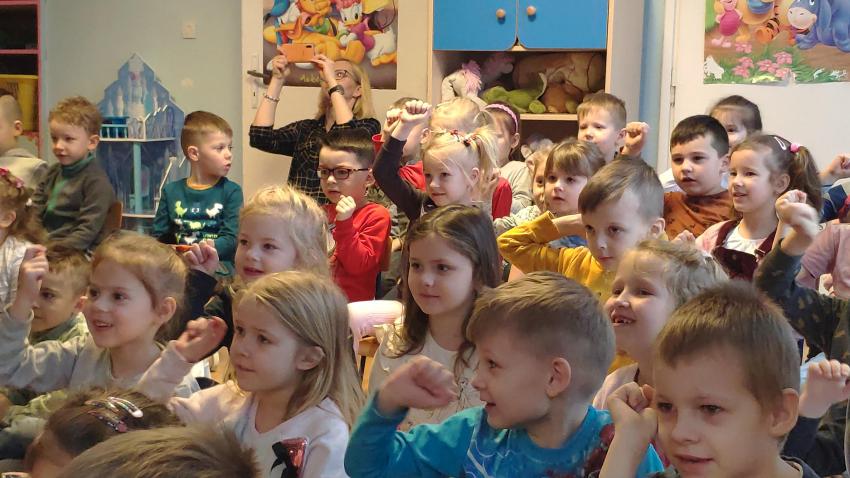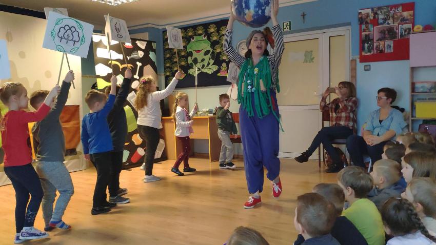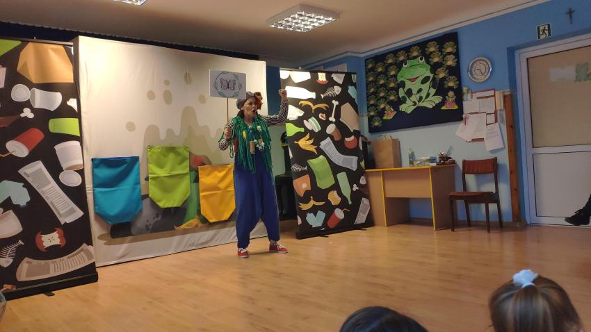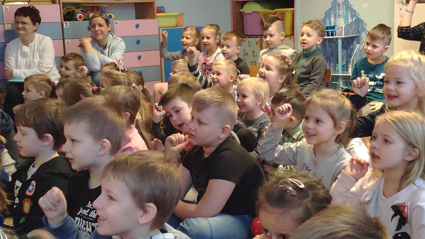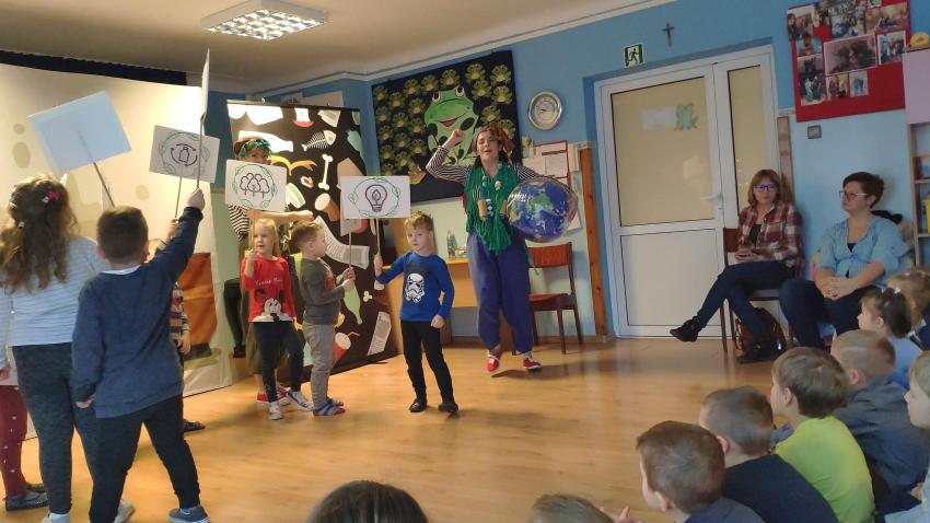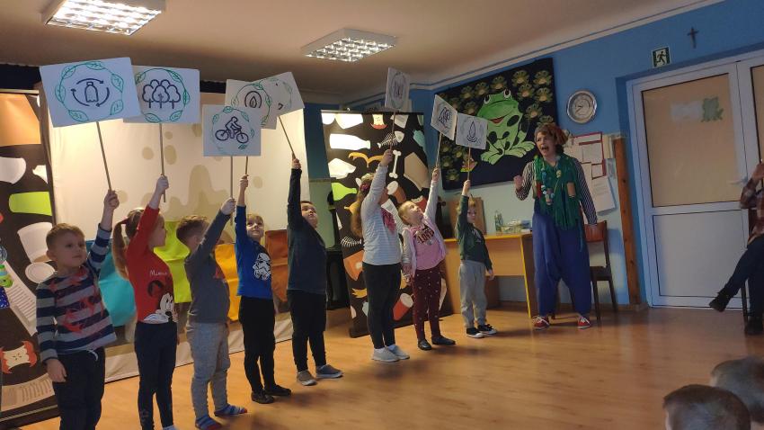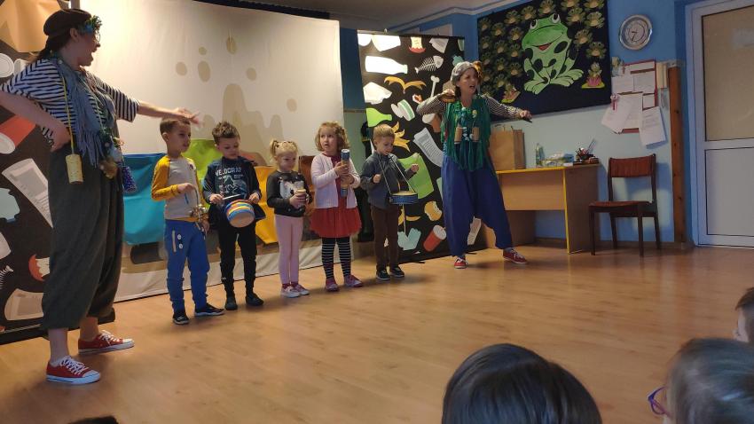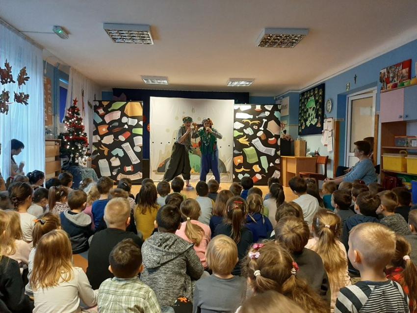 8 stycznia nasze przedszkole odwiedził zaprzyjaźniony teatr „Tak”. Tym razem dzieci oglądały spektakl o tematyce ekologicznej „Śmieciaki ratują świat”. Przedstawienie miało na celu uświadomić dzieciom, jak ważny jest recykling i dbanie o środowisko. Przedstawienie promowało dobre zachowania, m.in. oszczędzanie wody, prądu, szanowanie roślin i zwierząt poprzez hasła wykrzykiwane w trakcie występu w języku polskim i angielskim. Dodatkowo dzieci miały okazję zagrać na instrumentach stworzonych z odpadów, co uświadomiło im możliwości przetwarzania zużytych przedmiotów. Naszym dzieciom bardzo podobał się występ i na pewno pozostanie na długo w ich pamięci.