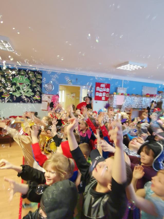 29 stycznia 2020 roku w naszym przedszkolu odbył się niezwykły bal karnawałowy. Przedszkolaki tańczyły, śpiewały, przechodziły pod liną. Był pokaz mody jak z Paryża, a także bitwa na śnieżki. Na zakończenie balu animatorzy zapełnili całą salę bańkami mydlanymi!! Zabawa była bardzo udana :)