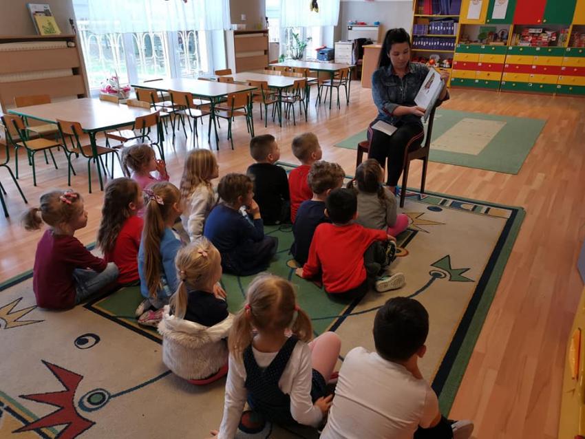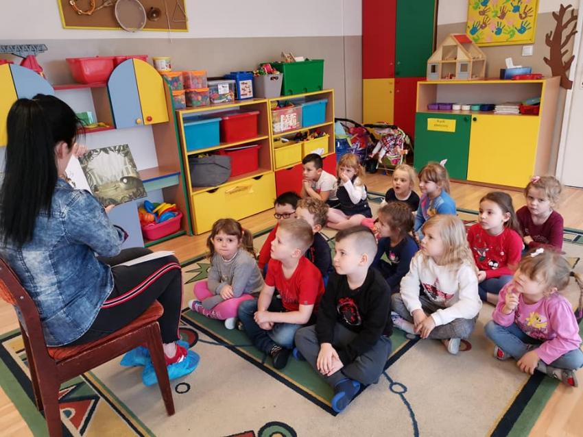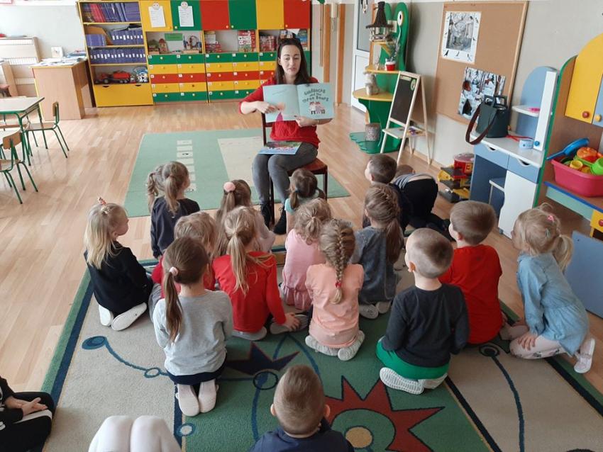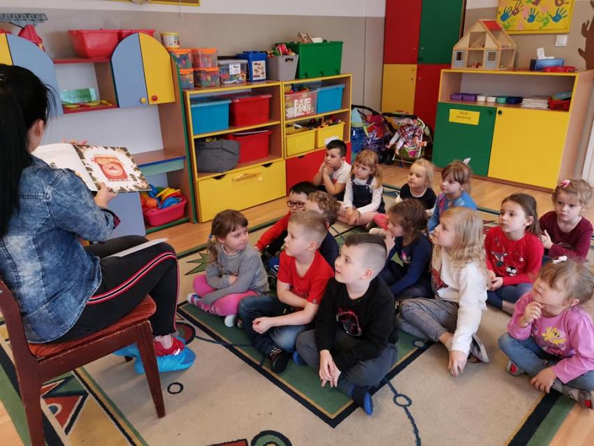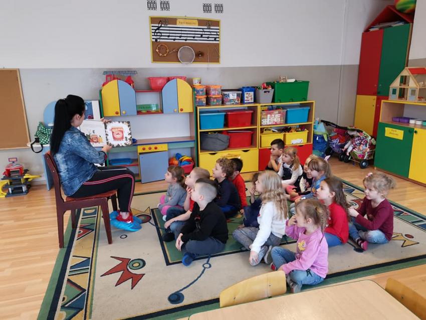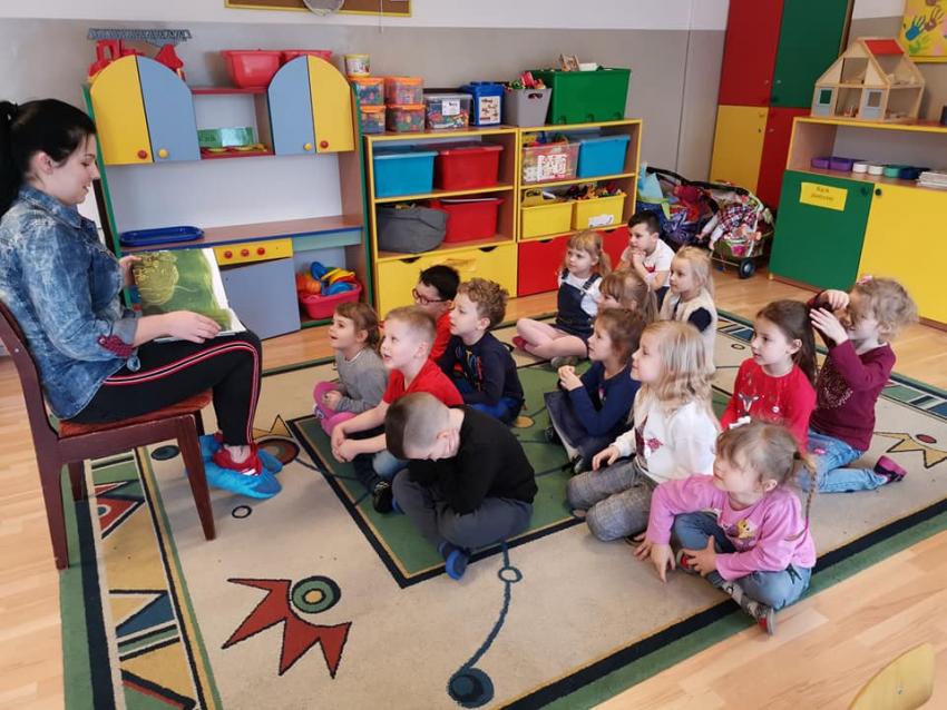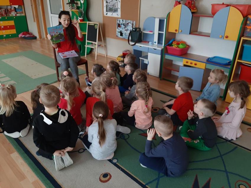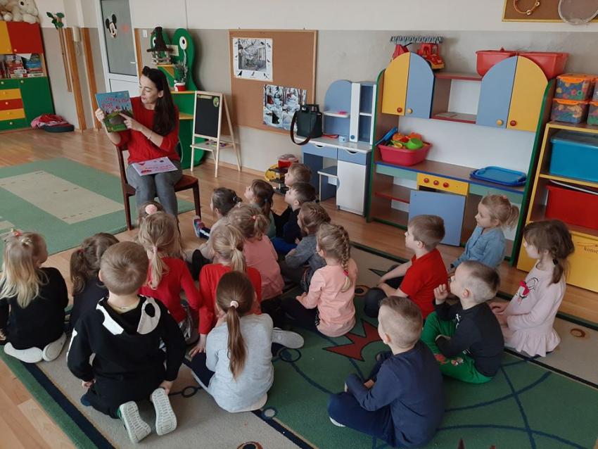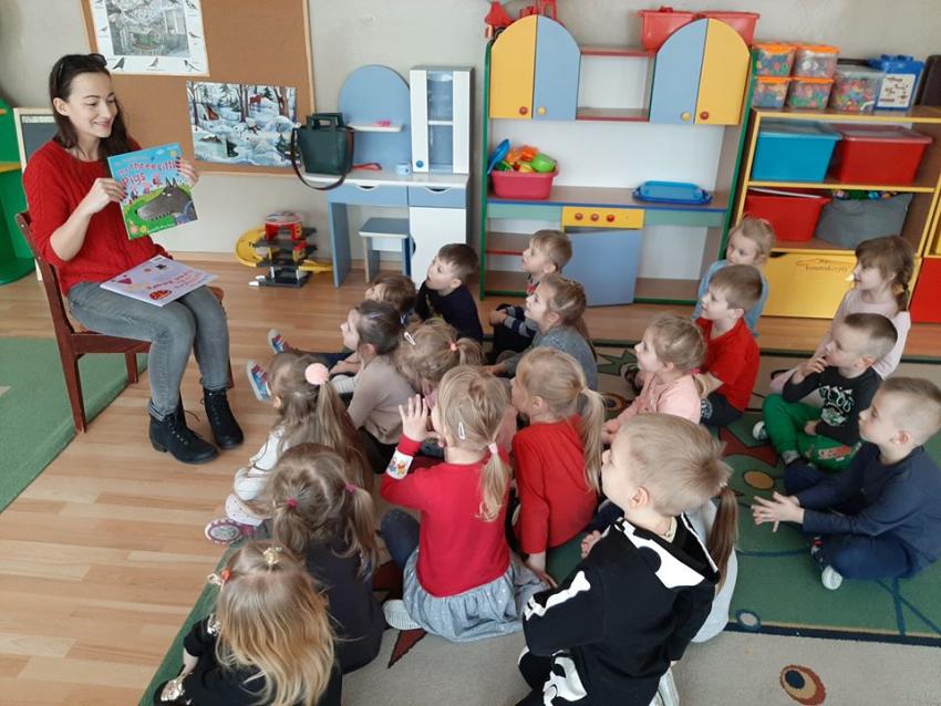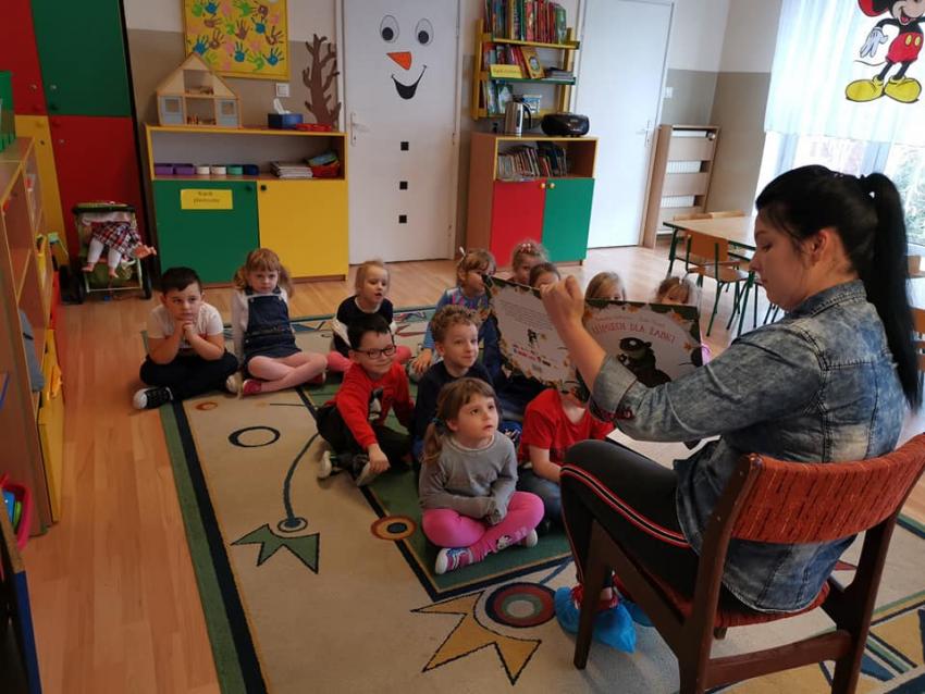 W ramach akcji "Zima z książką" grupa V "Myszki" gościła mamę Amelki, która przeczytała dzieciom piękną bajkę P. Wechterowicza i E. Dziubak "Uśmiech dla żabki". Przedszkolaki były zauroczone opowiadaniem. Na zakończenie spotkania mama Amelki miała dla wszystkich słodką niespodziankę. "Myszki" odwiedziła także mama Lili, która przygotowała bajkę w języku angielskim, co było ogromną niespodzianką dla dzieci. Dziękujemy za cudowne czytanie bajek. Bardzo Nam się podobało!!