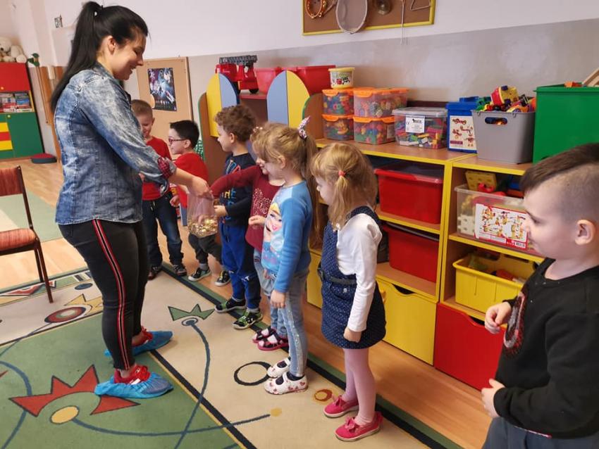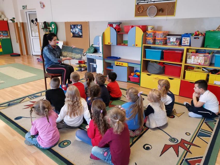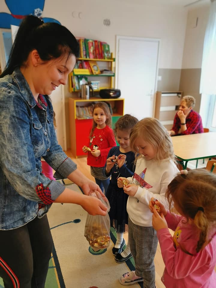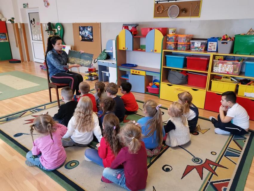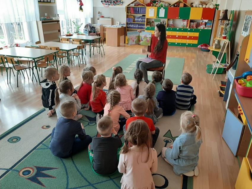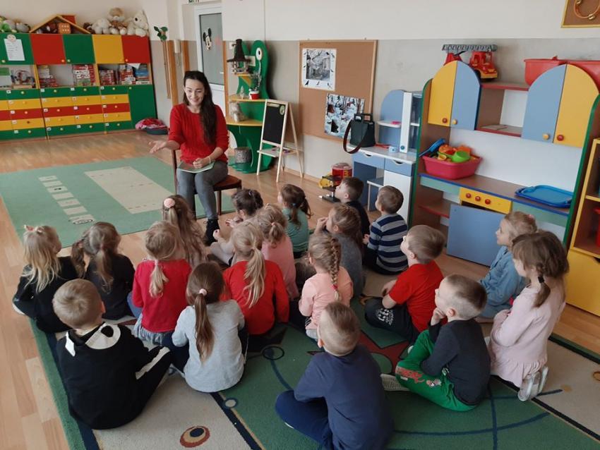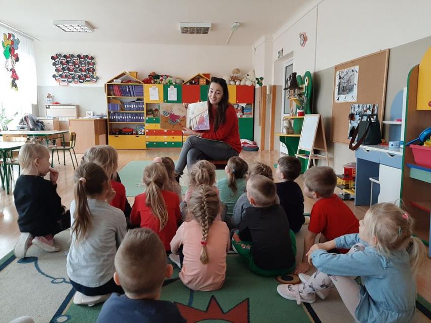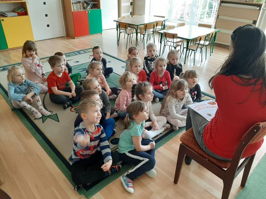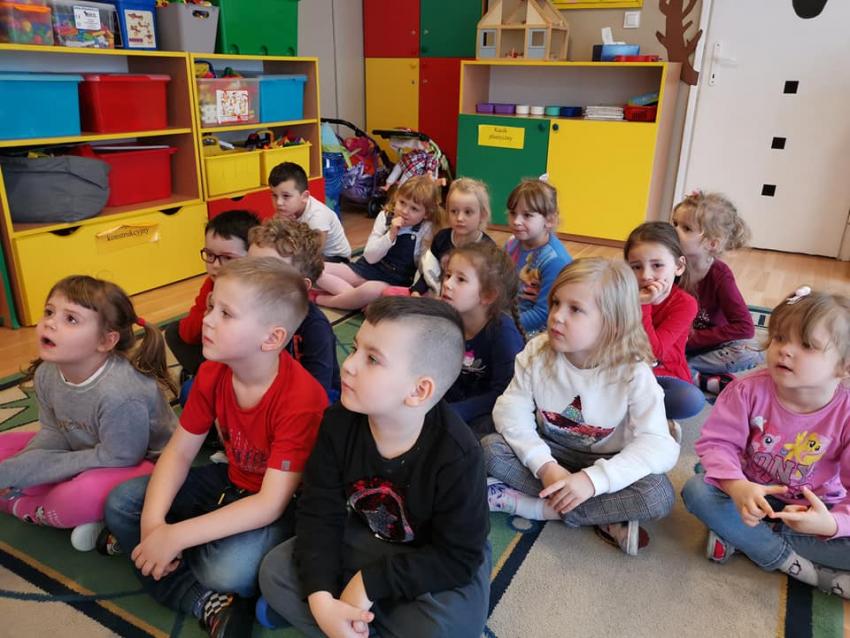 W ramach akcji "Zima z książką" grupa V "Myszki" gościła mamę Amelki, która przeczytała dzieciom piękną bajkę P. Wechterowicza i E. Dziubak "Uśmiech dla żabki". Przedszkolaki były zauroczone opowiadaniem. Na zakończenie spotkania mama Amelki miała dla wszystkich słodką niespodziankę. "Myszki" odwiedziła także mama Lili, która przygotowała bajkę w języku angielskim, co było ogromną niespodzianką dla dzieci. Dziękujemy za cudowne czytanie bajek. Bardzo Nam się podobało!!