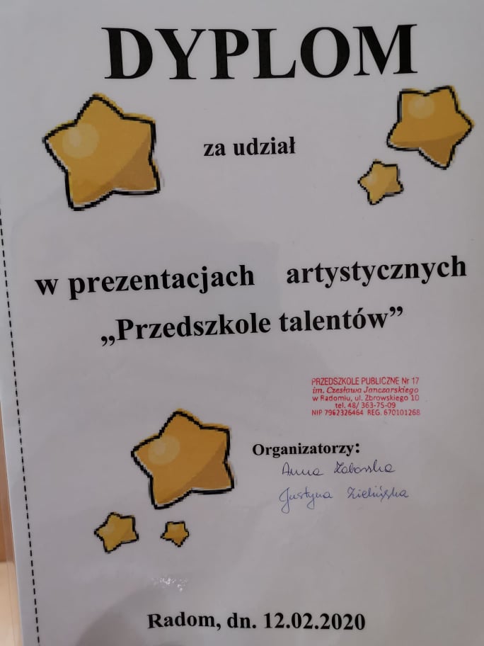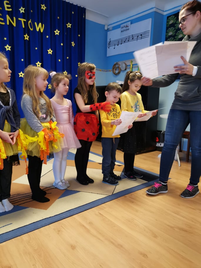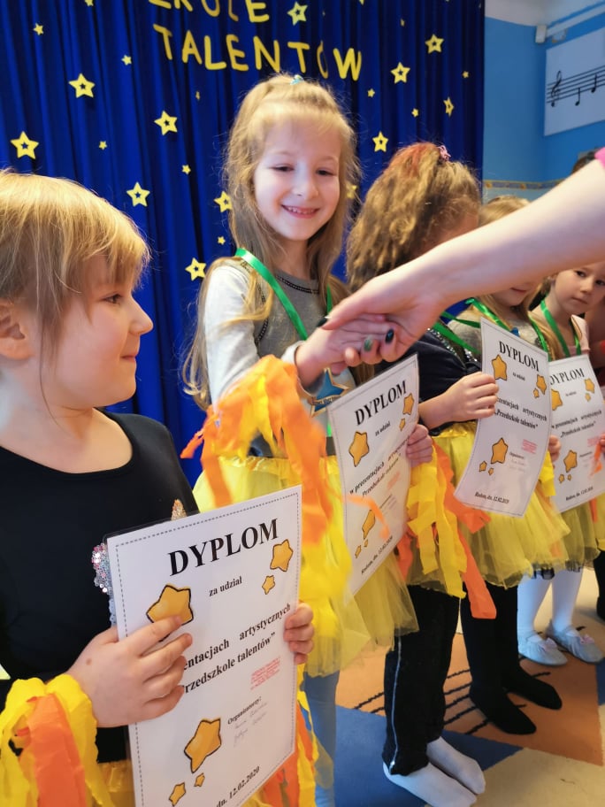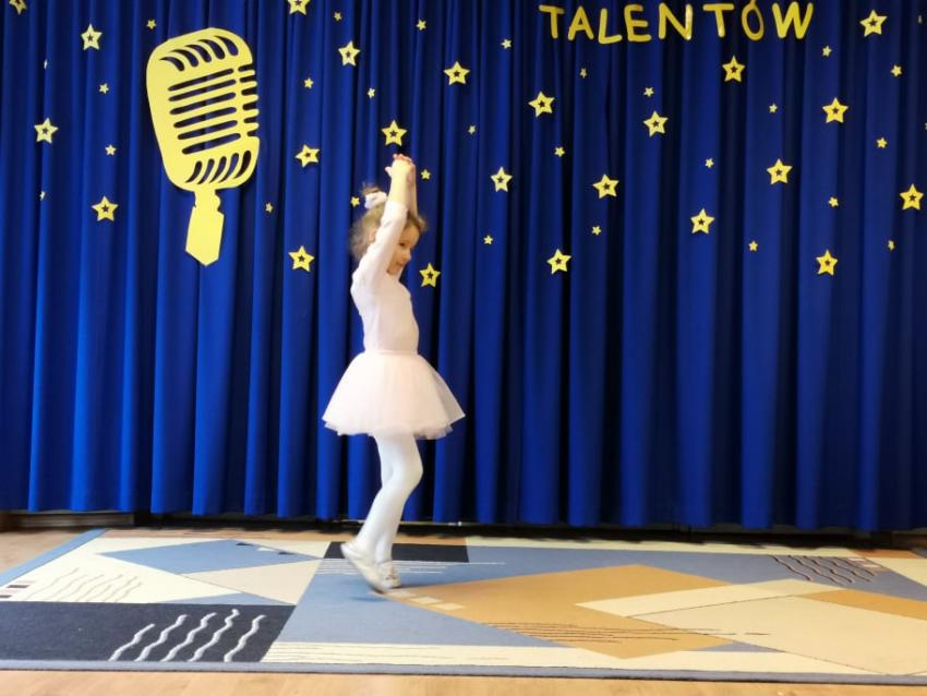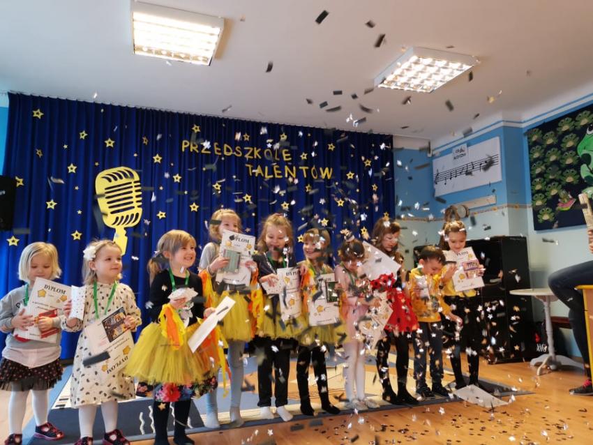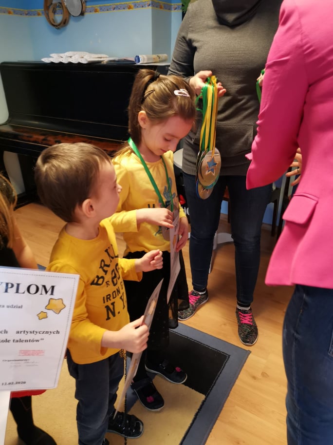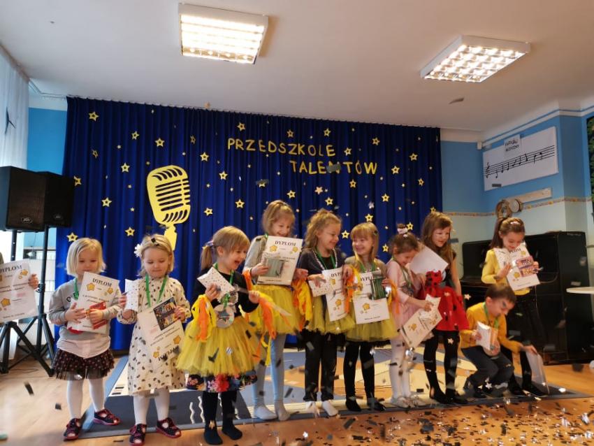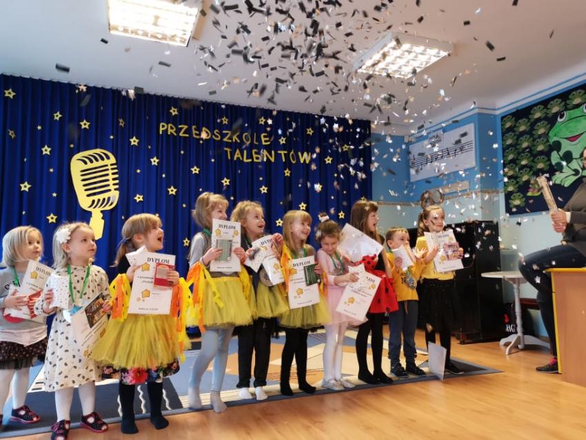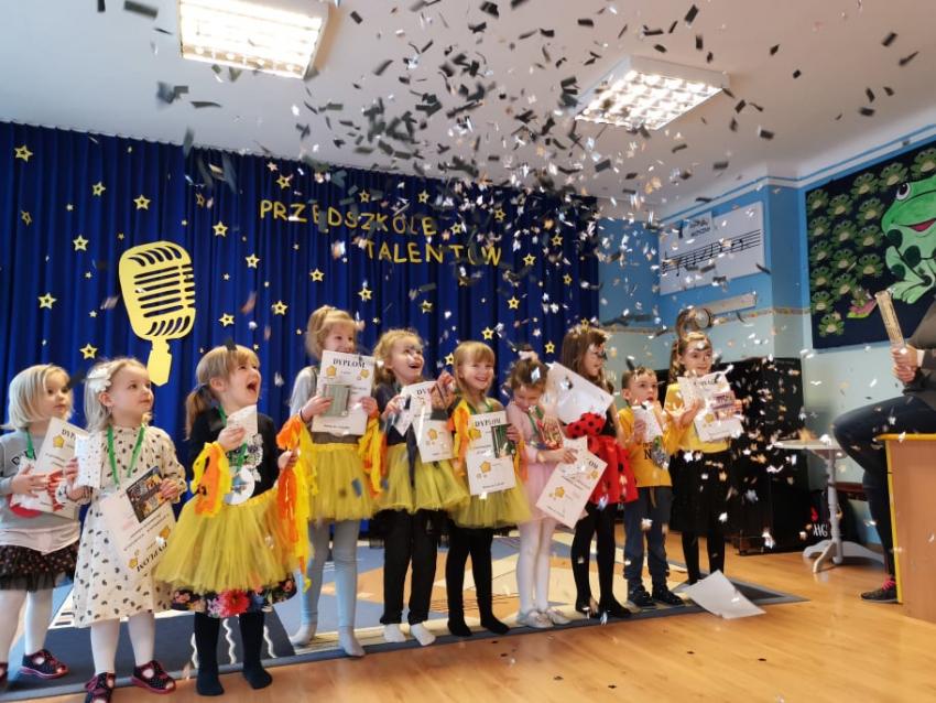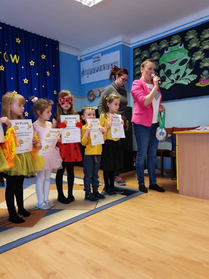 W lutym została zorganizowana przedszkolna edycja prezentacji artystycznych „Przedszkole Talentów”. Zgłosiło się 12 dzieci, aby zaprezentować swoje zdolności i talenty. Emilka i Ola z grupy II "Zajączków" śpiewały piosenki, Lena z grupy IX "Misiów" recytowała wiersz. Filip M. zaprezentował się w tańcu nowoczesnym, a także był choreografem do tańca koleżanek z grupy VII "Pszczółek", które również śpiewały piosenkę. Zosia z grupy V "Myszek" przepięknie zatańczyła układ baletowy. Olek z grupy III "Kotków" wykonał eksperyment, w którym bez użycia powietrza napompował balon. Wszyscy byli zachwyceni. Na koniec Łucja z grupy IX "Misiów" opowiedziała bajkę o misiach, którą sama wymyśliła. Za piękne prezentacje dzieci otrzymały dyplomy, medale, płyty z bajkami oraz drobne upominki.