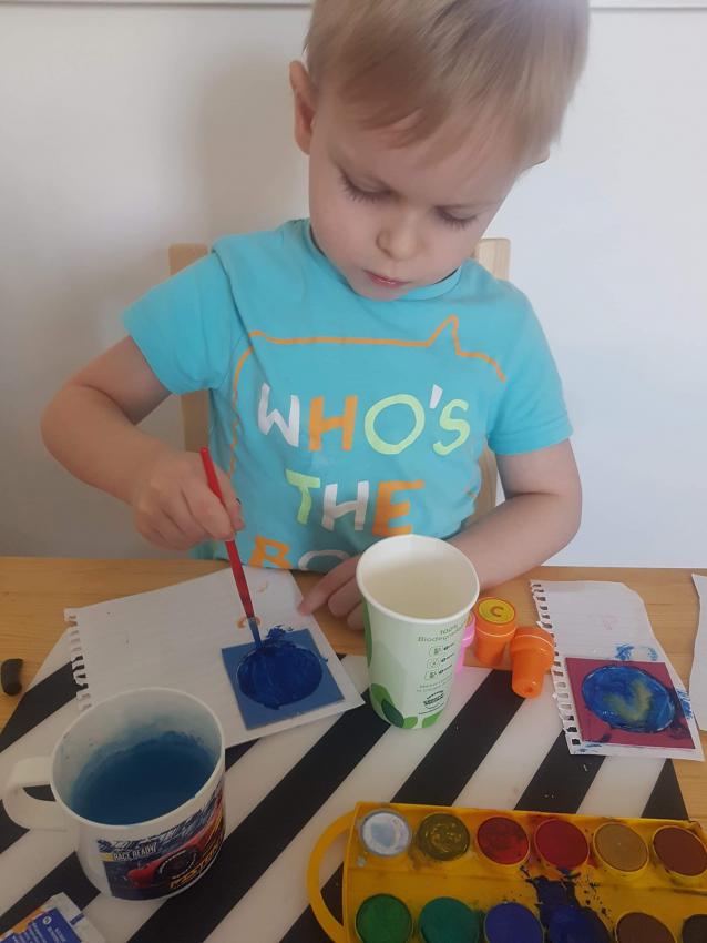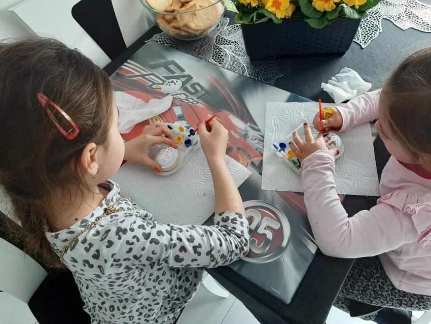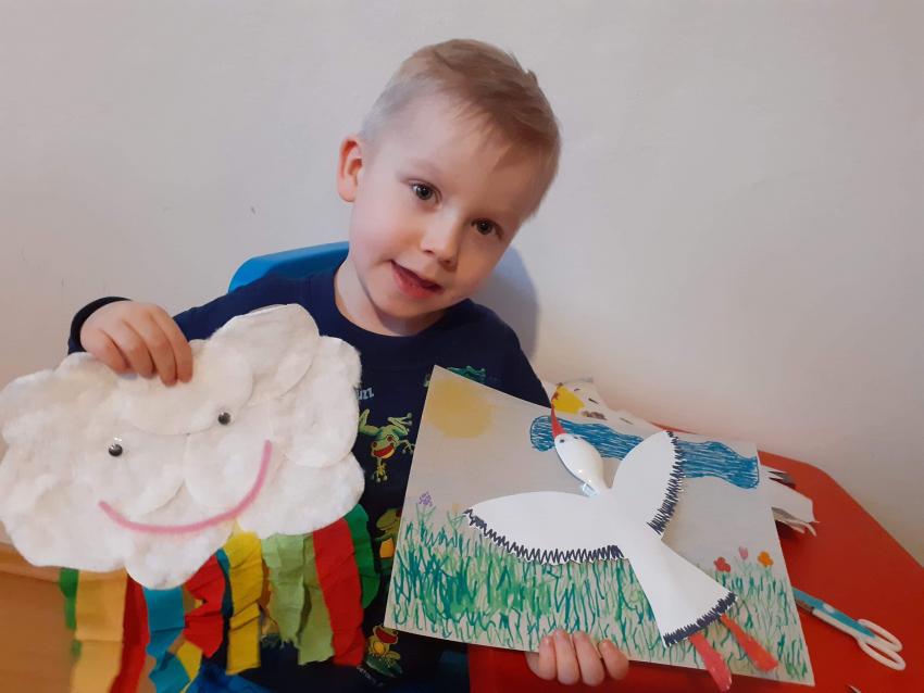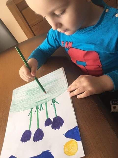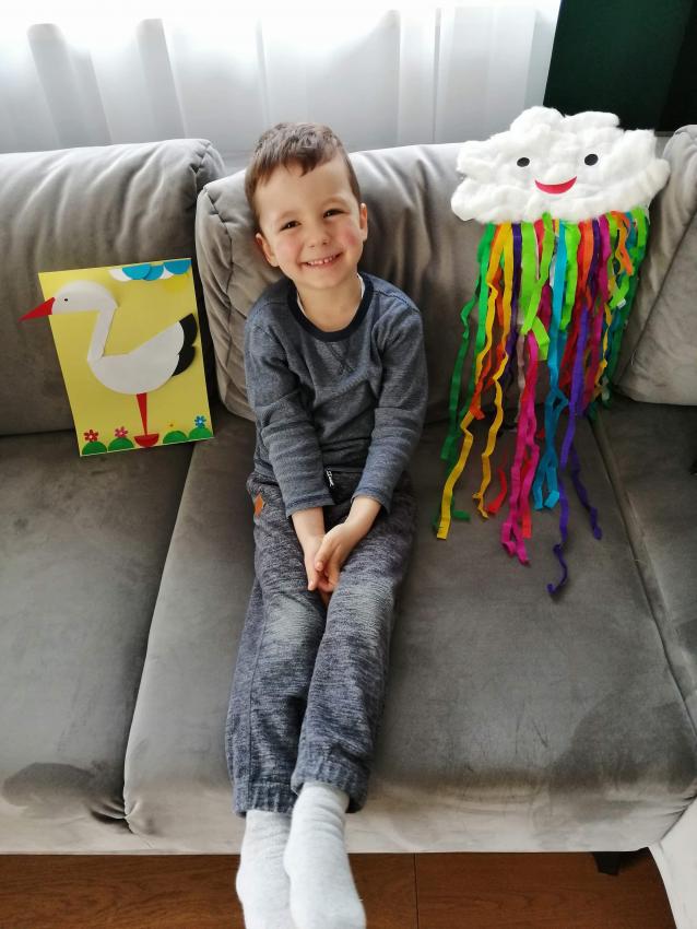 Maluszki z I grupy obowiązkowo przestrzegają kwarantanny nie nudząc się oczywiście... Wykonują rzetelnie zadane prace plastyczne, uczą się piosenek... Pieką muffinki i sądzą kwiatki. Są przesyłane rodzicom różne propozycje zabaw, które można wykonywać podczas zaleconej kwarantanny... Dzieci chętnie uczestniczą w zabawach i różnych zadaniach i widać, że mają z tego wiele radości.
