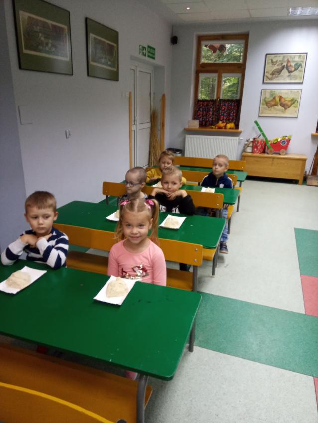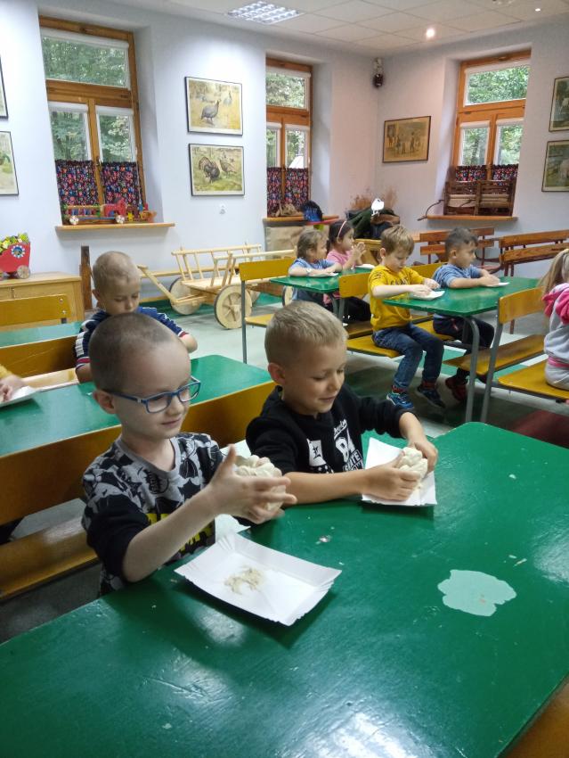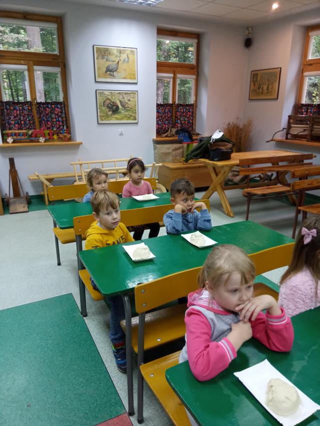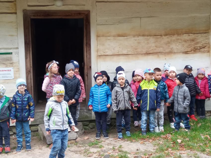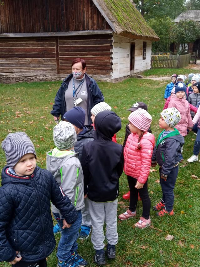 Dnia 8 października 2020 r. dzieci z grupy VII pojechały na wycieczkę do Muzeum Wsi  Radomskiej. Celem wycieczki był udział w lekcji muzealnej „ Od ziarenka do bochenka”. Dzieci mogły spróbować samodzielnie pozyskać mąkę z ziarna oraz uformować bułkę z ciasta drożdżowego, która została wypieczona i zabrana do przedszkola. Ponadto dowiedziały się jak uprawia się zboże i jak powstaje z niego mąka, co to jest zakwas, jak tradycyjnie wypieka się chleb oraz jakie narzędzia towarzyszyły przy tych czynnościach. Następnie zobaczyły wodny młyn i odwiedziły gospodarstwo wiejskie ze zwierzętami w zagrodzie.