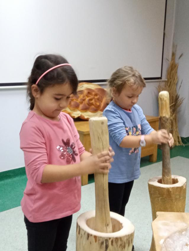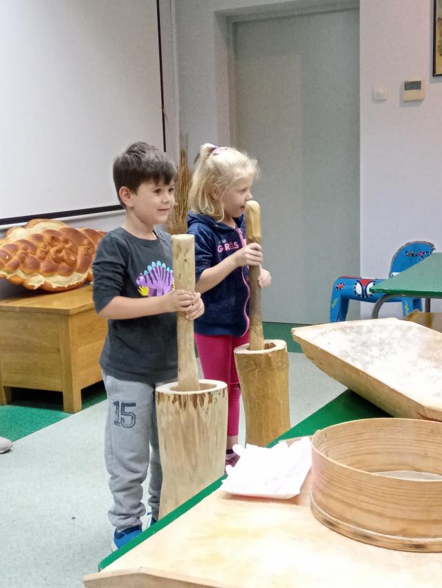 "Od ziarenka do bochenka" udział dzieci z grupy VII w lekcji muzealnej w Muzeum Wsi Radomskiej.