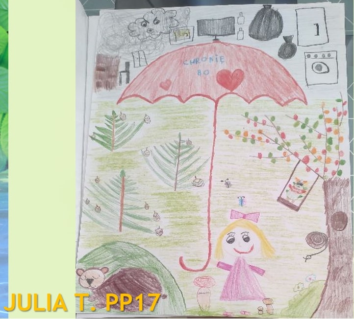 Na przełomie września i października odbył się Międzyprzedszkolny konkurs plastyczny „DBAMY O POLSKIE LASY” zorganizowany przez Przedszkole Publiczne nr 3 z Oddziałami Specjalnymi im. J. Porazińskiej w Radomiu. Patronem konkursu był Regionalny Dyrektor Lasów Państwowych w Radomiu. W konkursie wzięły udział dwie prace dziewczynek z grupy VIII (Julii T.) i IX (Poli P.). Miło nam poinformować, że Julia T. zajęła III miejsce. Gratulujemy !!!