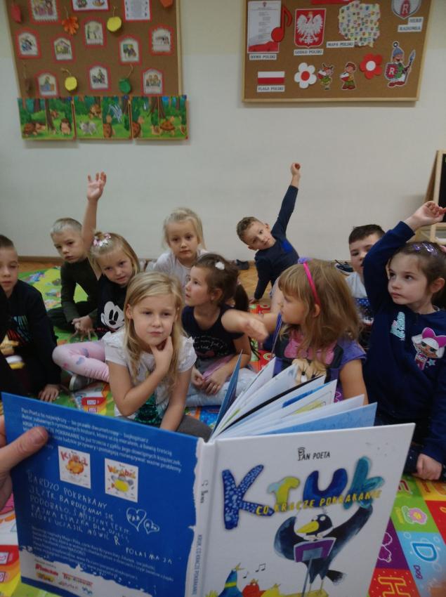 „Szanujmy obcość, inność, bo jest ciekawa” - zapoznanie dzieci z opowiadaniem o „Kruku, co krakał pokrakanie” – Pan Poeta. Wyjaśnienie, najmłodszym, dlaczego kruka nikt nie rozumiał, dlaczego czuł się obco? Jak mieszkańcy zareagowali na „przybysza”? Rozmowa z dziećmi, dlaczego lubimy podróżować? Wyjaśnienie pojęcia, że należy szanować osoby „inne”, w pewien sposób od nas różne, bo właśnie przez to mogą być dla nas ciekawe.