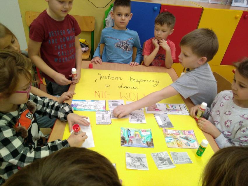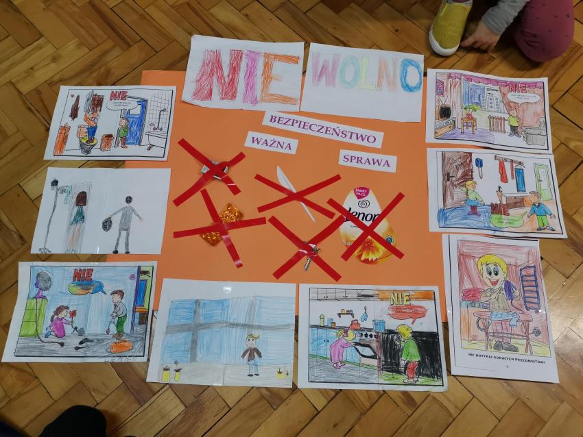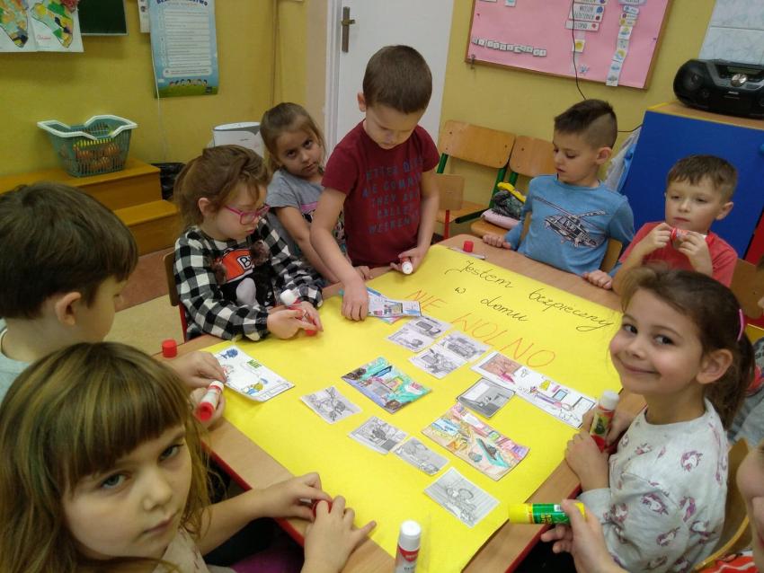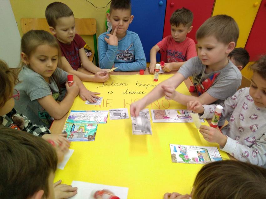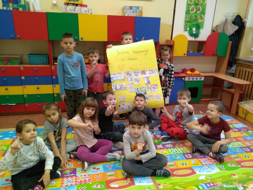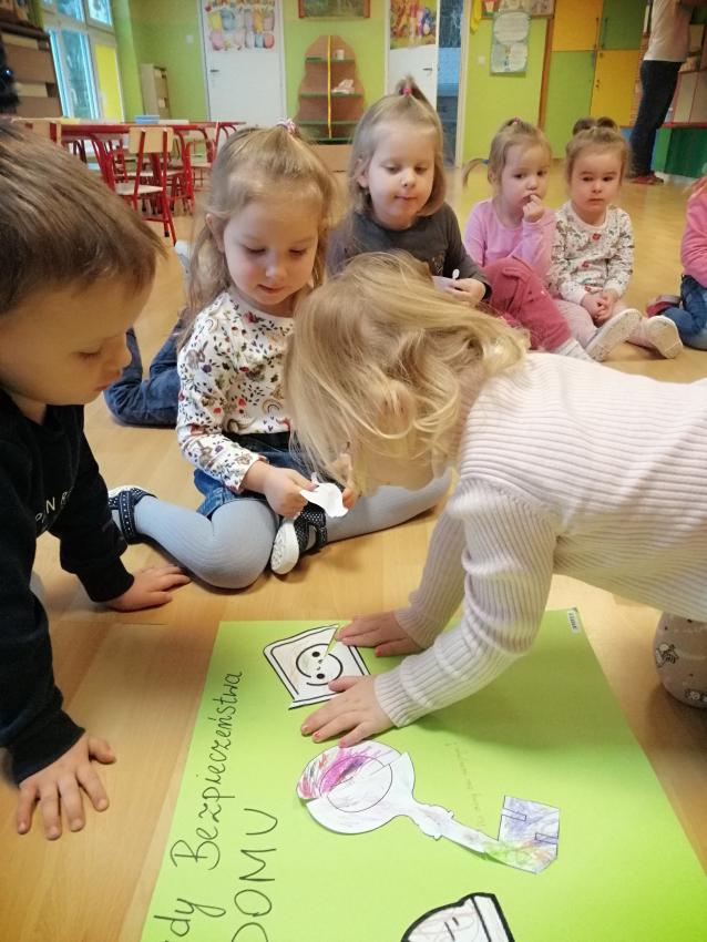 Bezpieczeństwo w domu to kolejny temat jaki poruszyliśmy realizując zadania programu „Jestem bezpieczny”. Dzieci w grudniu wysłuchały wiersza „Bezpieczny przedszkolak w domu” oraz obejrzały prezentację pt. „Bezpiecznie w domu”. Słuchały piosenek o tematyce bezpieczeństwa „Pali się!” i „Nieznajomy” zespołu Śpiewające Brzdące oraz bawiły się w poszukiwaczy „Niebezpiecznych skarbów”. Przedszkolaki z pomocą nauczycielek wykonały grupowe plakaty „Bezpieczeństwo ważna sprawa” potwierdzając, że zasady bezpiecznego zachowania się w domu nie są im obce.
