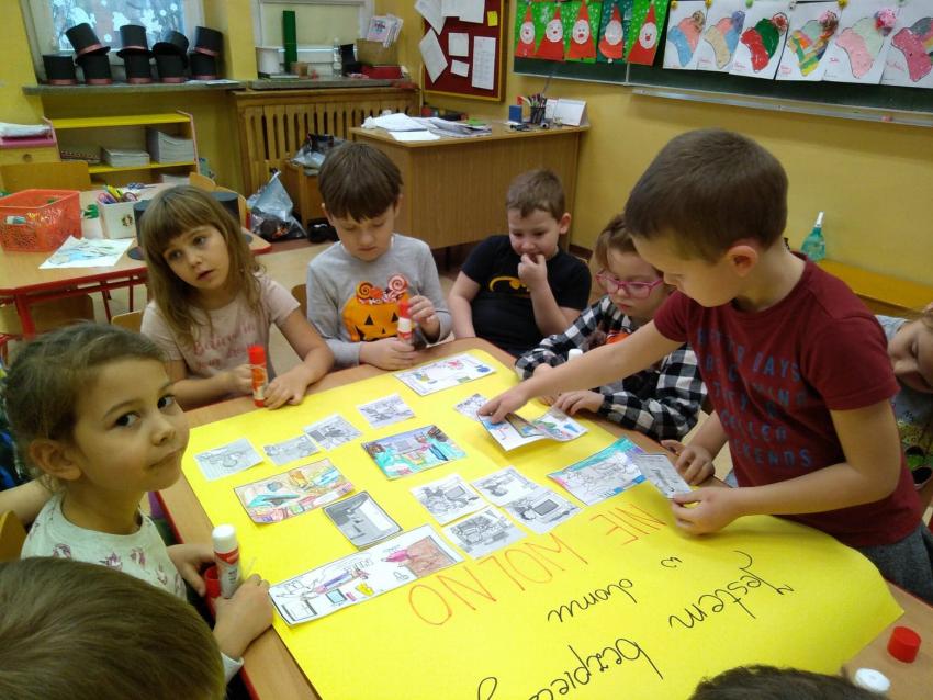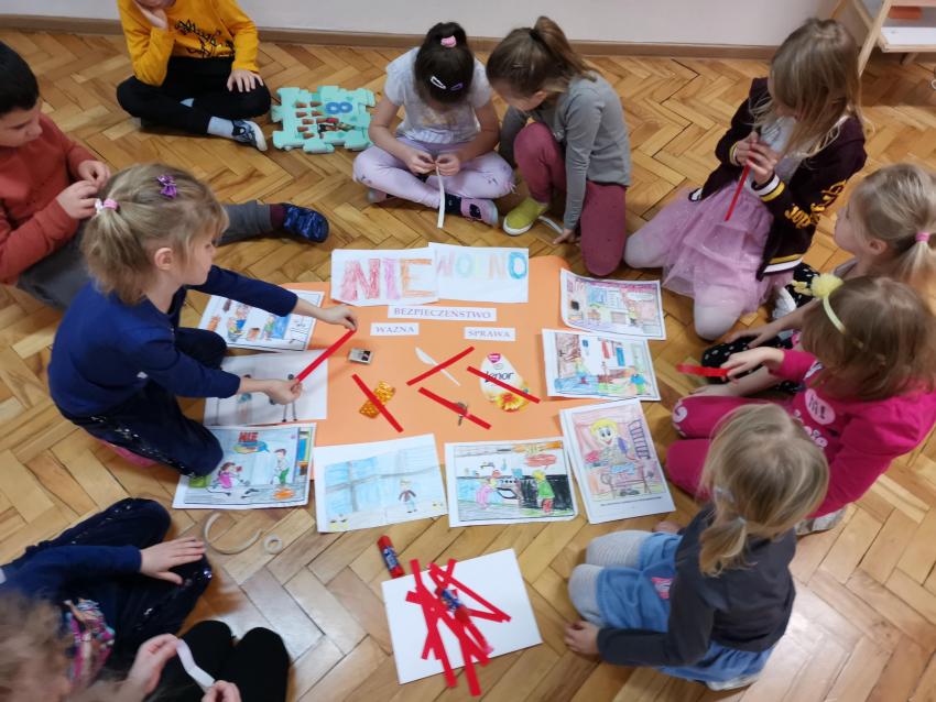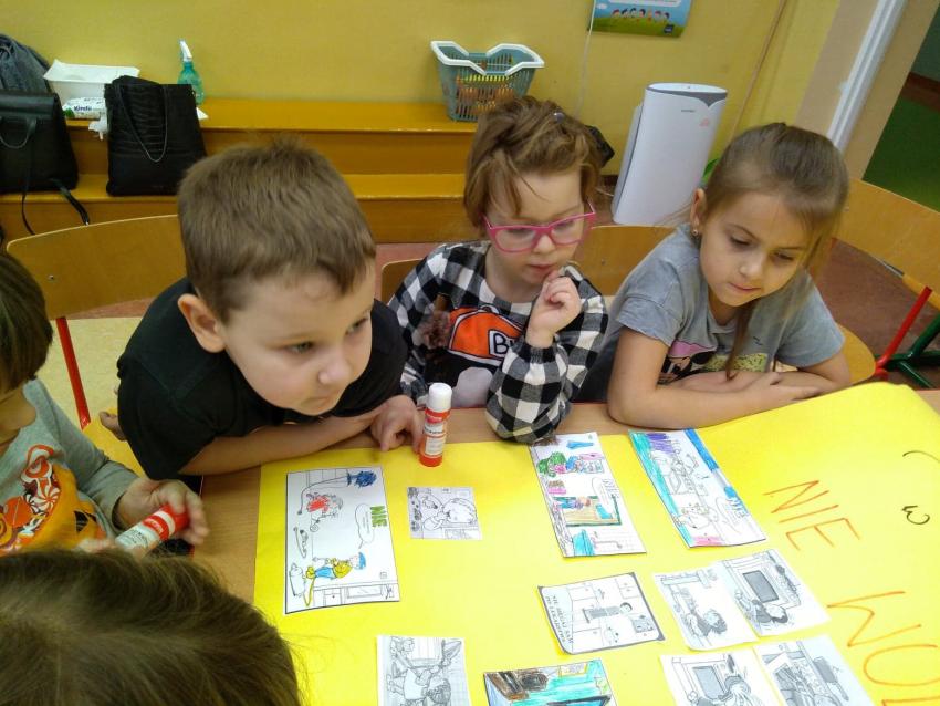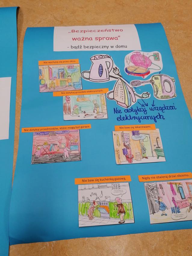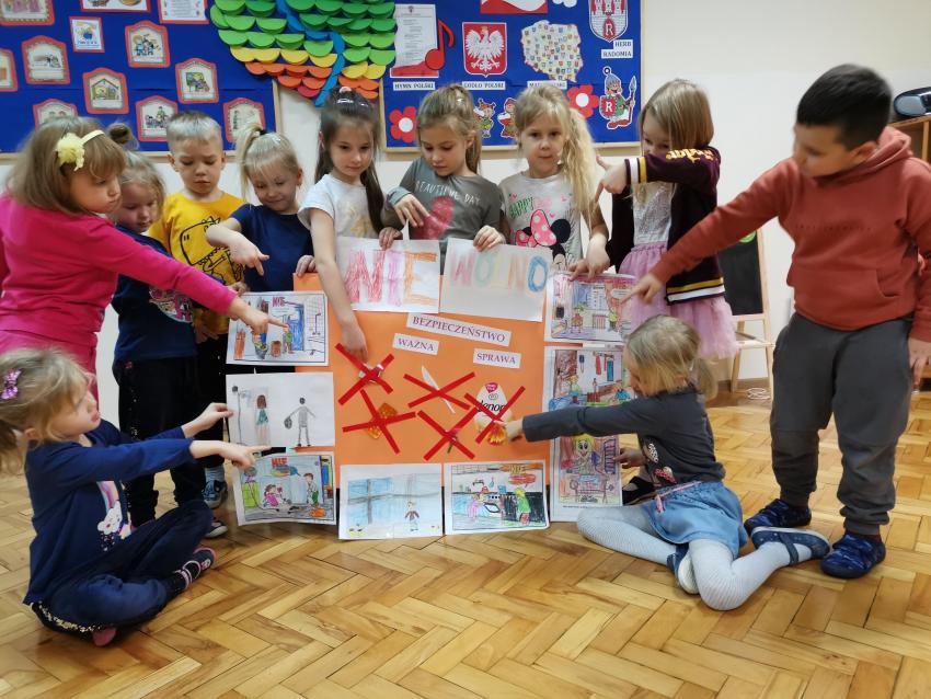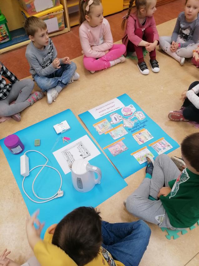 Bezpieczeństwo w domu to kolejny temat jaki poruszyliśmy realizując zadania programu „Jestem bezpieczny”. Dzieci w grudniu wysłuchały wiersza „Bezpieczny przedszkolak w domu” oraz obejrzały prezentację pt. „Bezpiecznie w domu”. Słuchały piosenek o tematyce bezpieczeństwa „Pali się!” i „Nieznajomy” zespołu Śpiewające Brzdące oraz bawiły się w poszukiwaczy „Niebezpiecznych skarbów”. Przedszkolaki z pomocą nauczycielek wykonały grupowe plakaty „Bezpieczeństwo ważna sprawa” potwierdzając, że zasady bezpiecznego zachowania się w domu nie są im obce.