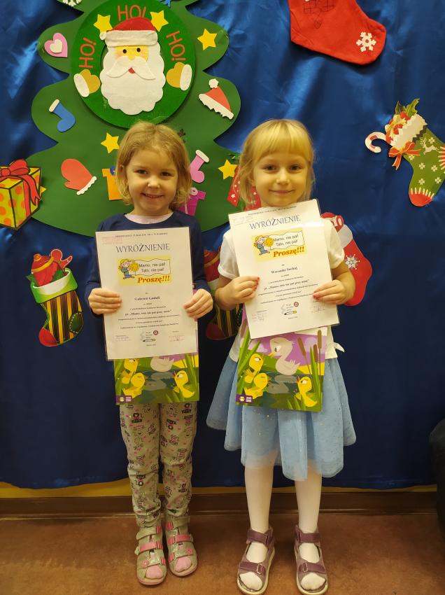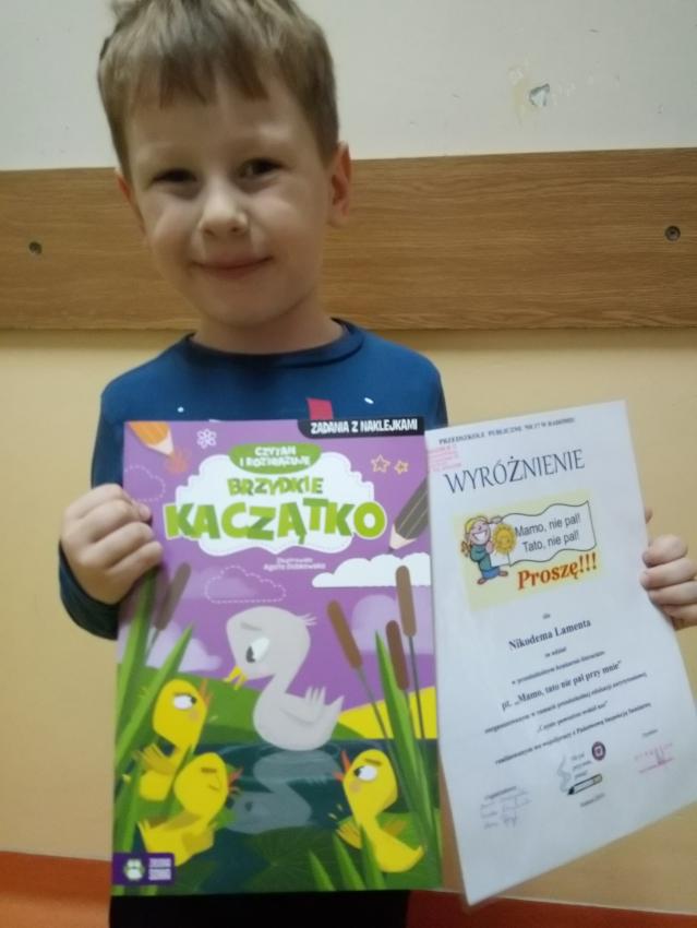 „Mamo, tato nie pal przy mnie”- dla przedszkolaków z grup 5-6 letnich oraz ich rodziców. Konkurs został zrealizowany w ramach projektu „Czyste powietrze wokół nas”. Jego celem było rozwijanie aktywności twórczej, literackiej; zachęcenie do podjęcia decyzji o zerwaniu z nałogiem palenia tytoniu oraz propagowanie zdrowego stylu życia. Otrzymaliśmy aż 10 rymowanek. Ze względu na wysoki poziom przesłanych propozycji postanowiliśmy wyróżnić wszystkie prace. Laureaci konkursu otrzymali dyplomy oraz nagrody- książki. Dziękujemy wszystkim, którzy nadesłali prace konkursowe. Zapraszamy do zapoznania się przesłanymi wierszami i rymowankami.