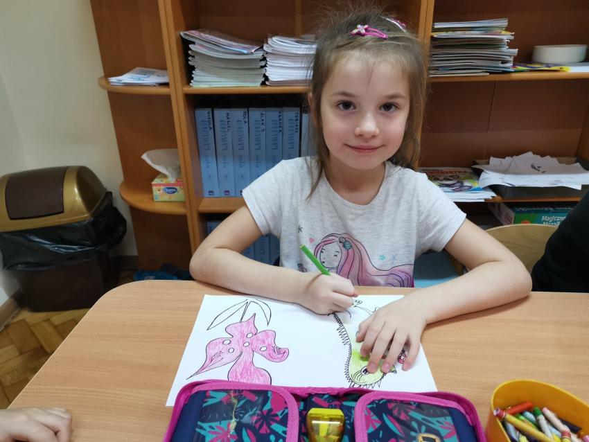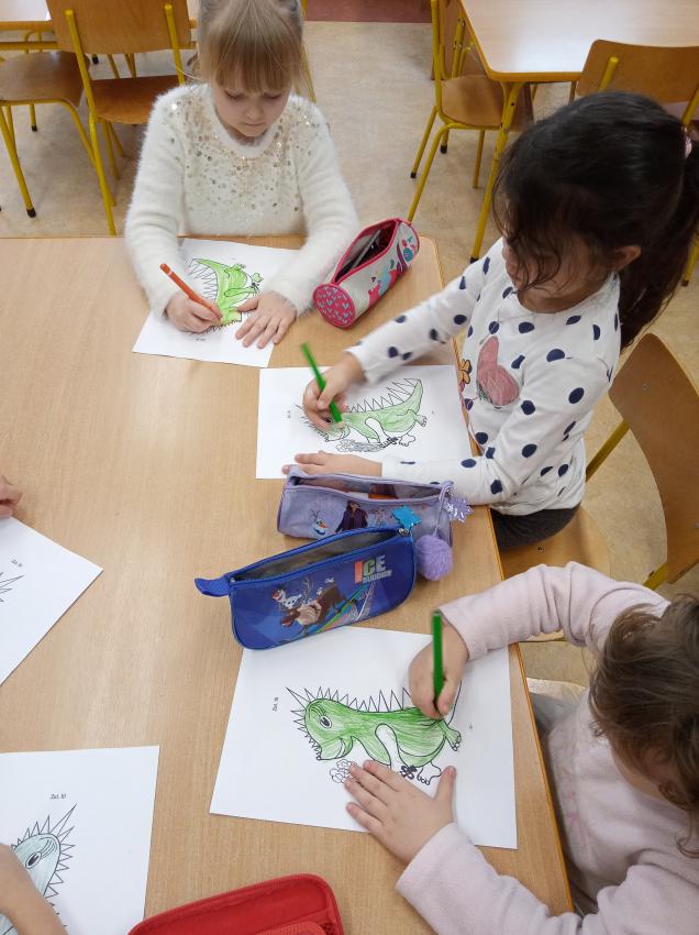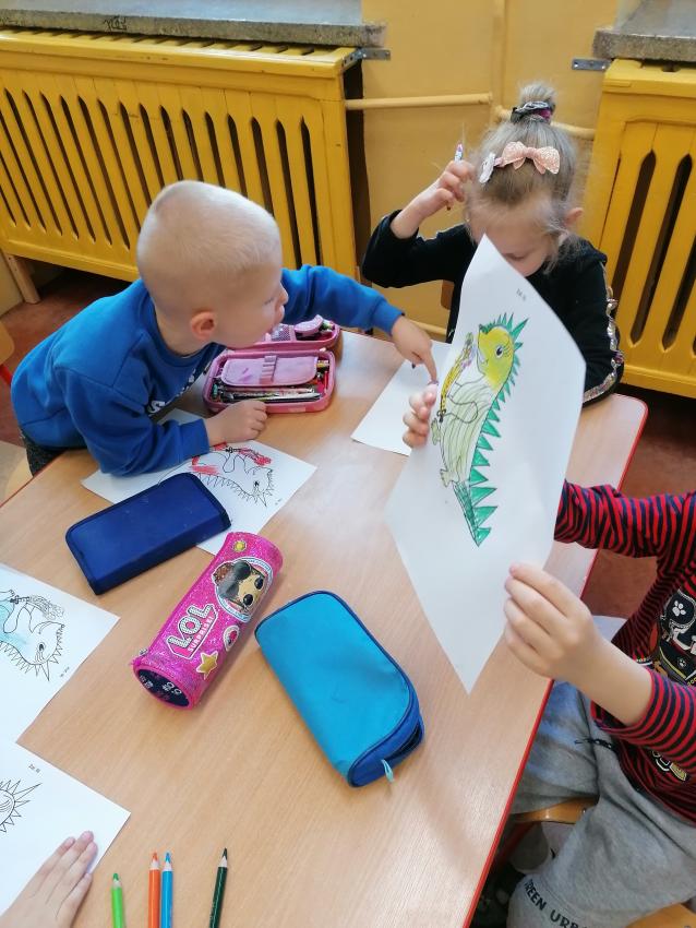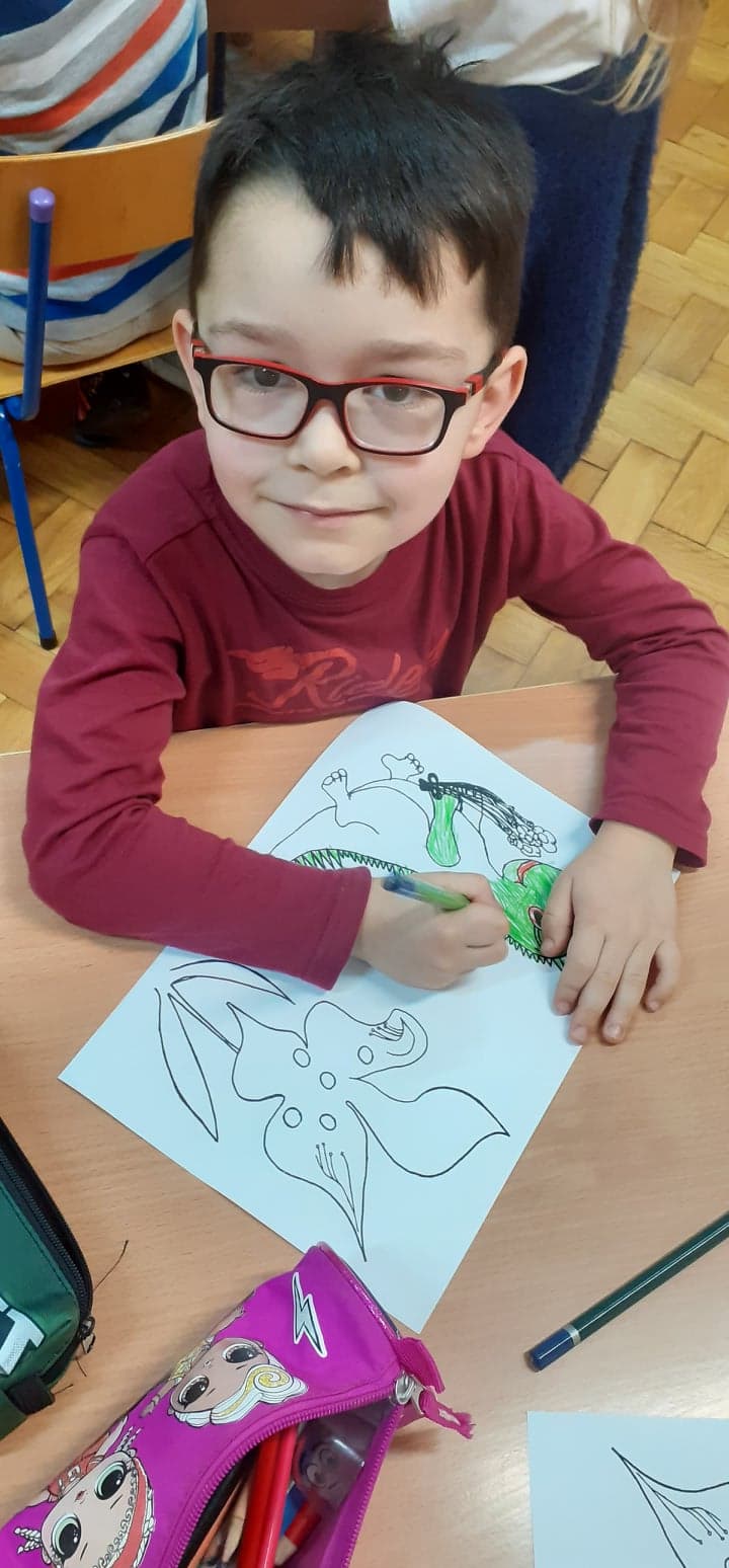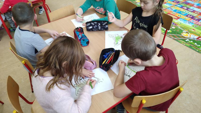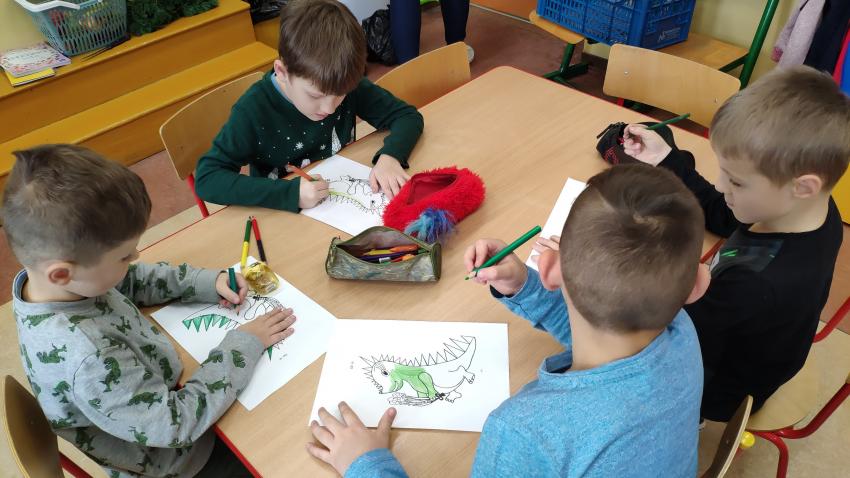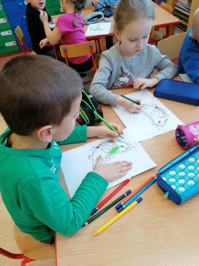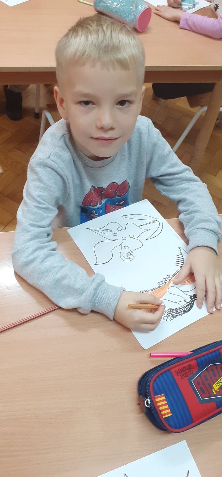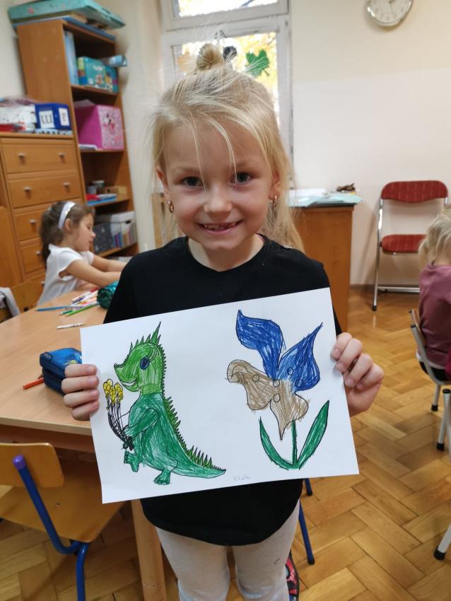 Podczas realizacji tego tematu wzbogaciły swoją wiedzę na temat szkodliwości palenia papierosów. Następnie wzięły udział w ćwiczeniach oddechowych i relaksacyjnych przy akompaniamencie muzycznym, które uświadomiły im, iż oddychanie świeżym powietrzem jest zdrowe. Na koniec zapoznały się z maskotką „Dinkiem”, wykonały portret ,,Dinusia” oraz nauczyły się piosenki o naszej maskotce.