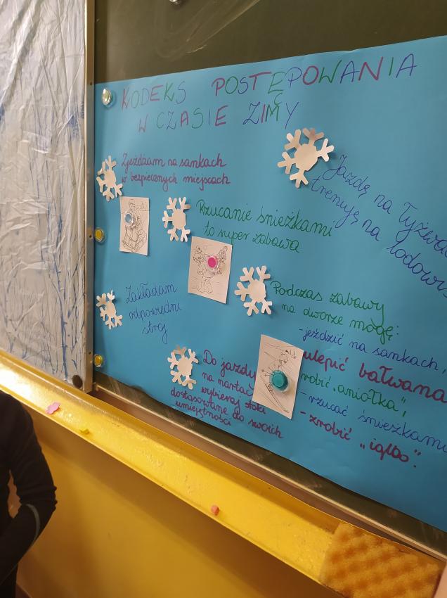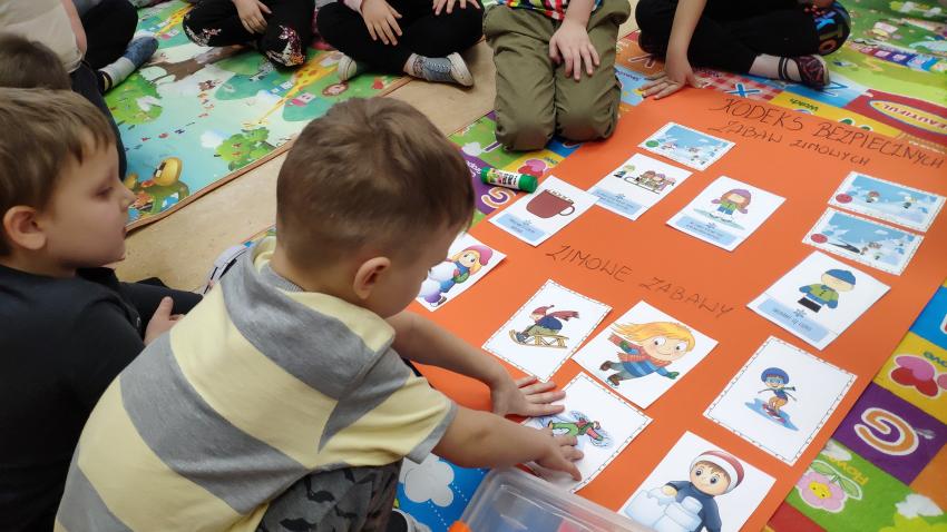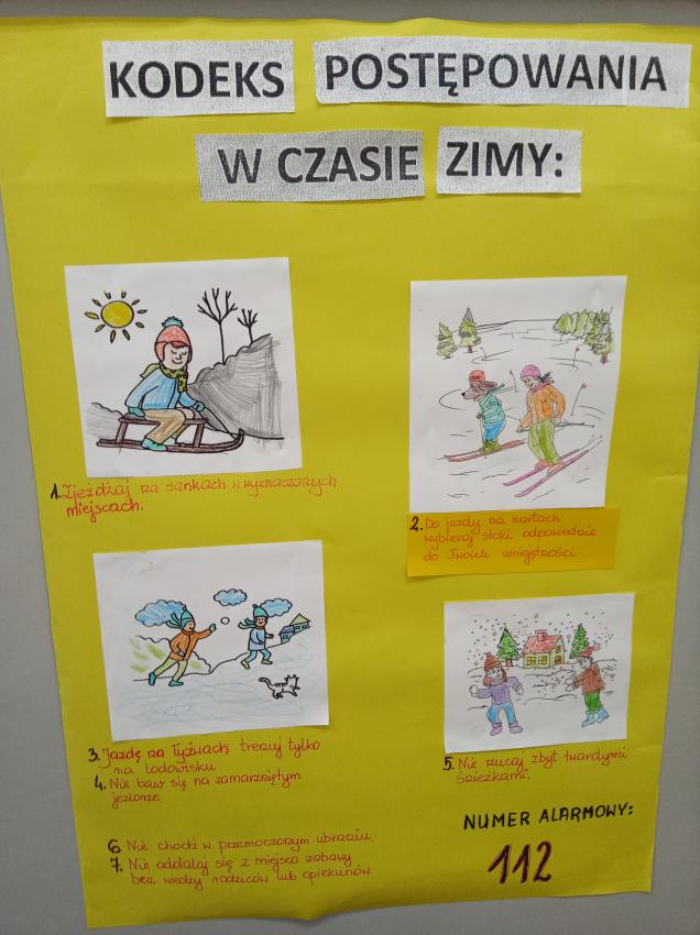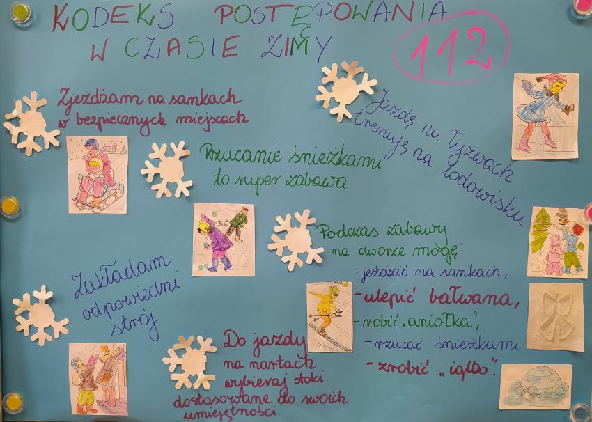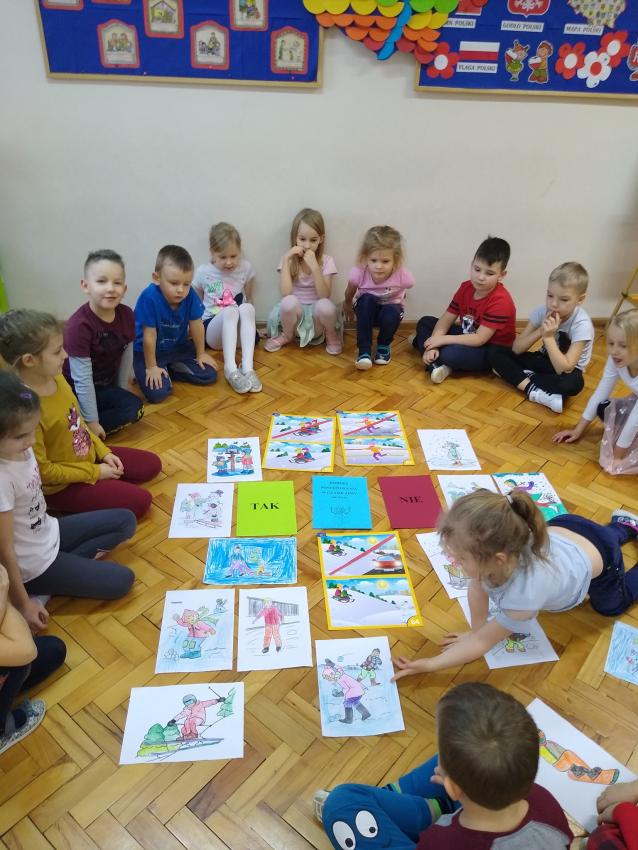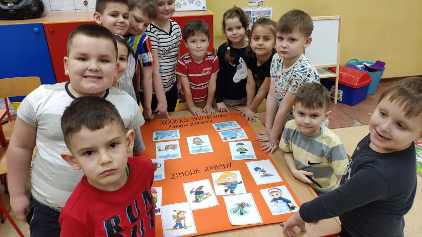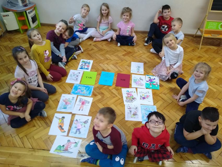 Ostatnie dni pokazały nam, że zima jeszcze istnieje i z tej okazji warto przypomnieć zasady bezpiecznych zabaw na śniegu. Przedszkolaki w ramach programu edukacyjno – wychowawczego „Jestem bezpieczny” obejrzały film pt. „Jedynkowe przedszkole -bezpieczna zima”, poznały piosenkę „Ostrożnie zimą”, wysłuchały bajki „ Zimowe szaleństwo”. Podsumowaniem ich wiedzy na temat bezpiecznych zabaw zimowych było utworzenie przez dzieci KODEKSU POSTĘPOWANIA PODCZAS ZIMY oraz zabawa z wykorzystaniem lizaków – TAK/NIE lub emotikonków wesoła/smutna buźka.