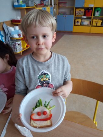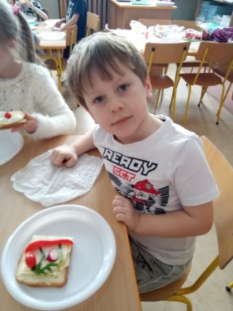 Dzieci z grupy VII w ramach realizacji tematyki kompleksowej ,,Jesteśmy samodzielni w kuchni" własnoręcznie wykonały kanapki.Są to ich efekty końcowe.