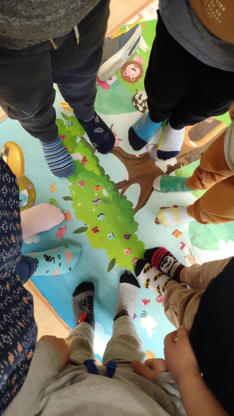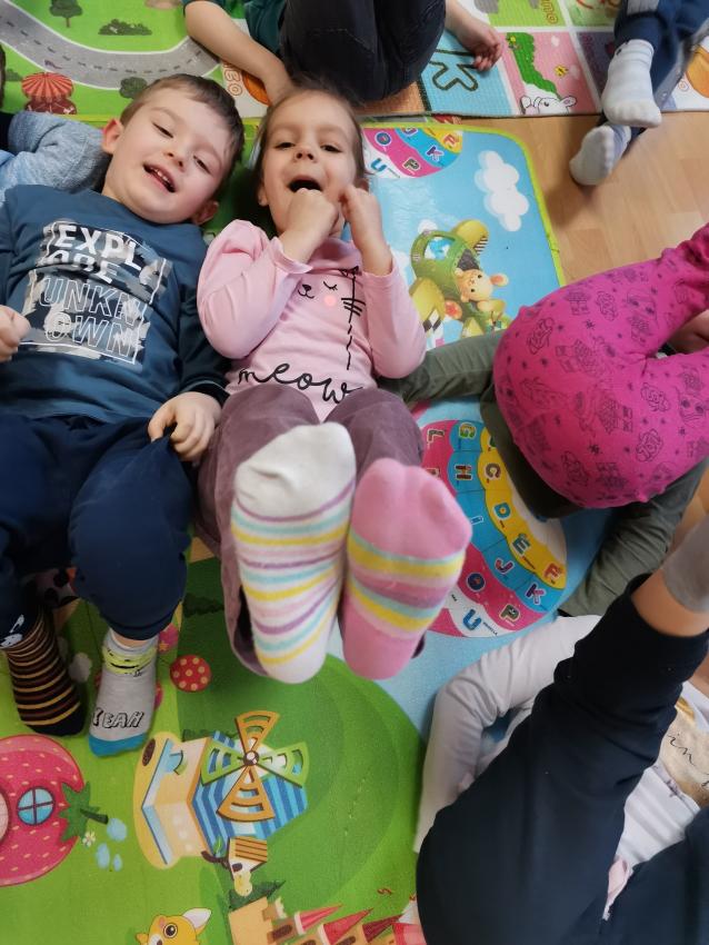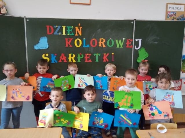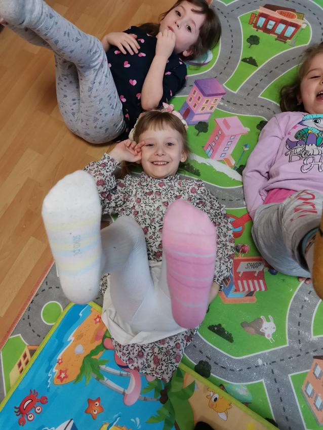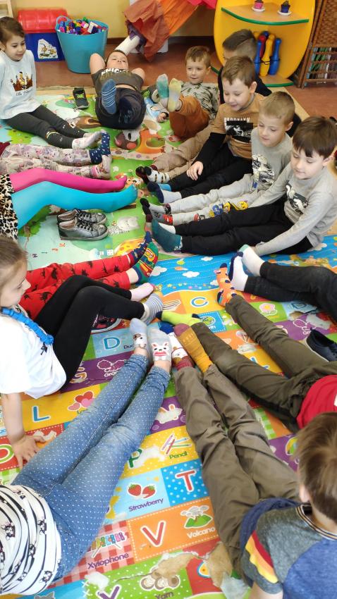 21 marca to pierwszy Dzień Wiosny, ale nie tylko. To także Światowy Dzień Zespołu Downa. W tym roku wydarzenie to obchodzimy w niedzielę, dlatego też przedszkolaki już w piątek 19 marca postanowiły włączyć się w obchody DNIA KOLOROWEJ SKARPETKI. Założenie kolorowych skarpetek nie do pary przez dzieci i pracowników przedszkola to znak solidarności z Osobami z Zespołem Downa. Kolorowe skarpetki symbolizują różnorodność, odmienność, społeczne niedopasowanie – czyli wszystko to, z czym na co dzień muszą zmagać się osoby dotknięte zespołem Downa.  Jednak to nie wszystkie aktywności jakie czekały tego dnia na dzieci. Przedszkolaki świetnie bawiły się podczas zabaw tanecznych, z wielkim zaciekawieniem i radością pokonywały ścieżkę sensoryczną oraz wykonały prace plastyczne w kształcie skarpety z wykorzystaniem materiałów eko. Dzieci poznały także historie chłopca o imieniu Dawidek, który musiał w swoim życiu zmierzyć się z różnymi przeszkodami spowodowanymi chorobą jaką jest zespół Downa. Zrozumiały wtedy, że to nie tylko osoby, które słodko wyglądają ale osoby, które muszą pokonują wiele przeszkód w swoim życiu.