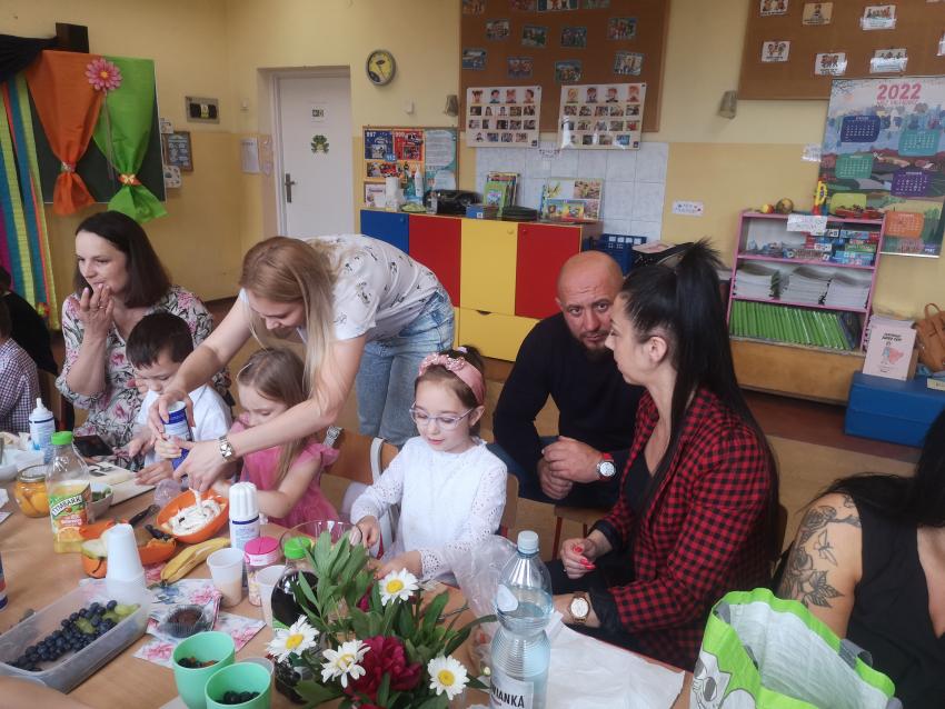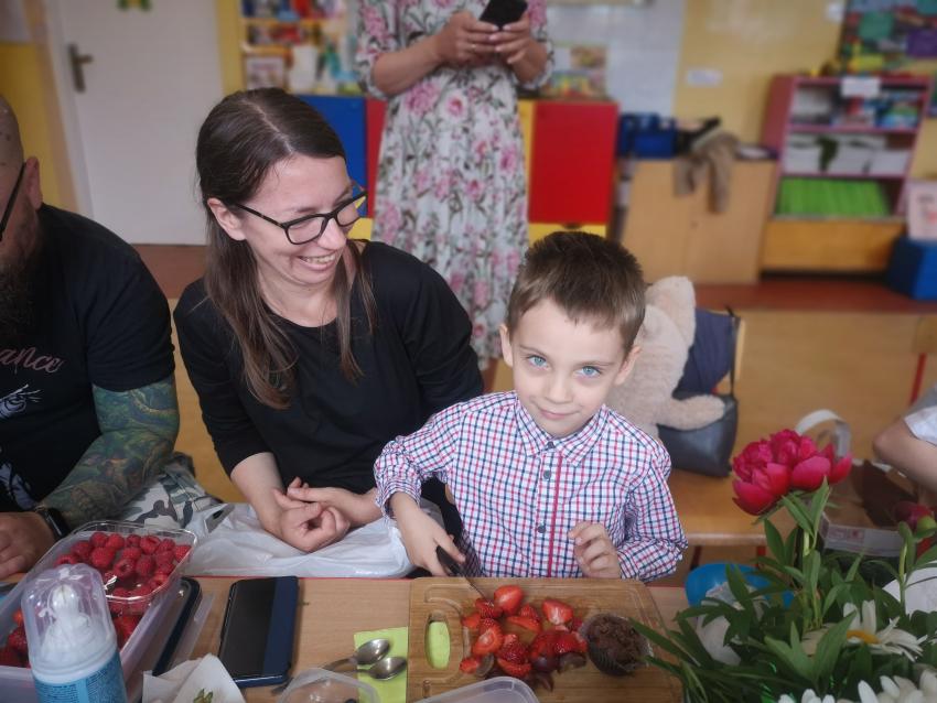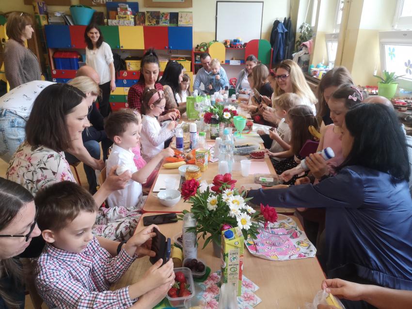 Za nami najważniejsze święto jakie przedszkolaki obchodzą w maju. Najważniejsze, bo poświęcone wyjątkowym osobom - rodzicom. W naszym przedszkolu świętowanie zaczęło się 25.05 i trwałodo 27.05. Każda z grup w wybranym dniu powitała w placówce swoich rodziców śpiewem, tańcem i wierszami. Przedszkolaki przygotowały przepiękne prezenty, wspólne zabawy i warsztaty, na których „Żabki” wykonały owocowe sałatki. Podczas uroczystości niejednemu z rodziców zakręciła się łza w oku. Cieszymy się, że mogliśmy uczestniczyć w tych wyjątkowych chwilach. Zapraszamy do oglądania zdjęć.