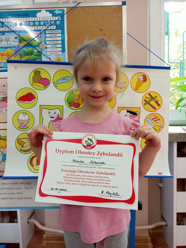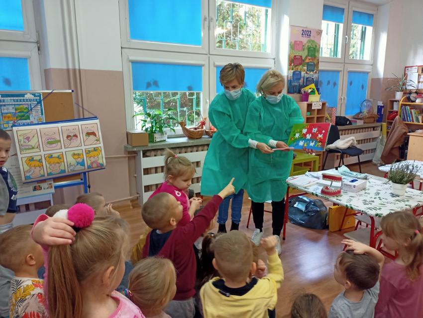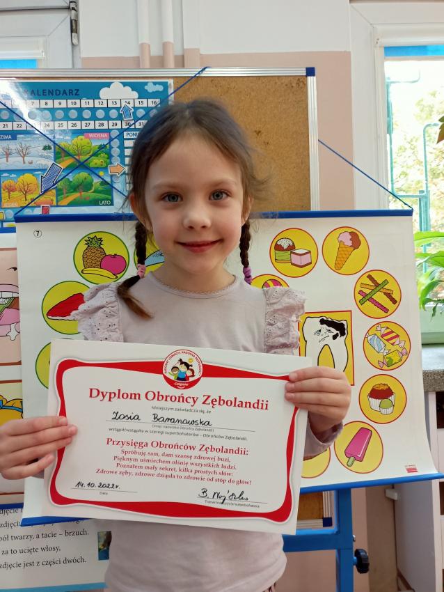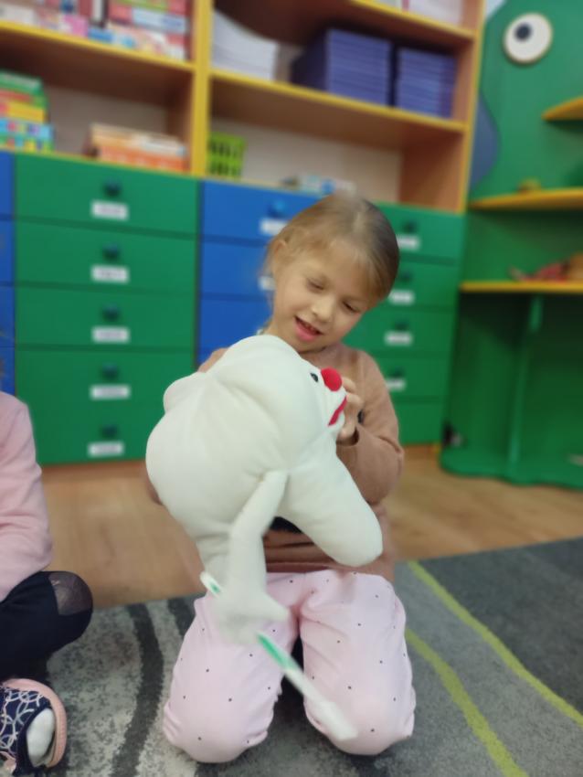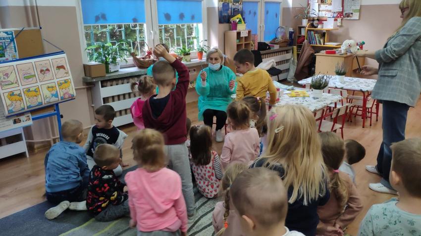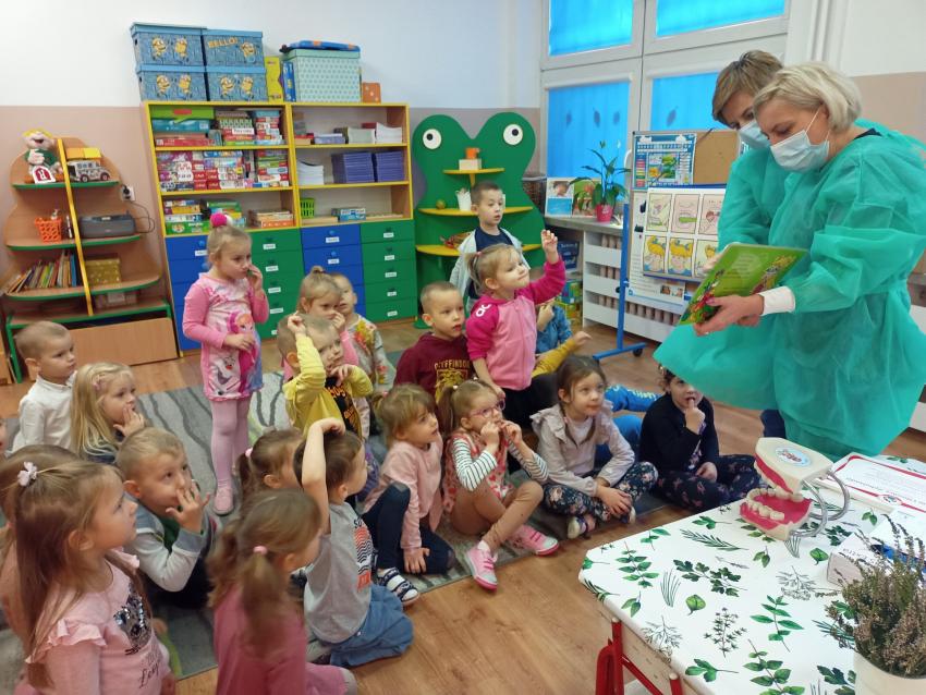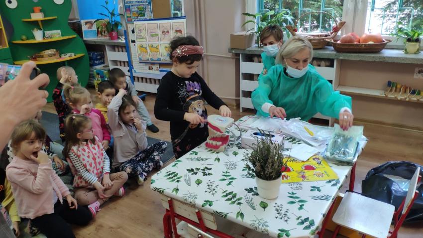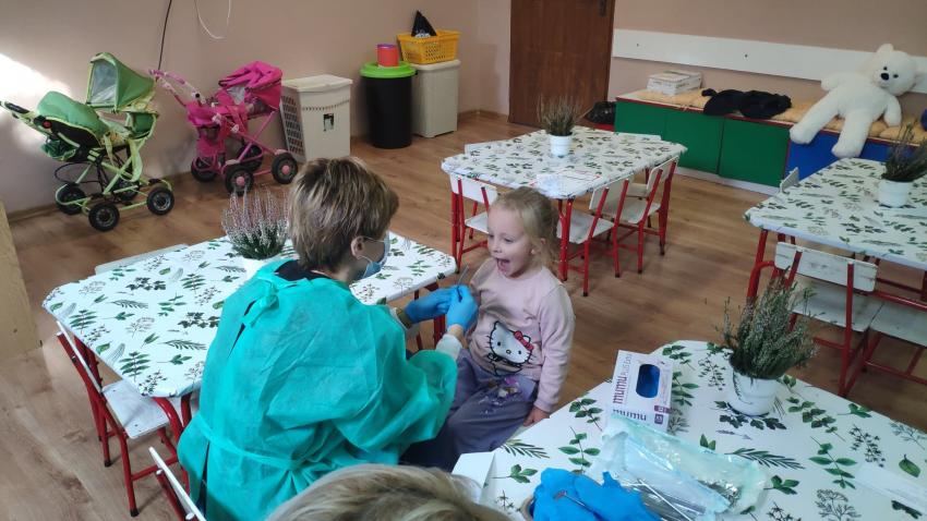 W dniu 14.10 dzieci z grupy Krasnoludków i Muchomorków uczestniczyły w spotkaniu z panią stomatolog. Podczas spotkania dzieci dowiedziały się jak dbać o zęby, zobaczyły w jaki sposób prawidłowo je myć oraz same przećwiczyły tą umiejętność. Nasze dzielne przedszkolaki bez strachu zasiadły przed panią stomatolog, która sprawdziła ząbki Krasnali i Muchomorków. W nagrodę dzieci otrzymały dyplomy ????.