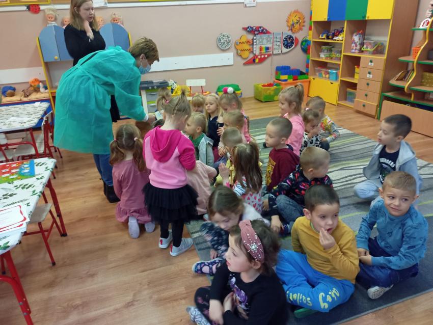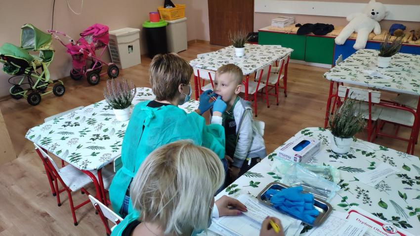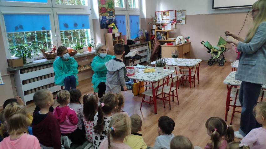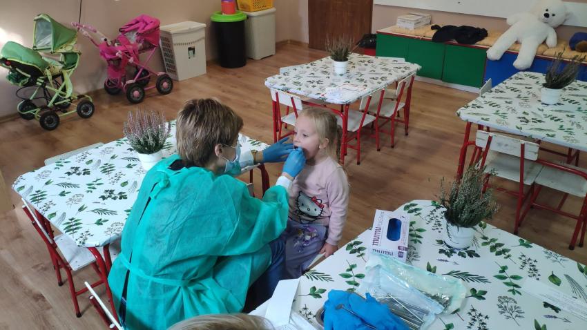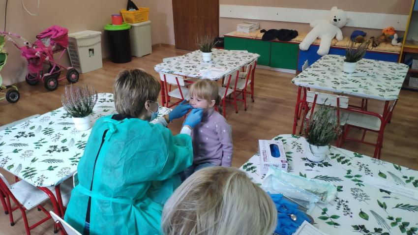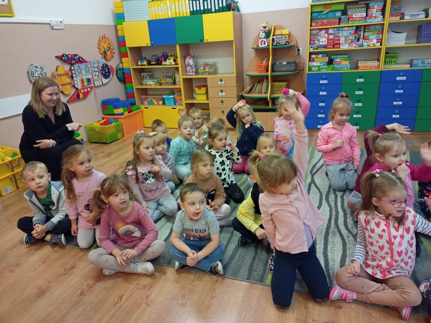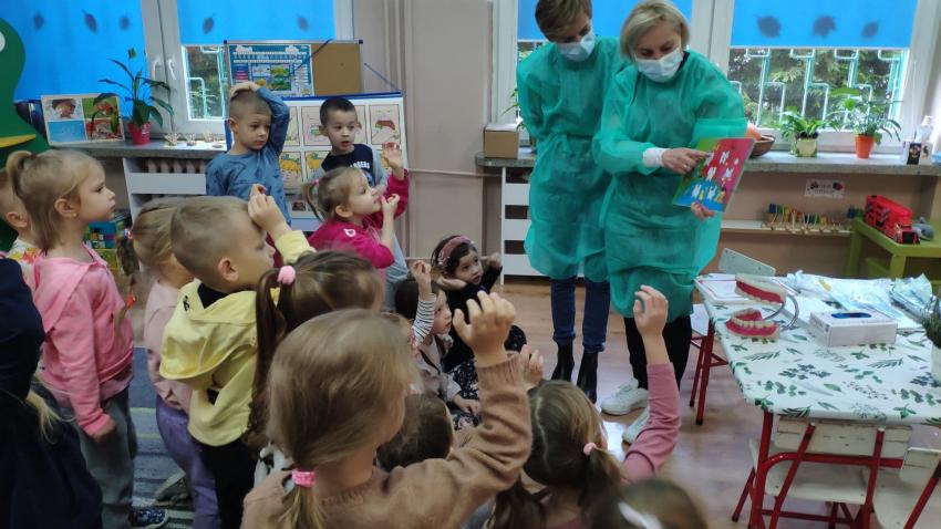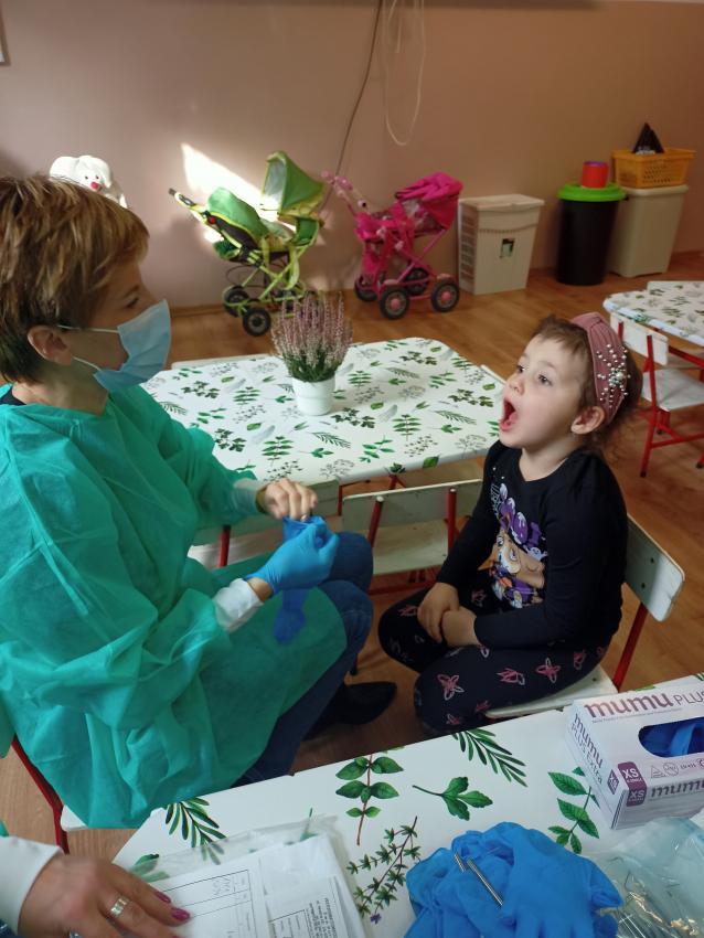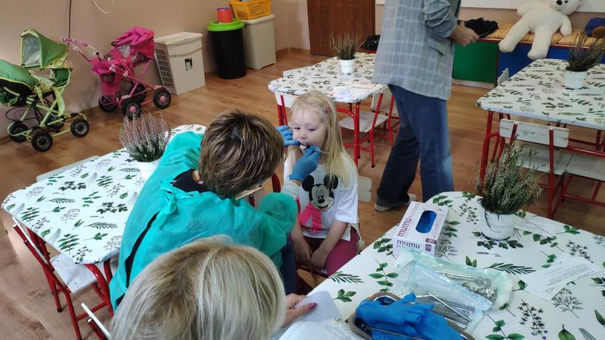 W dniu 14.10 dzieci z grupy Krasnoludków i Muchomorków uczestniczyły w spotkaniu z panią stomatolog. Podczas spotkania dzieci dowiedziały się jak dbać o zęby, zobaczyły w jaki sposób prawidłowo je myć oraz same przećwiczyły tą umiejętność. Nasze dzielne przedszkolaki bez strachu zasiadły przed panią stomatolog, która sprawdziła ząbki Krasnali i Muchomorków. W nagrodę dzieci otrzymały dyplomy ????.