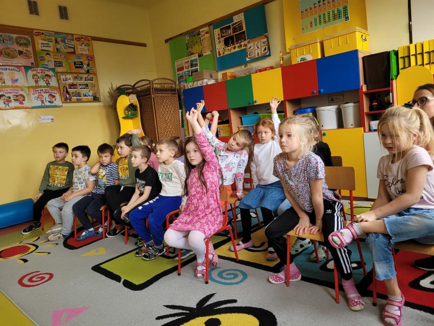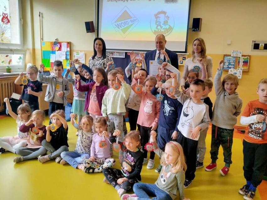 Starszaki wzięły dziś udział w znakomitej prelekcji dotyczącej bezpieczeństwa przygotowanej przez WORD. Wszystkie dzieci bardzo uważnie słuchały, odpowiadały na pytania a na koniec dostały przepiękne prezenty - odblaski. Bardzo dziękujemy WORD Radom.
