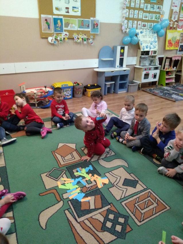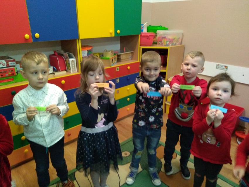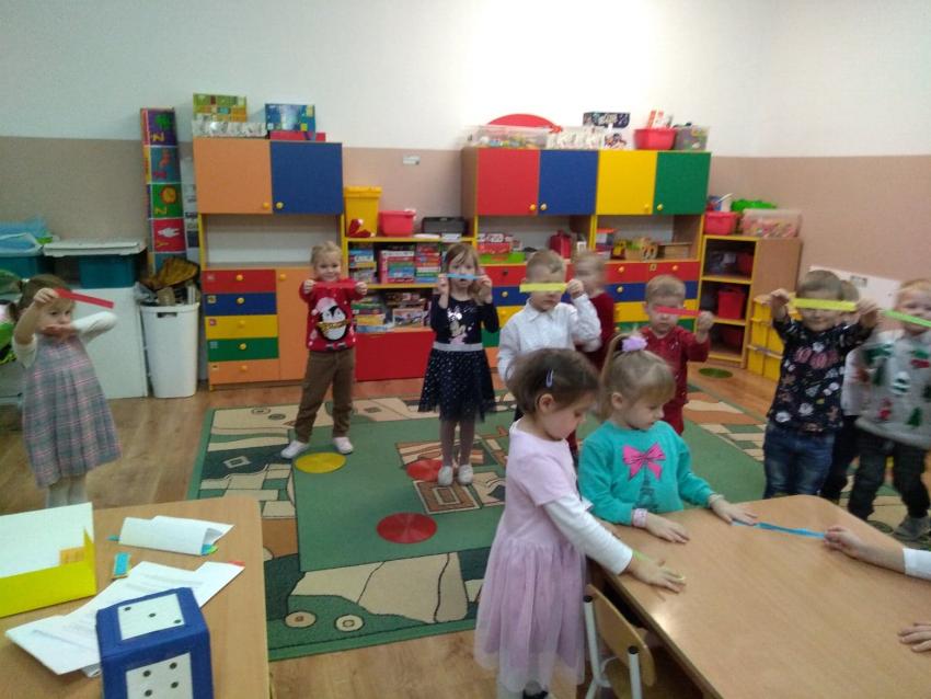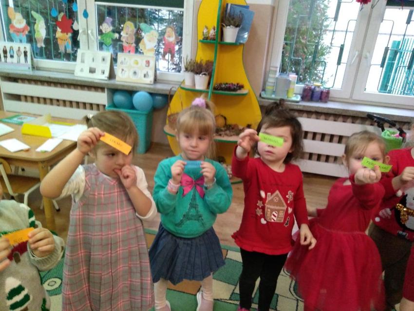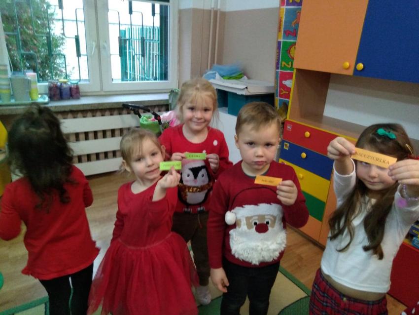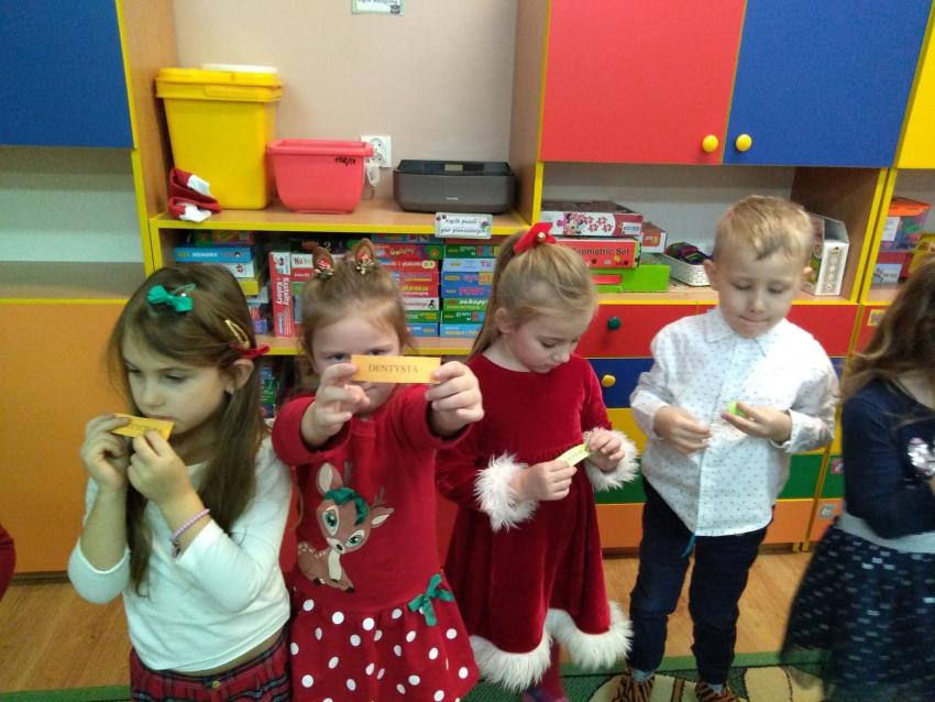 Krasnale chcąc się dowiedzieć czegoś o swojej przyszłości, zaciekawione wzięły udział w proponowanych aktywnościach. Dzieci losowały karteczki ze swoimi potencjalnymi zawodami