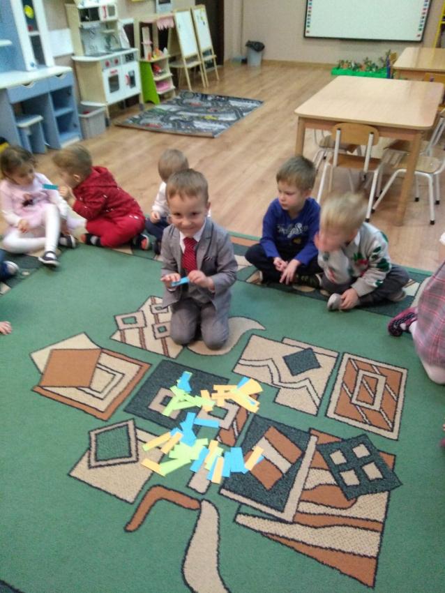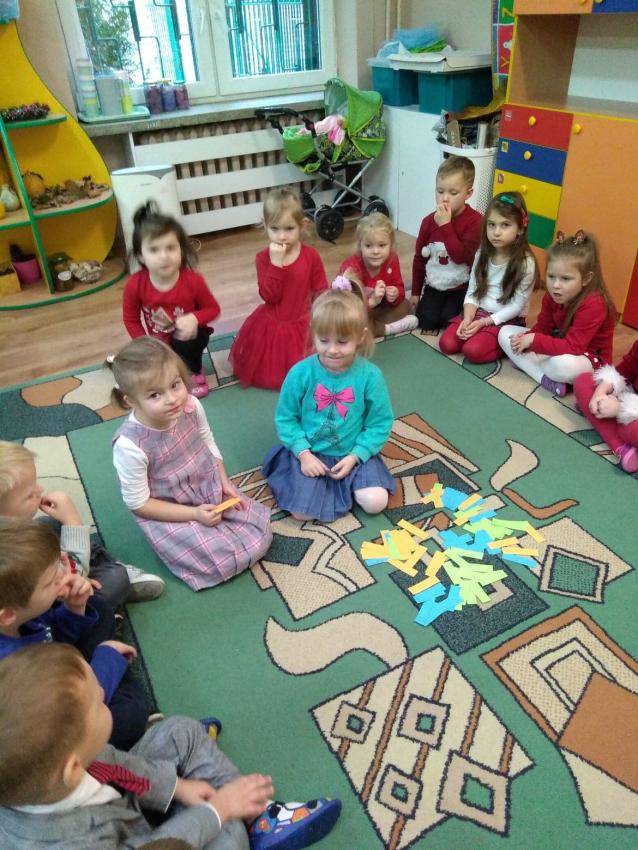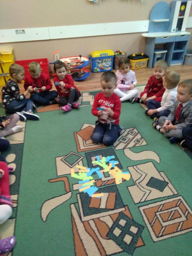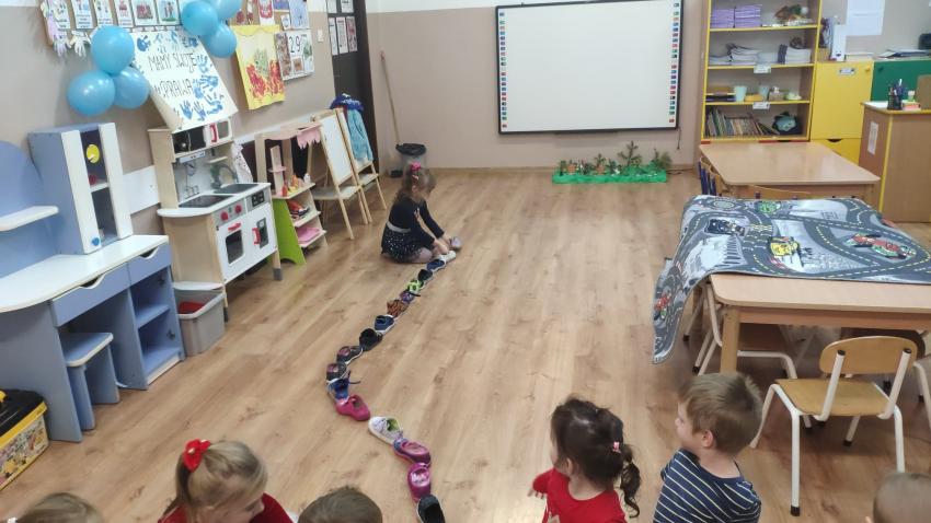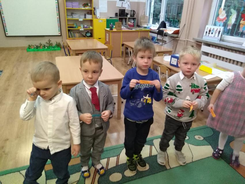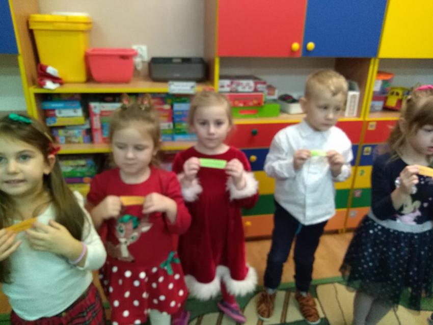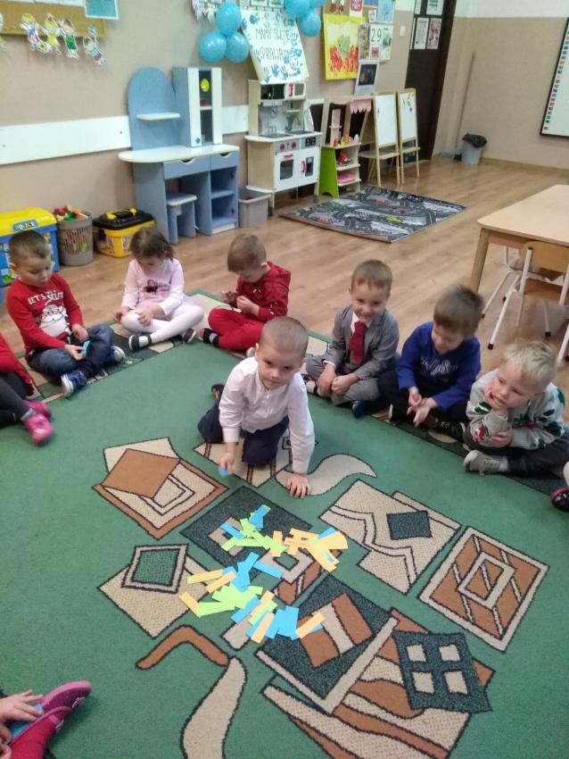Krasnale chcąc się dowiedzieć czegoś o swojej przyszłości, zaciekawione wzięły udział w proponowanych aktywnościach. Dzieci losowały karteczki ze swoimi potencjalnymi zawodami