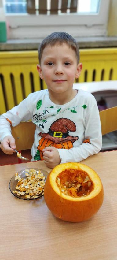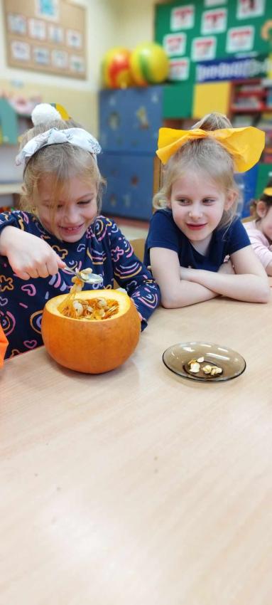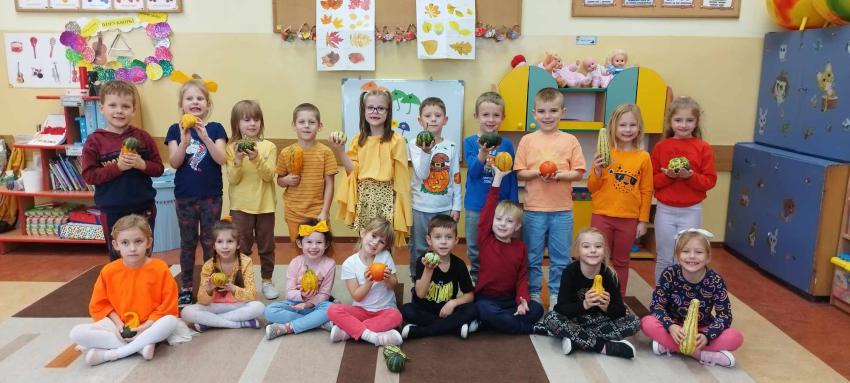 W ramach realizacji ogólnopolskiego projektu czytelniczego "Guzik" dzieci z grupy Tygryski w październiku: przeczytały kolejną historię Guzika, Maks wraz z rodzicami wymyślił zakończenie oraz narysował obrazek do tekstu, wysłały list do Misia z pozdrowieniami, przyozdobiły swój kącika przyrodniczy oraz świętowały Dzień Dyni. Dzieci z niecierpliwością już czekają na kolejne zadania.