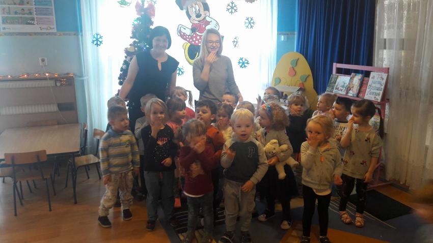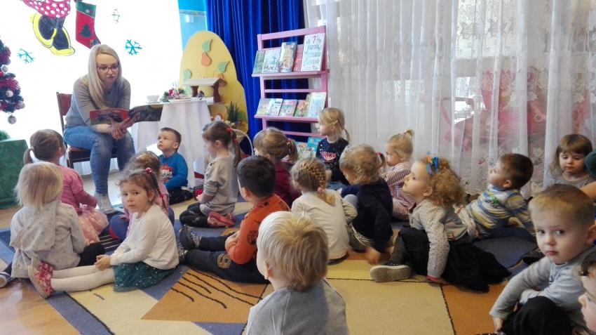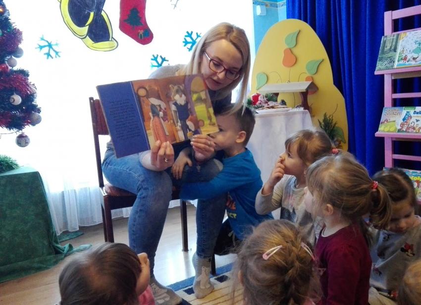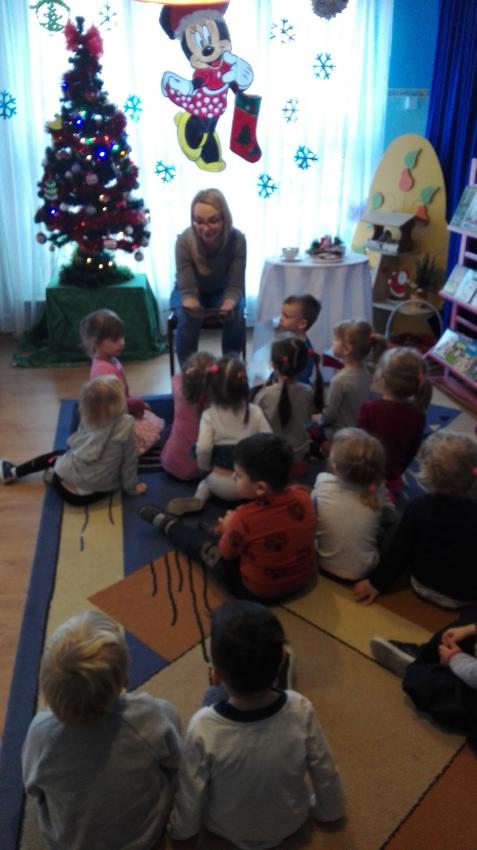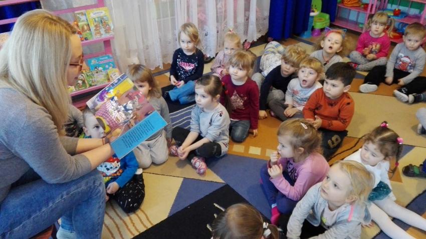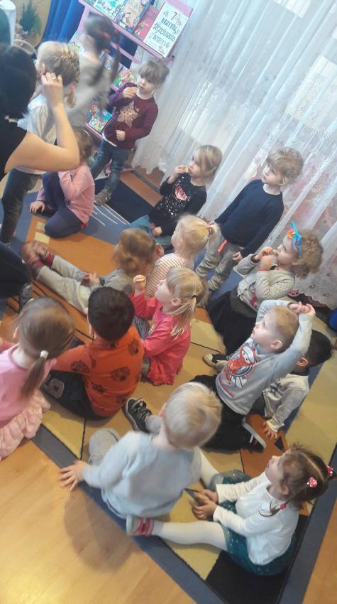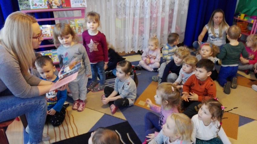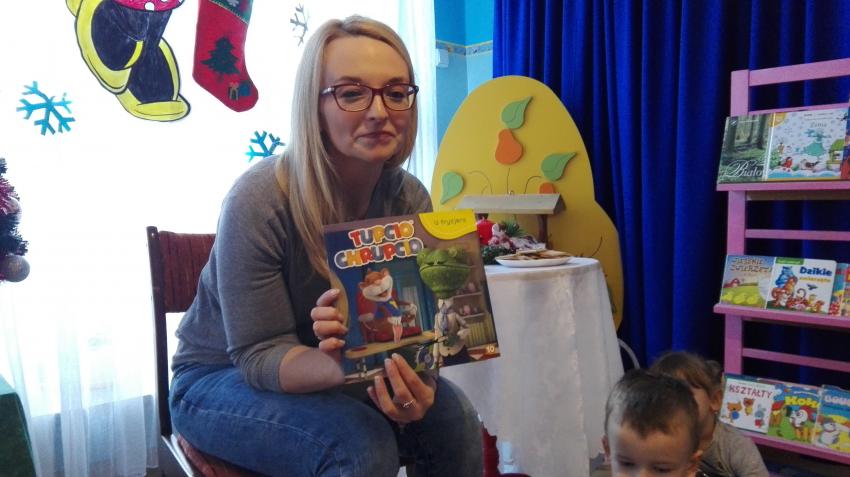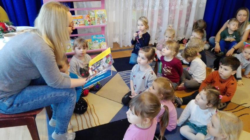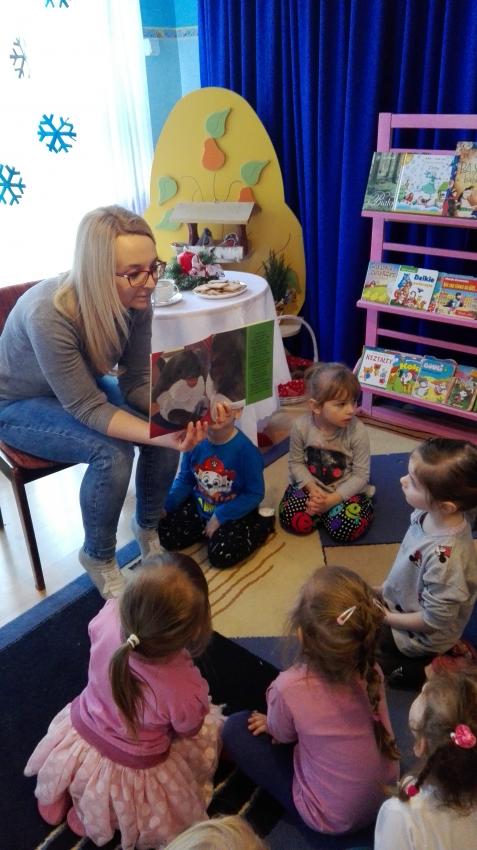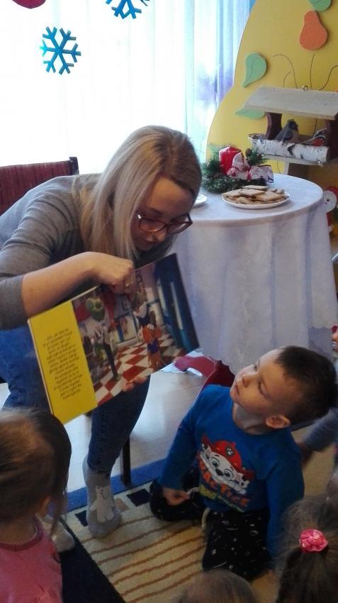 "Zima z książką" w ramach akcji Cała Polska czyta dzieciom w grupie "Myszek" już się zaczęła! 9 stycznia odwiedziła nas mama Franka, która przeczytała bajkę "Tupcio Chrupcio u fryzjera". Dzieci bardzo uważnie słuchały i chętnie wypowiadały się na temat ich wizyt u fryzjera. Były też wspólne tańce przy muzyce, a na zakończenie słodkie herbatniki. To było bardzo miłe spotkanie.