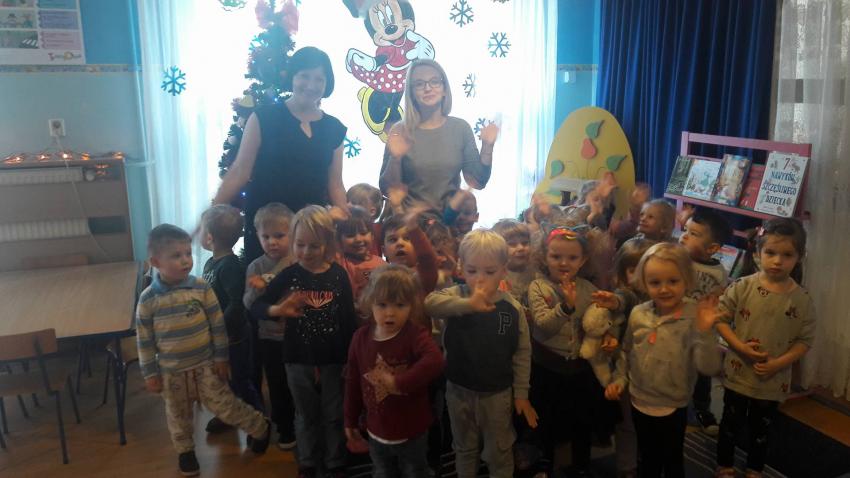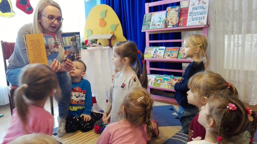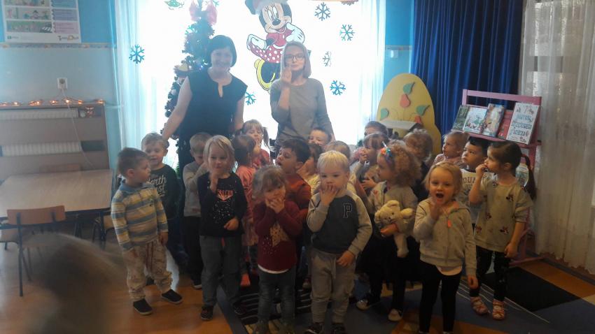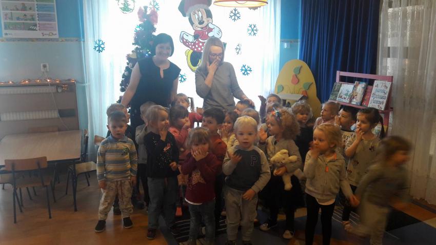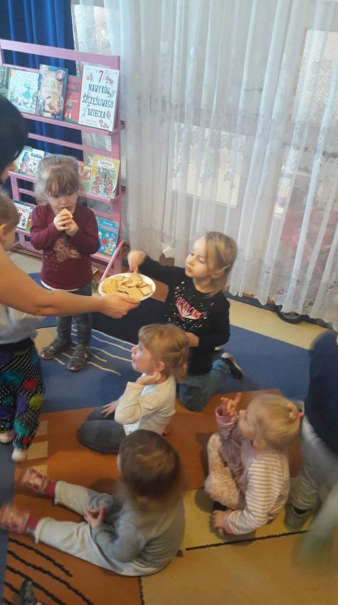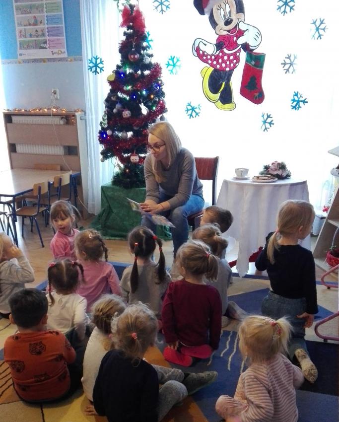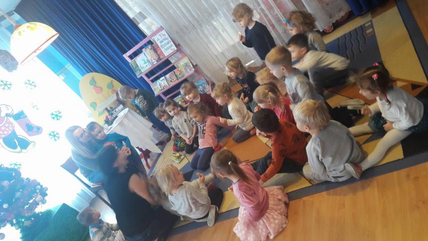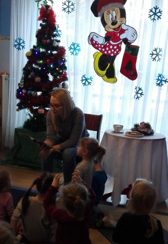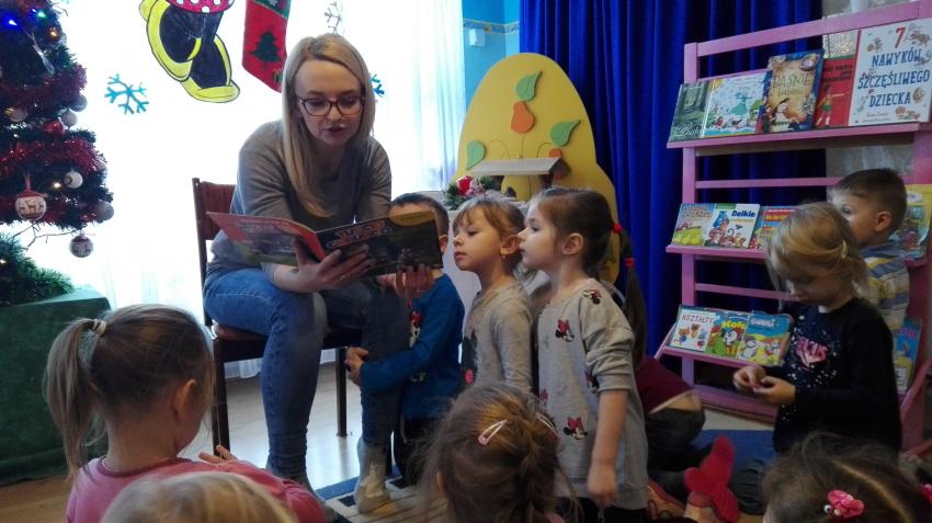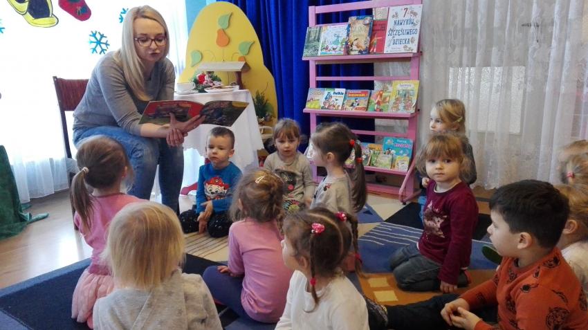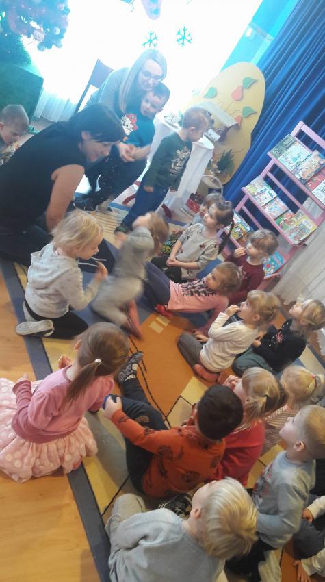 "Zima z książką" w ramach akcji Cała Polska czyta dzieciom w grupie "Myszek" już się zaczęła! 9 stycznia odwiedziła nas mama Franka, która przeczytała bajkę "Tupcio Chrupcio u fryzjera". Dzieci bardzo uważnie słuchały i chętnie wypowiadały się na temat ich wizyt u fryzjera. Były też wspólne tańce przy muzyce, a na zakończenie słodkie herbatniki. To było bardzo miłe spotkanie.