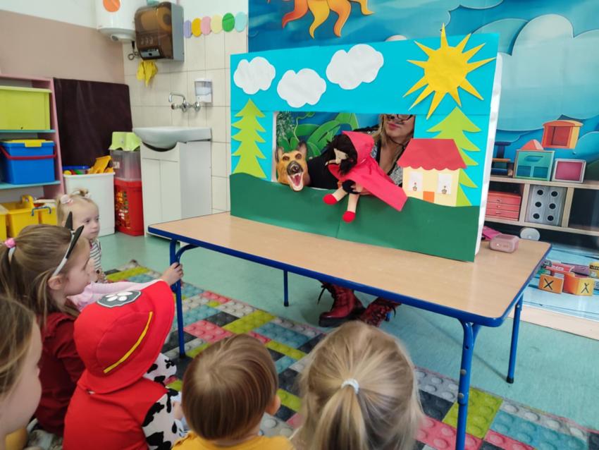 Dzisiaj w Kropeczkach świętowaliśmy Dzień postaci z bajki. Wcielaliśmy się w rolę księżniczek, był kosmonauta, myszka Miki i inne bajkowe postacie ulubione przez dzieci. Kropeczki obejrzały teatrzyk kukiełkowy "Czerwony Kapturek". Teraz już wiedzą, że nie wolno nawiązywać przypadkowych znajomości z nieznajomymi. Kot w butach uczył dzieci piosenki ?Witajcie w naszej bajce?, to był bajkowy dzień!
