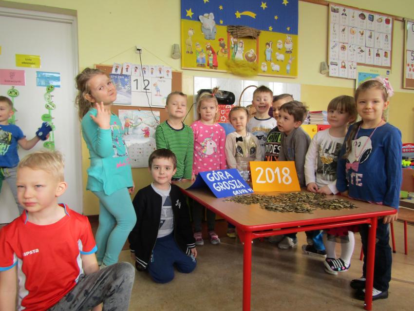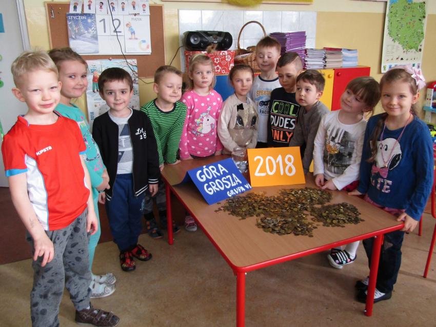 Nasze przedszkolaki z wielkim zaangażowaniem przystąpiły do zbiórki monet w ramach Ogólnopolskiej Akcji Góra Grosza. Dzieci dowiedziały się komu zostaną przekazane pieniądze. Przynosiły każdego dnia po kilka drobniaków, a niektórzy z nas Lenka, Lilianka, Rafał, Adaś, Kamilek, Zosia, Amelka dostarczyli kilkadziesiąt monet o różnych nominałach.Umiemy okazywać wsparcie potrzebującym, bo każdy z nas może znaleźć się w trudnej sytuacji. Dzieci pomagają dzieciom z domów dziecka. Brawo Żabki !!! Macie wspaniałe serduszka !