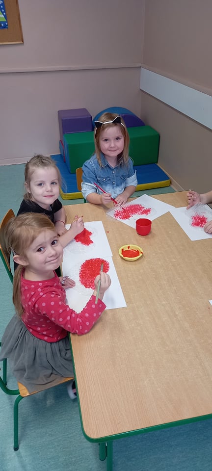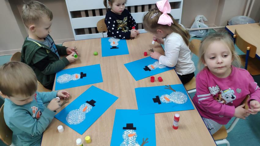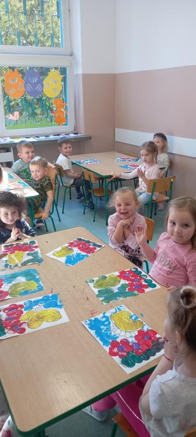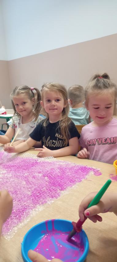 -grupy I wykonała zadanie "Bąbelkowe dzieła sztuki"- wykorzystanie folii bąbelkowej do stworzenia pracy plastycznej.