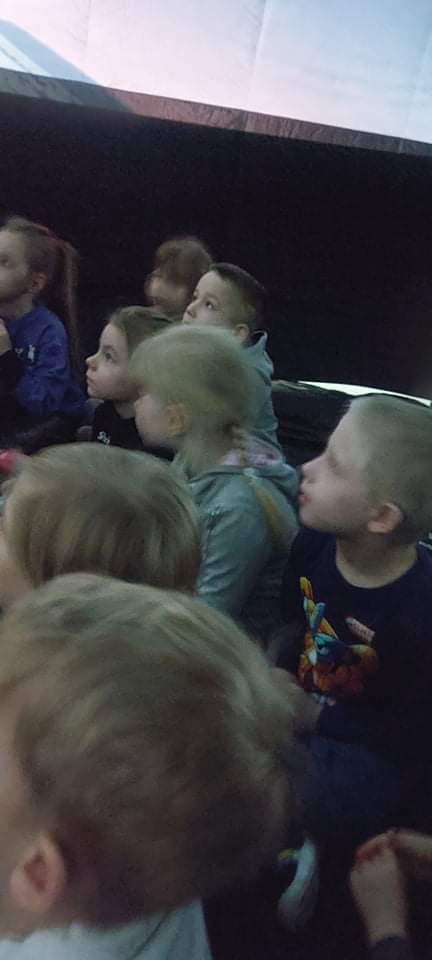 W dniach 18 i 19 stycznia przedszkole odwiedziło Mobilne Planetarium. Wybraliśmy się w podróż kosmiczną. W niespełna godzinę odwiedziliśmy wszystkie planety Układu Słonecznego dzięki Mobilnemu Planetarium. To było ekscytujące i niezwykłe przeżycie oglądać z bliska gwiazdy, statki kosmiczne i astronautę. Starsze grupy na początku uczestniczyły również w krótkiej prelekcji na temat kosmosu. Wydarzenie to zapadnie dzieciom na długo w pamięci.