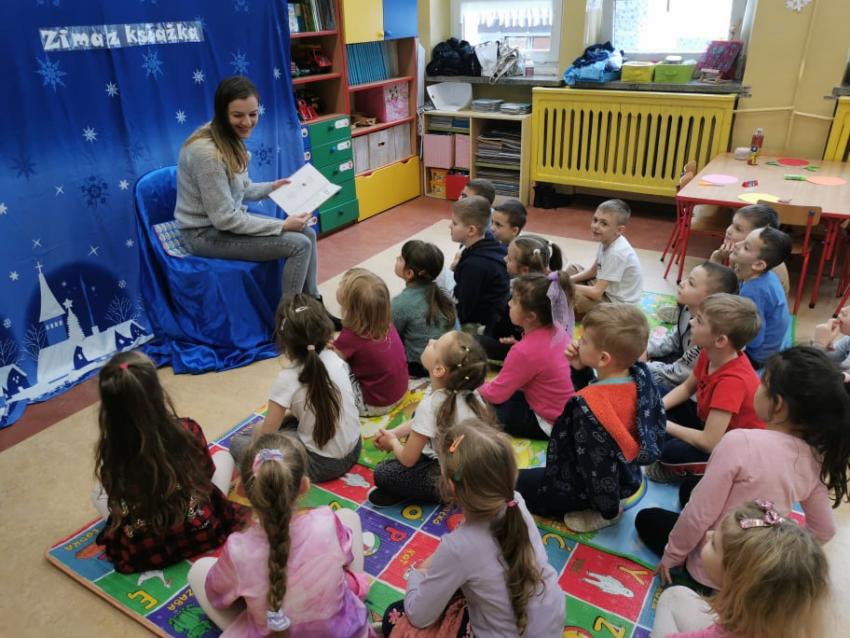 W ramach akcji "Zima z książką" mama Filipka przeczytała nam opowiadanie Joanny Papuzińskiej "Nasza mama czarodziejka". Bardzo dziękujemy pani Justynie za poświęcony czas.
