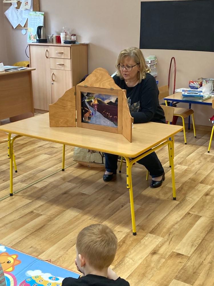 Grupę Biedronek odwiedziła pani z Biblioteki Pedagogicznej z teatrzykiem kamishibai. Wysłuchaliśmy bajki „ Rower Weroniki”, „ O panach palcach” i „ Dwa ptaszki”. Mieliśmy tez okazje zapoznac się z książką napisaną alfabetem Brayla.