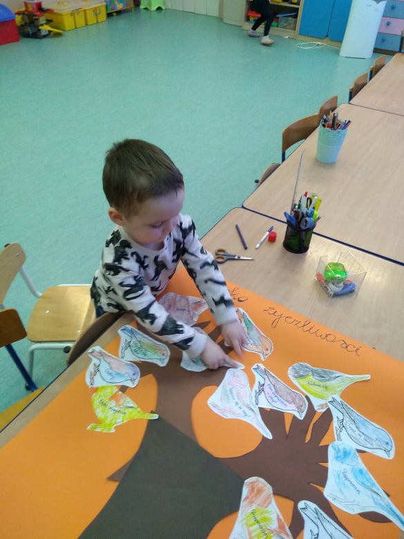 „Drzewka życzliwości” –przygotowanie „Życzliwych życzeń i pozdrowień” przez każdą grupę, umieszczenie na „drzewkach życzliwości”.