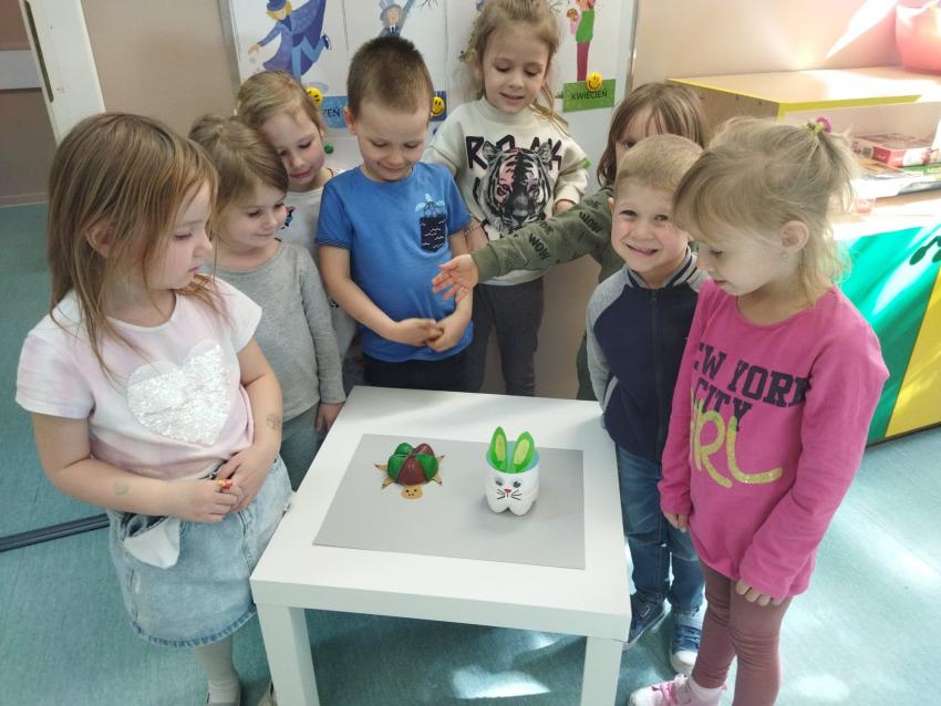 - grupa II-IV wykonały zadanie "Plastikowa butelka w coś niezwykłego zaklęta"- zabawka z butelki PET.