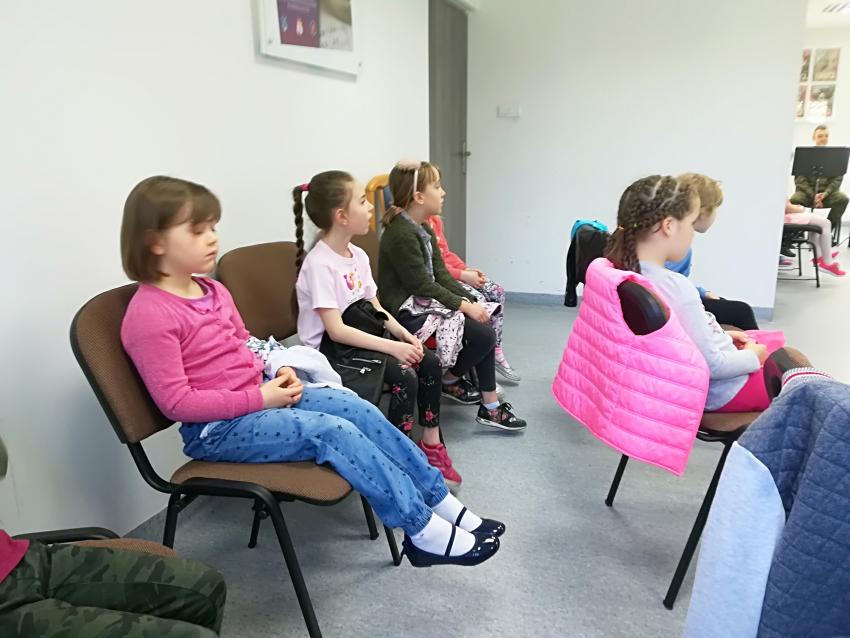 Filip M., Tomasz R., Maja W., Natalia W., Amelia P. z utworem „Przybyli ułani pod okienko”