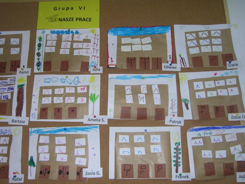 Bardzo lubimy wykonywać prace plastyczne. Wycinanie i wyklajanie "Budynku szkoły" było świetną zabawą. Malowanie "Kasztanowych ludzi" po spacerze w parku Leśniczówka przypomniało nam, jakie cuda można robić z kasztanów. Praca "Muchomor czerwony" była inspirowana wystawą grzybów, którą obejrzeliśmy w dniu 10 października 2017 roku. Dowiedzielismy się wtedy, że z grzybami nie ma żartów, chociaż są takie piękne i pachnące. Wkrótce kolejne prace!