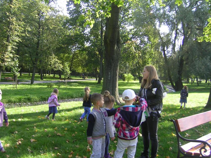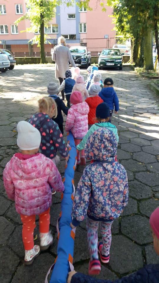 Nasz pierwszy spacer do ogrodu przedszkolnego. Już w sali zapoznaliśmy się z przyjaznym wężem, który będzie z nami spacerował. A podczas spaceru spotkaliśmy mieszkankę naszego ogrodu- wiewiórkę Basię. Chętnie wzięła od nas prezent- orzeszka.